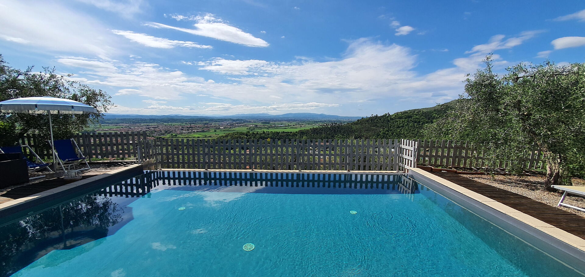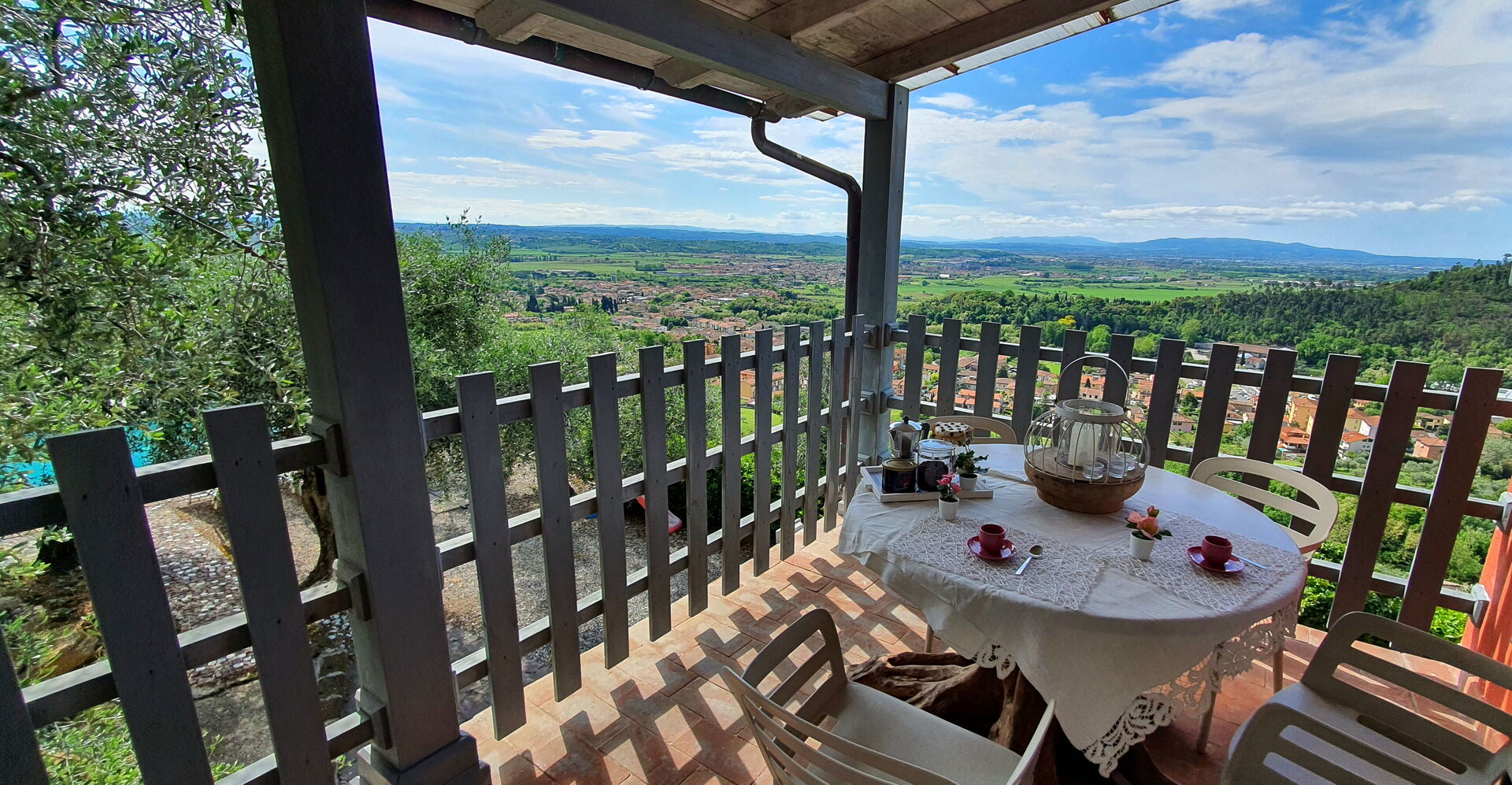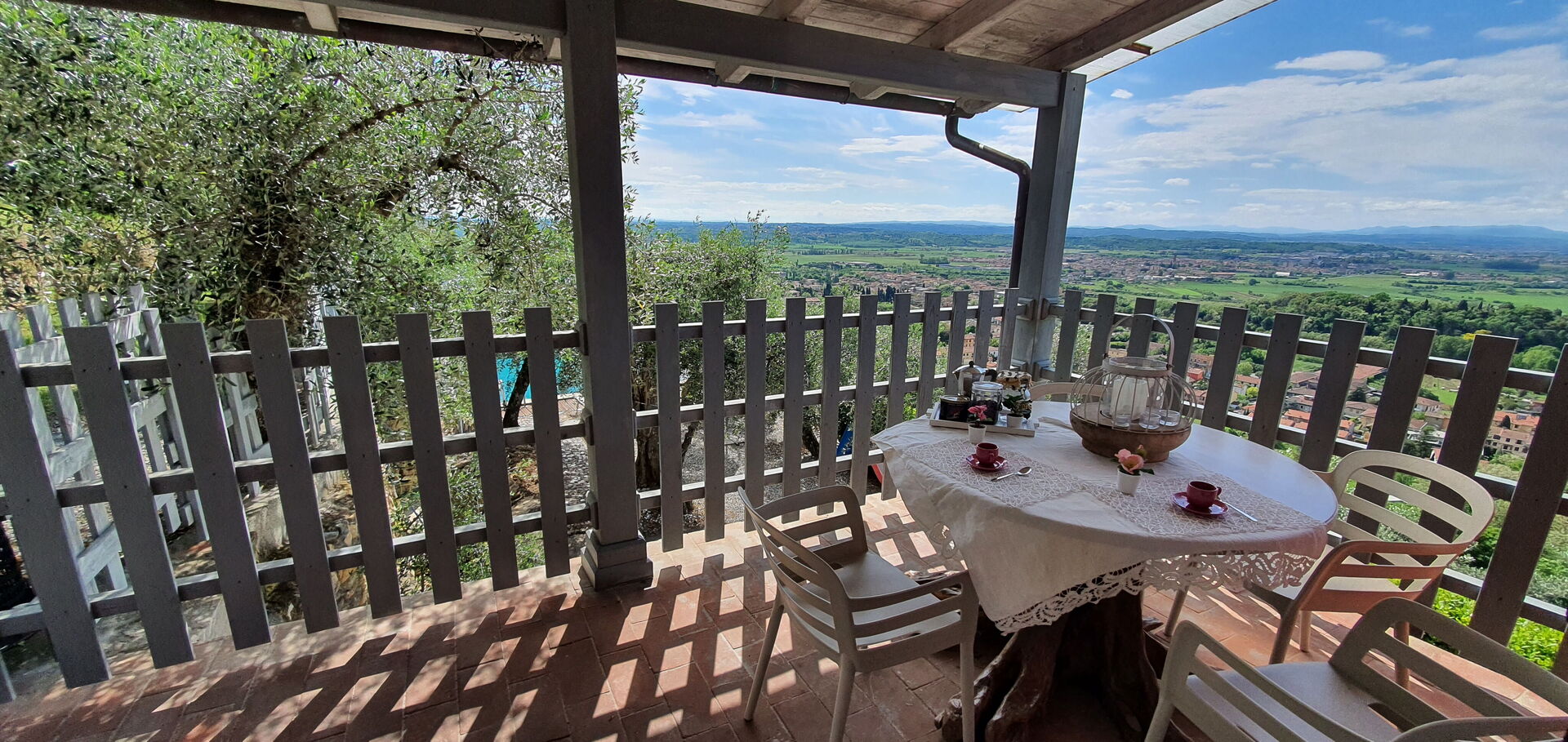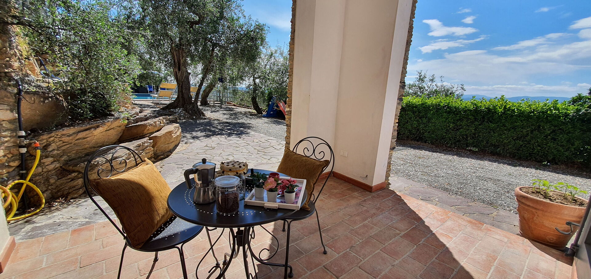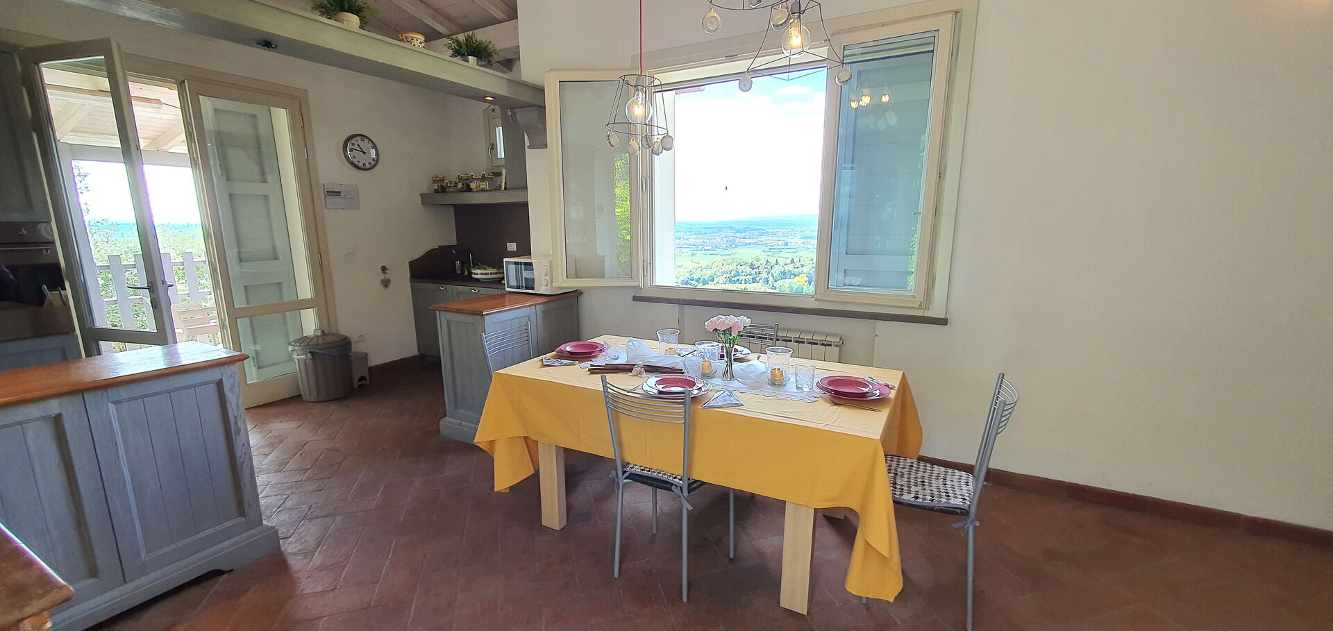 When you arrive at Podere San Martino you’ll find a lovely clean well-maintained property with views of the hills ideal for a relaxing holiday in Tuscany. Regardless of how you spend your days - shopping, sightseeing, visiting museums or just driving in the countryside, when you arrive home you can unwind with your family and friends at the pool for a perfect ending to another day in Tuscany. Outdoors you will also find a playground and barbecue grill. Dining with friends and family is a big part of the Tuscan culture. Take advantage of the kitchen to prepare meals using local produce while on your vacation. The kitchen includes coffee machine, microwave, toaster, stove and refrigerator, as well as, plenty of tableware and cutlery for up to six people. Dine 'al fresco' like a real Tuscan, the fully furnished veranda is the perfect setting to enjoy food, family and the nice Tuscan weather.