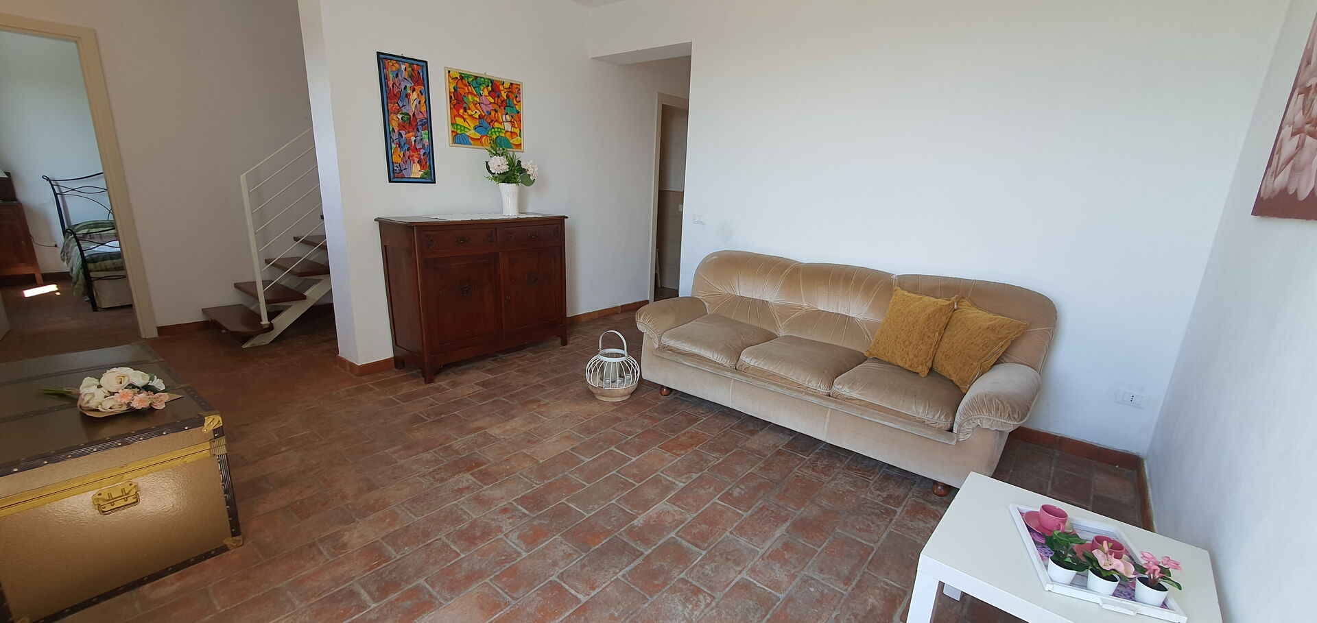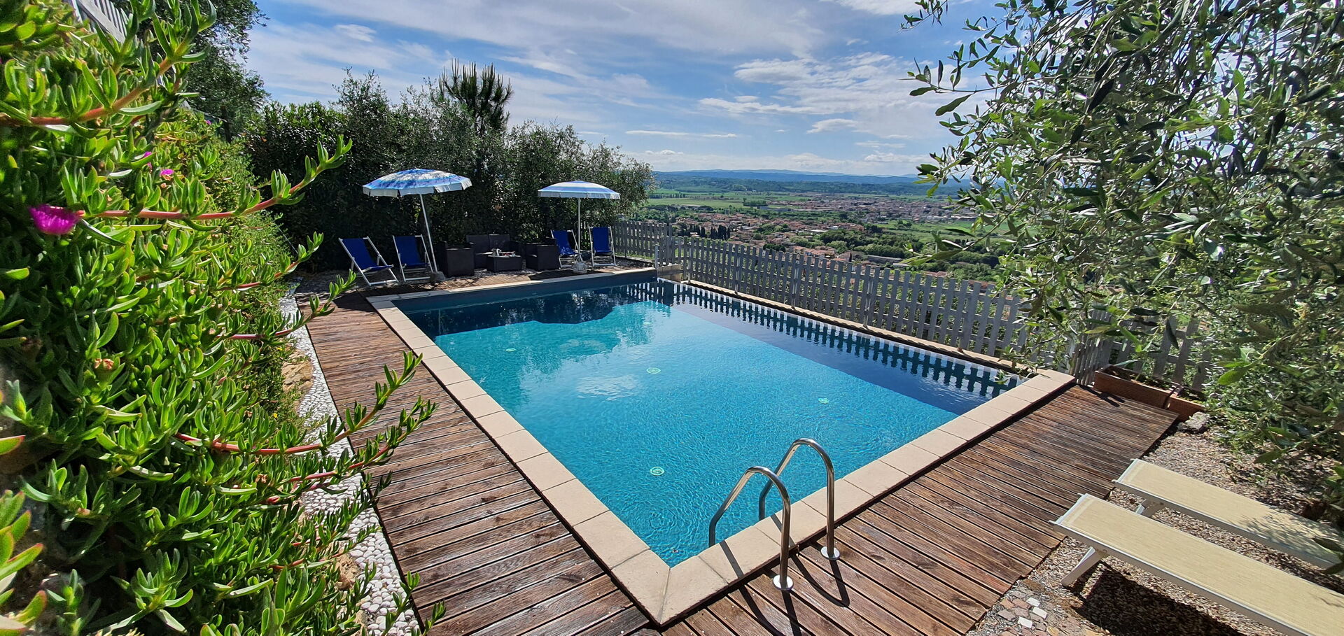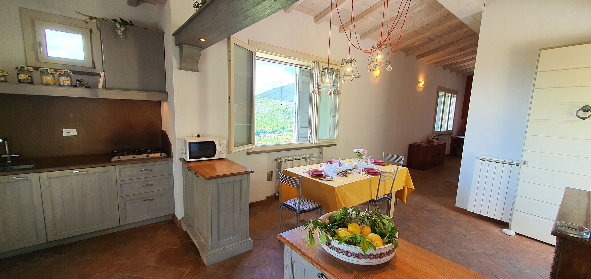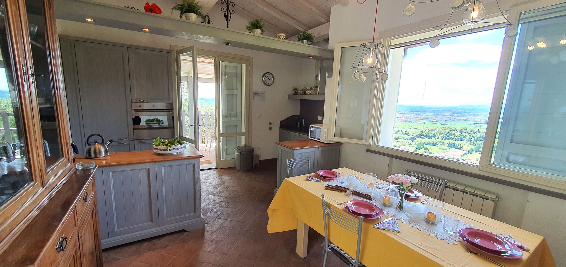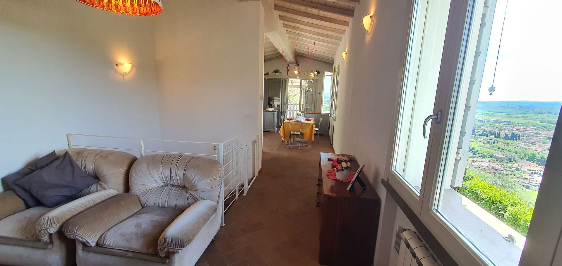 When you arrive at Podere San Martino you’ll find a lovely clean well-maintained property with views of the hills ideal for a relaxing holiday in Tuscany. Regardless of how you spend your days - shopping, sightseeing, visiting museums or just driving in the countryside, when you arrive home you can unwind with your family and friends at the pool for a perfect ending to another day in Tuscany. Outdoors you will also find a playground and barbecue grill. Dining with friends and family is a big part of the Tuscan culture. Take advantage of the kitchen to prepare meals using local produce while on your vacation. The kitchen includes coffee machine, microwave, toaster, stove and refrigerator, as well as, plenty of tableware and cutlery for up to six people. Dine 'al fresco' like a real Tuscan, the fully furnished veranda is the perfect setting to enjoy food, family and the nice Tuscan weather.