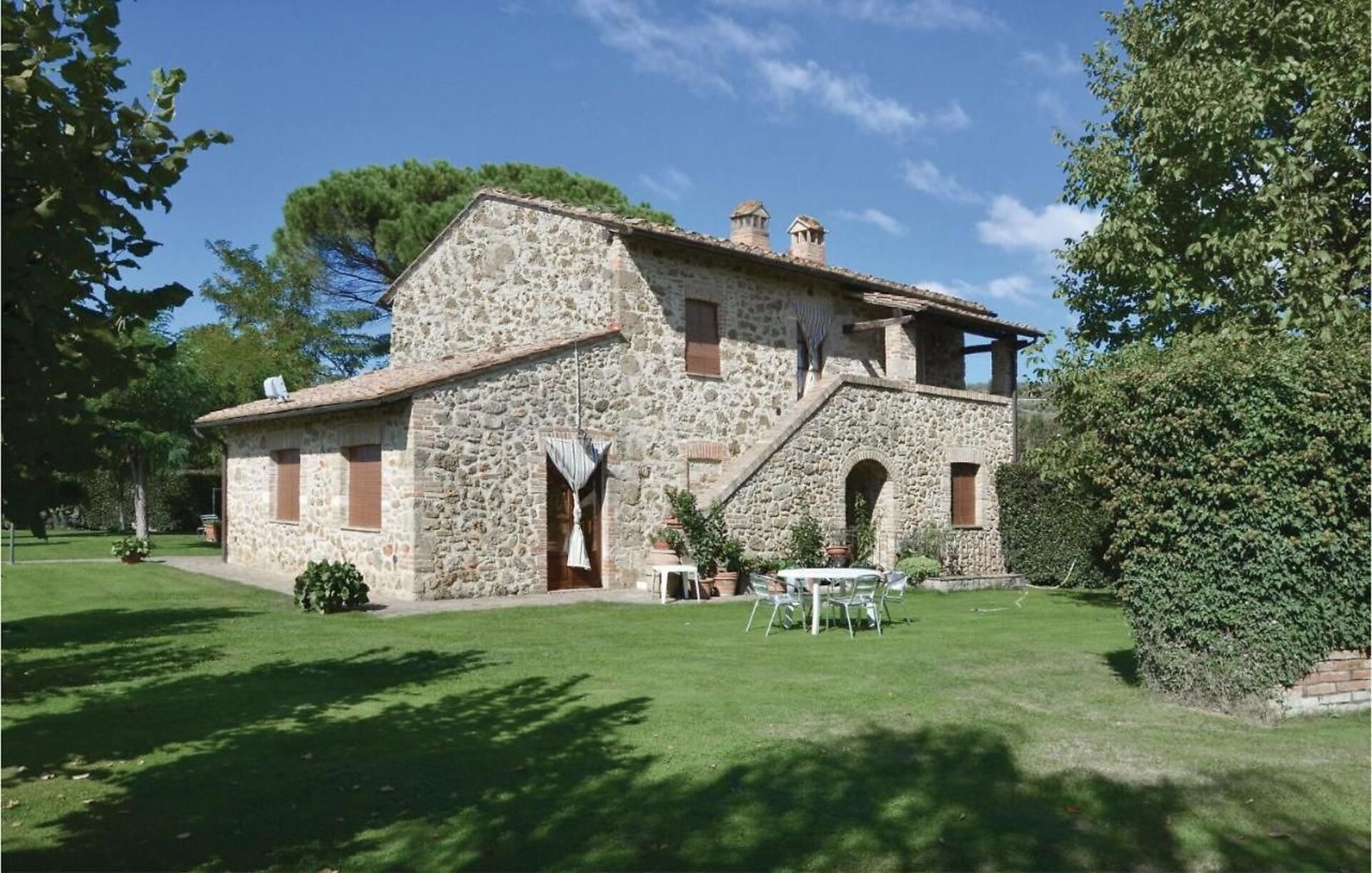 Holiday rental La Fiumara is a nice property that includes pool and air conditioning. La Fiumara is a villa / farmhouse / home with a total of three private units. The property can accommodate up to nine people comfortably in four bedrooms with three bathrooms. La Fiumara is located 2 km (1 mi) from Castellina Scalo, Italy and only 23 km (14 mi) from Siena in the tourist area "San Gimignano And Surroundings".