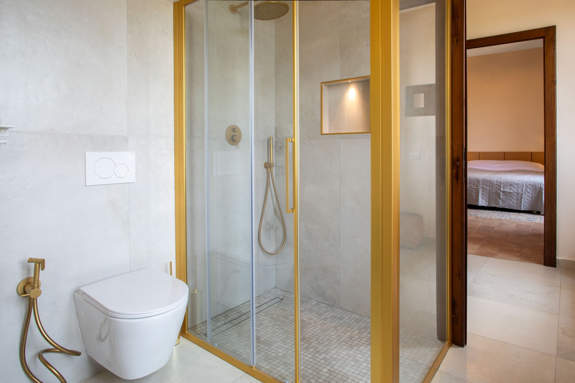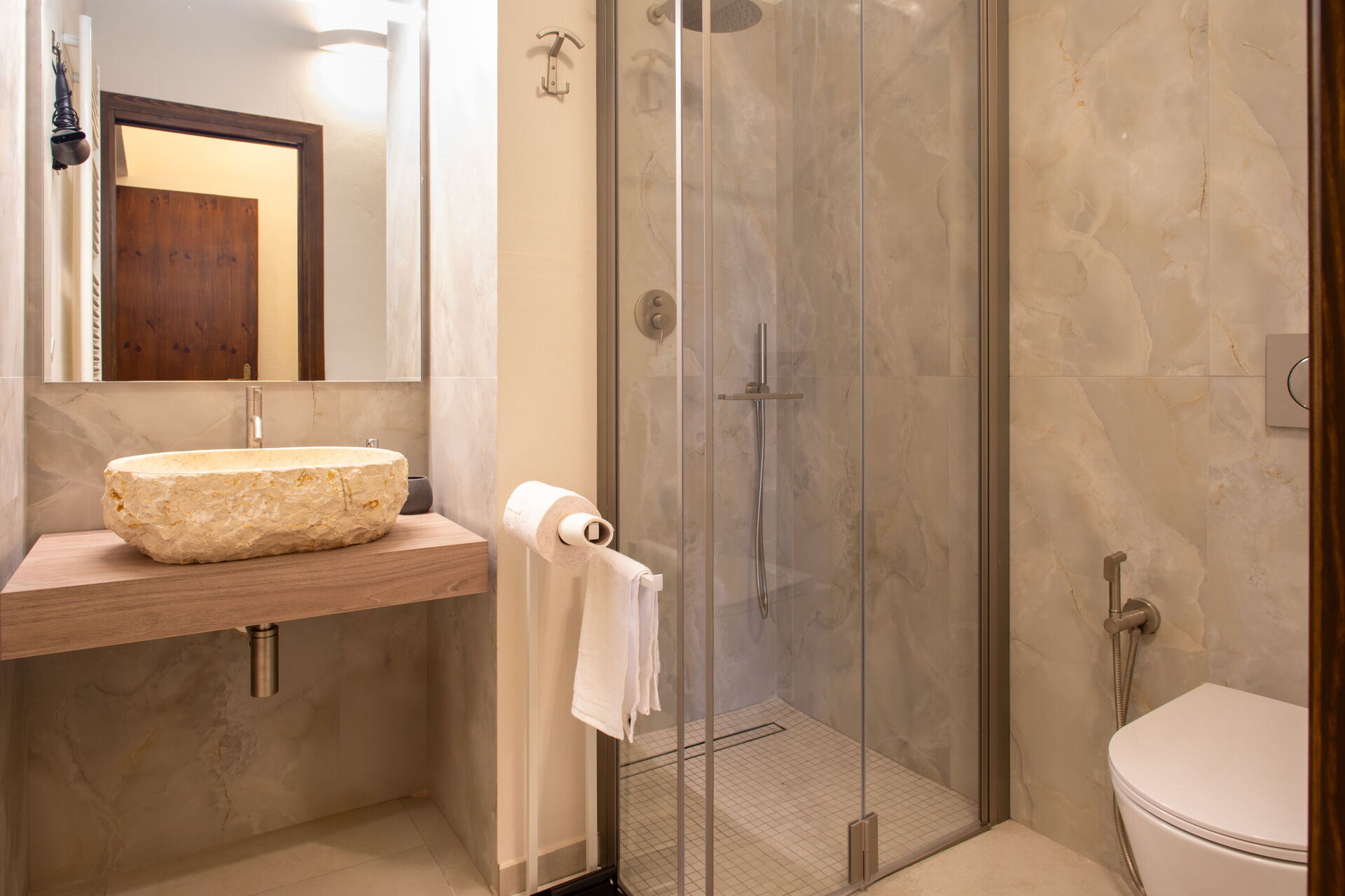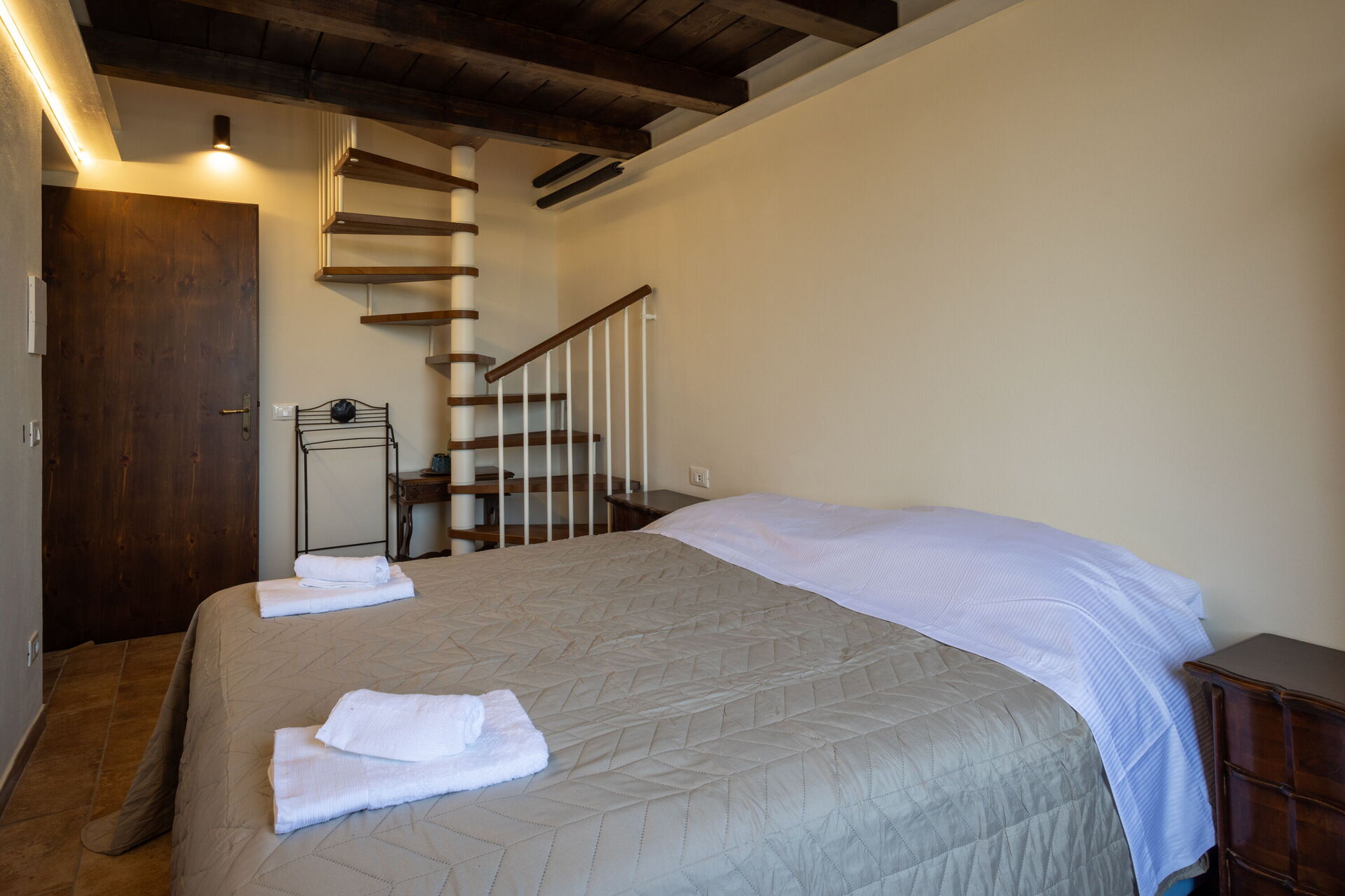 Bedroom + Ensuite Bathroom 2 (50 m2): king size bed (length: 2.1m, width: 1.8m), WIFI internet, air conditioning, armchair, working desk, toilet, shower, hairdryer.