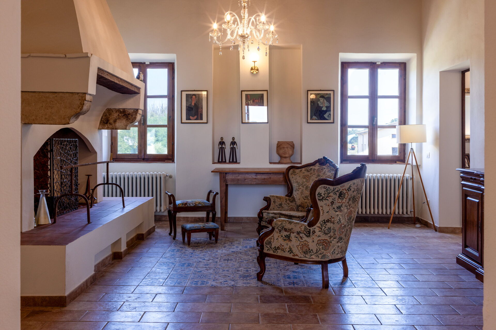 Living room (40 m2): two armchairs, working desk, fireplace, WIFI internet, air conditioning, smoke detector.