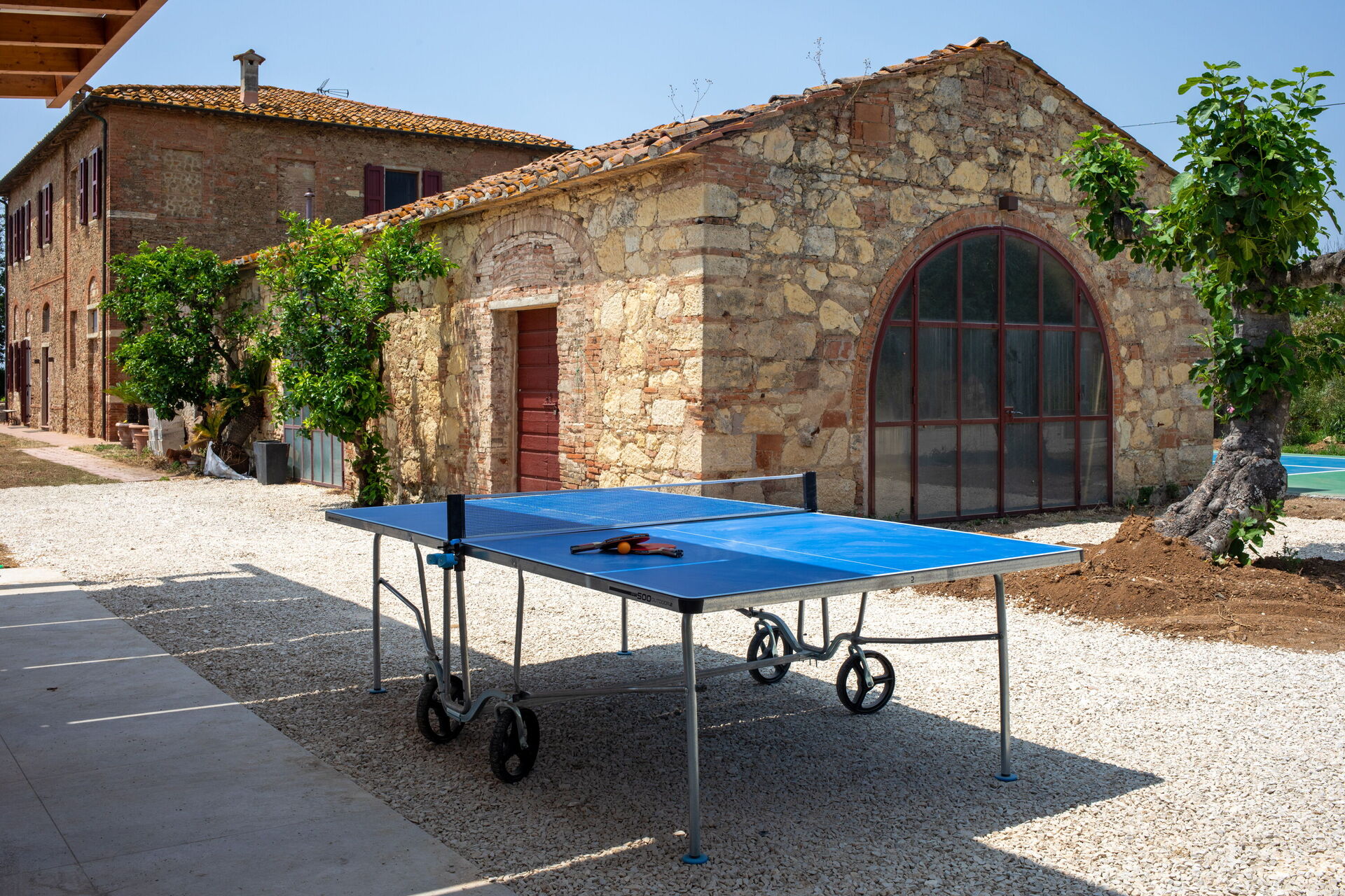 Garden (2000 m2): swimming pool, outdoor hot tub, shower, WIFI internet, barbecue, fireplace, dining table, garden furniture, terrace furniture, ten sunbeds, fenced, enclosed property, tennis court.