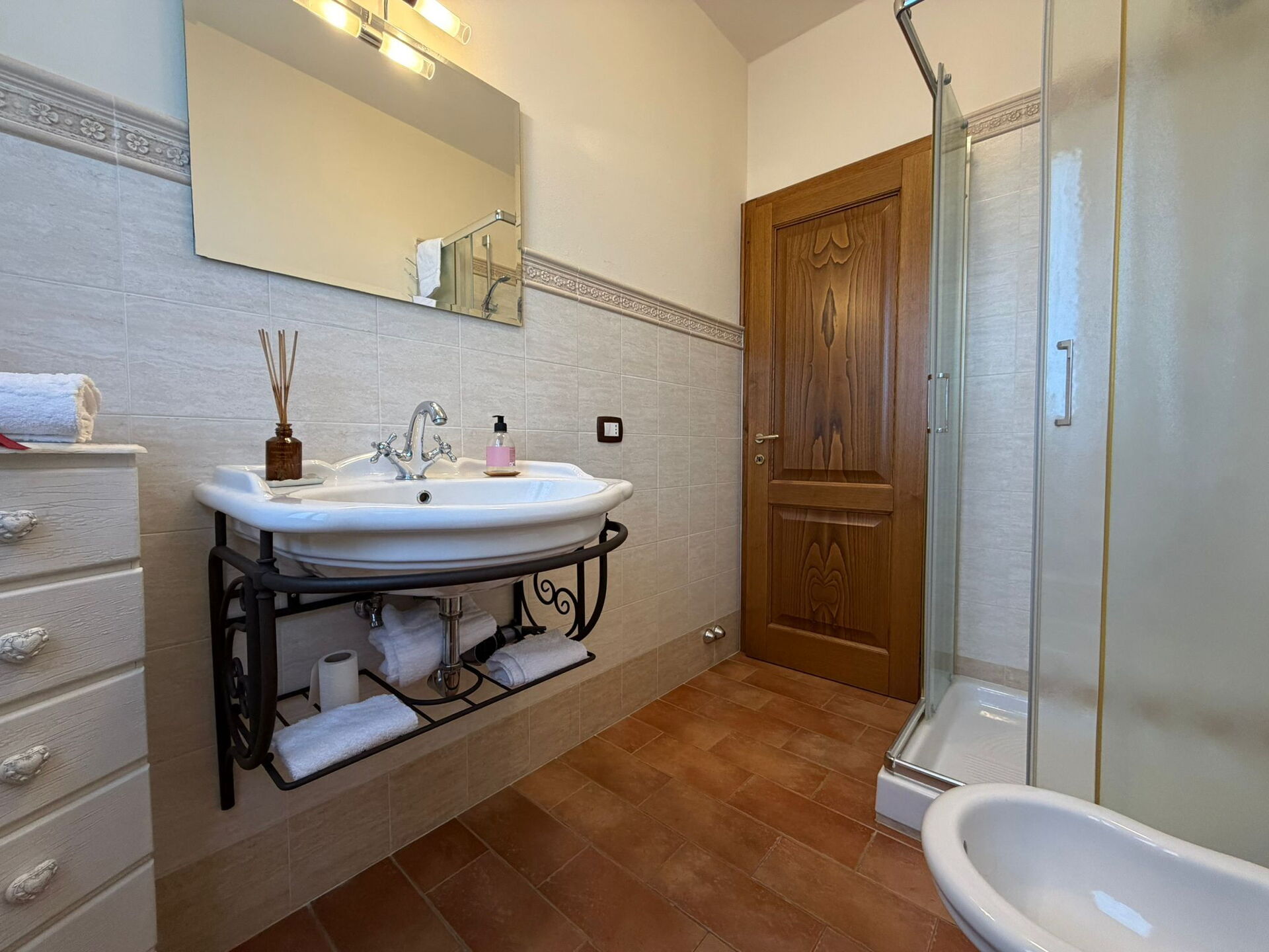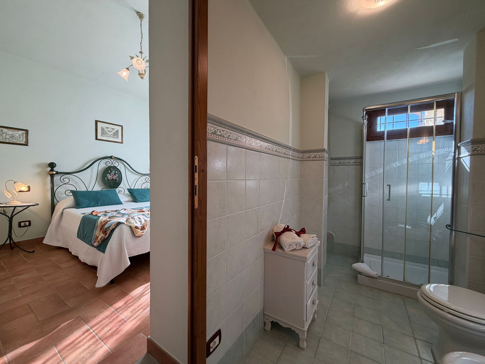 Bedroom + Ensuite Bathroom: double bed, WIFI internet, air conditioning, basin, toilet, bidet, shower, hairdryer.