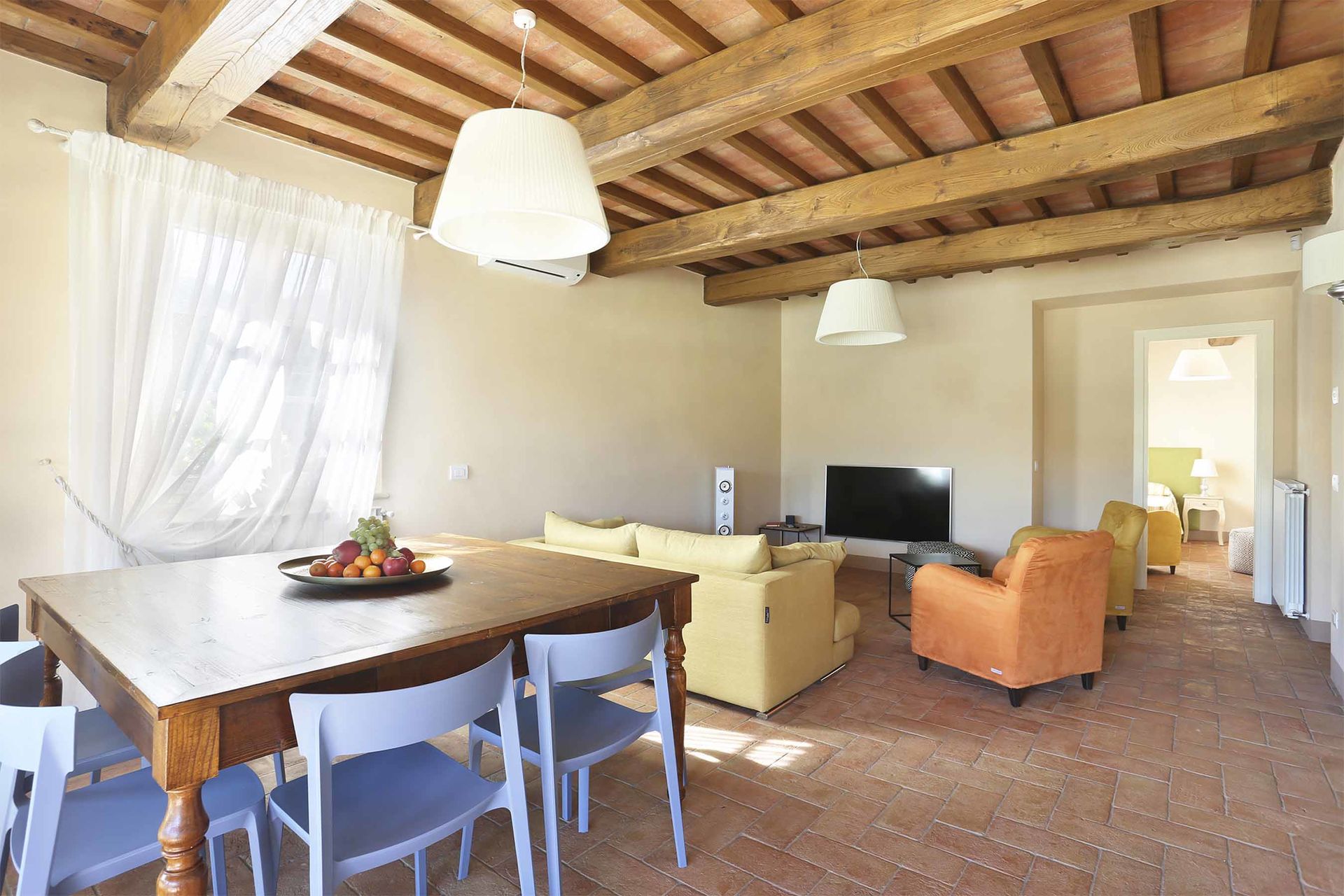 When you arrive at Il Grappolo you’ll find a lovely clean well-maintained property with views of the hills ideal for a relaxing holiday in Tuscany. After a hectic day of sightseeing, spend some time with friends and family poolside enjoying a glass of wine - a perfect way to relax at the end the day. Sharing a meal with friends and family is a big part of the Tuscan culture. Take advantage of the well-equipped kitchen to prepare meals using local produce while on your holiday. The kitchen includes coffee machine, microwave, toaster, stove and refrigerator, as well as, plenty of tableware and cutlery for up to nine people. Dine 'al fresco' like a real Tuscan, the fully furnished veranda is the perfect setting to enjoy food, family and the beautiful Tuscan weather.