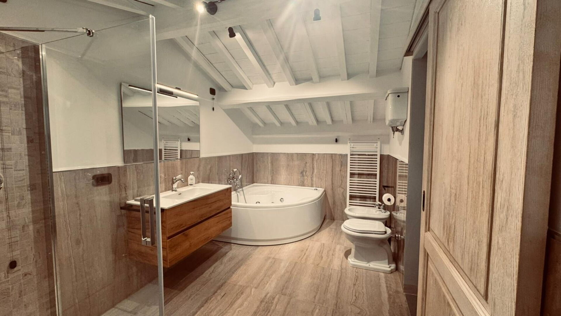 Bedroom + Ensuite Bathroom: double bed, WIFI internet, air conditioning, whirlpool bathtub, basin, toilet, bidet, shower, hairdryer.