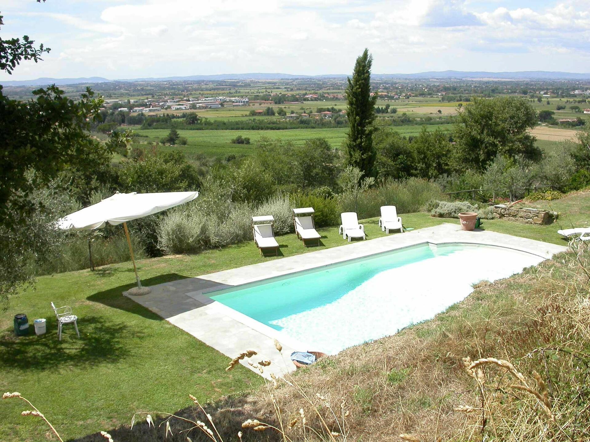 After arriving you will be welcomed by the owner or manager where you’ll find a lovely clean well-maintained property with views of the hills perfect for a splendid vacation in Tuscany. After a busy day of shopping, spend some time with friends and family poolside enjoying a glass of wine - a perfect way to relax at the end the day. If you enjoy cooking for family and friends there is a well-equipped kitchen including coffee machine, microwave, toaster, stove and refrigerator, as well as, plenty of tableware and cutlery for up to seven people.