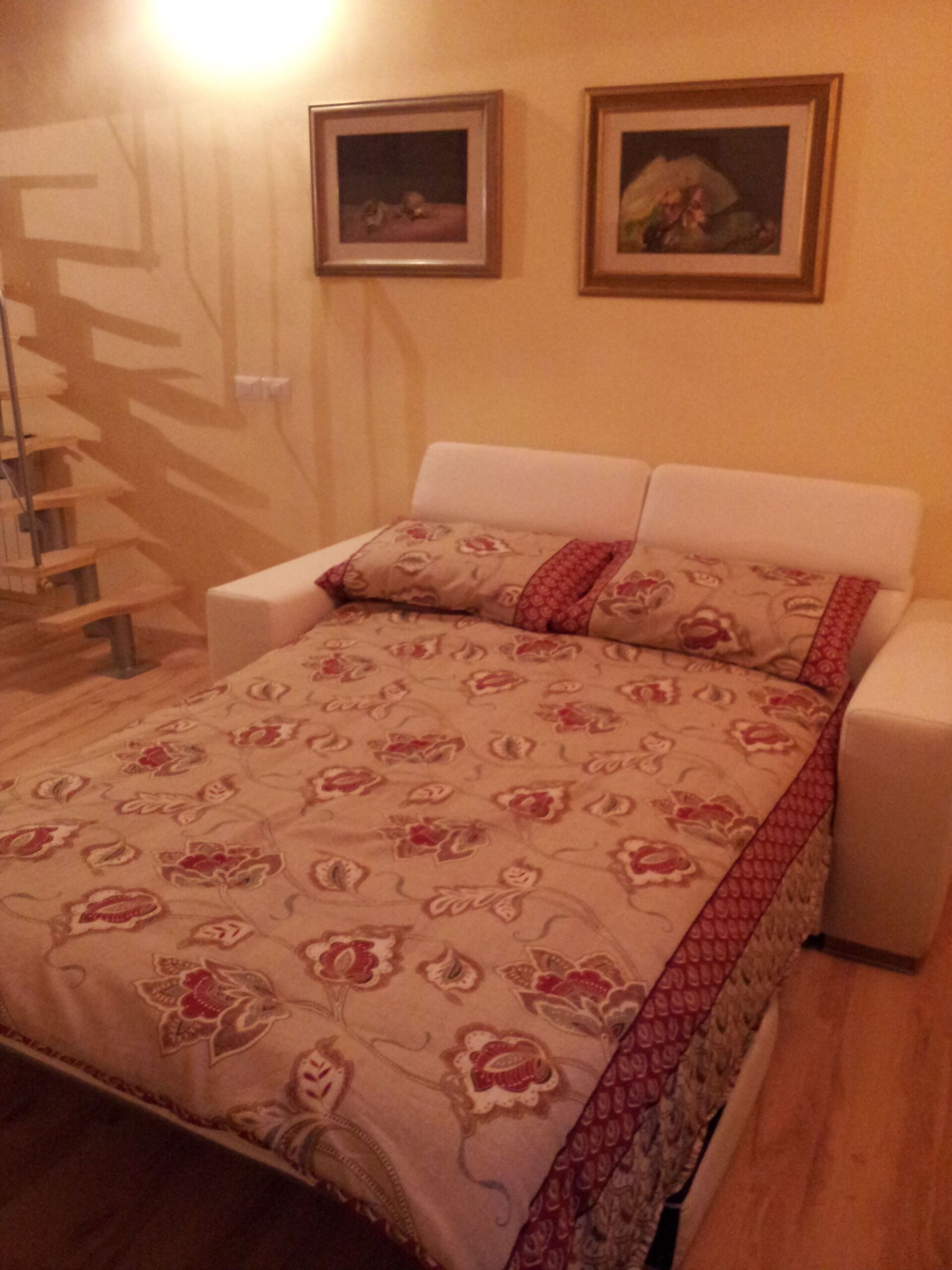 Kitchen + living room: well equipped kitchen, dining table, fridge, freezer, microwave, stove top, oven, toaster, iron, italian coffee machine, sofa bed double, WIFI internet, internet, television, smoke detector, co2 detector.