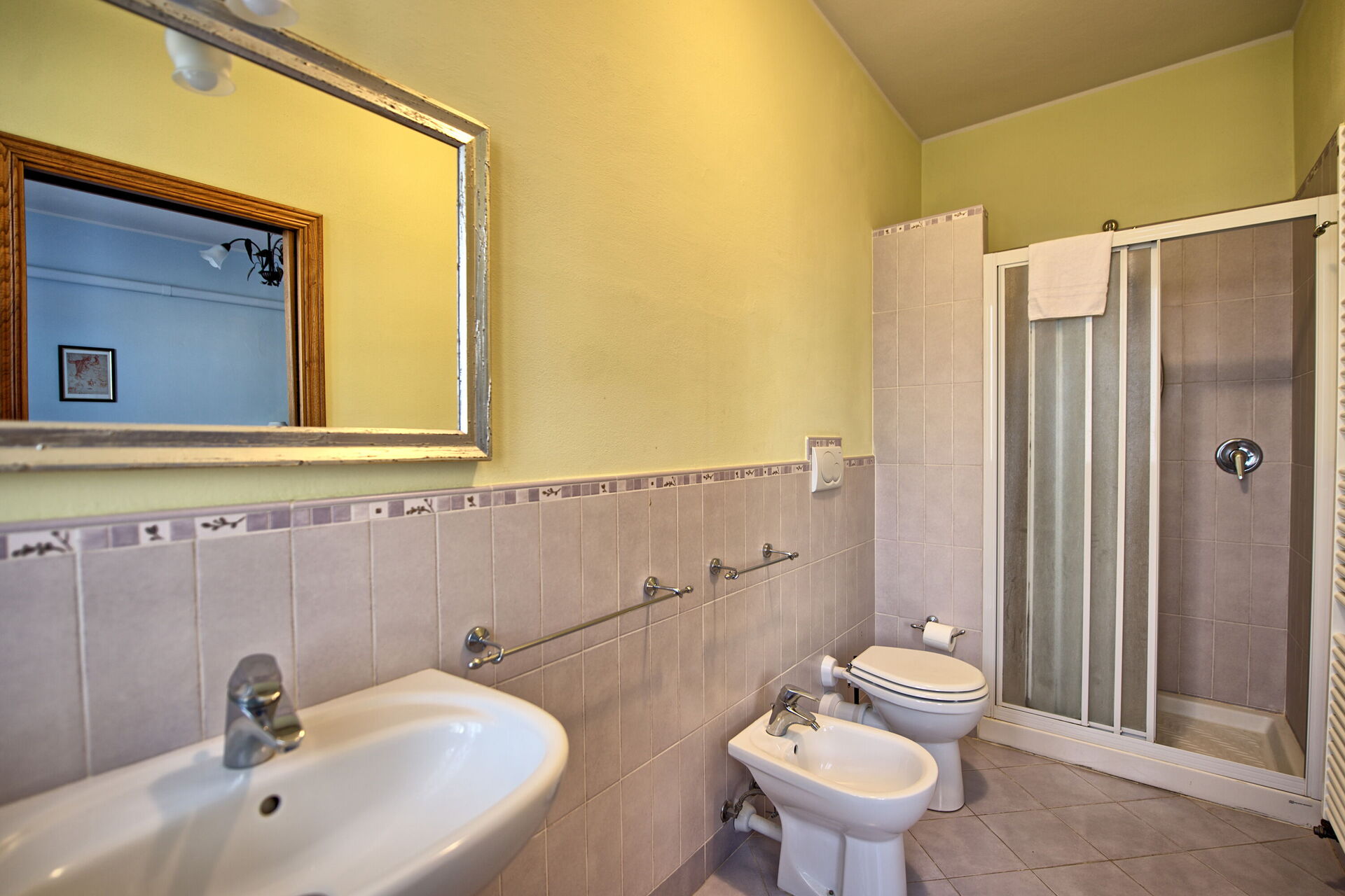 1st floor: living-room (TV-sat, air-conditioning), kitchen (stove, oven, fridge, toaster, freezer, dishwasher, American coffee machine) with dining area, double bedroom with ensuite bathroom with shower, twin-bedded room, double bedroom, bathroom with shower.