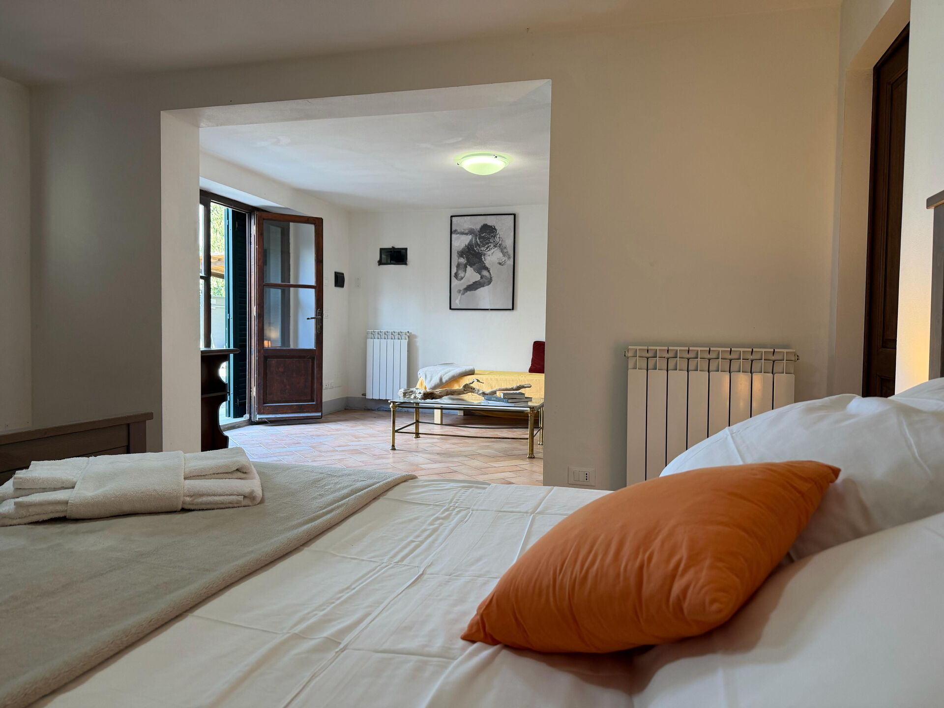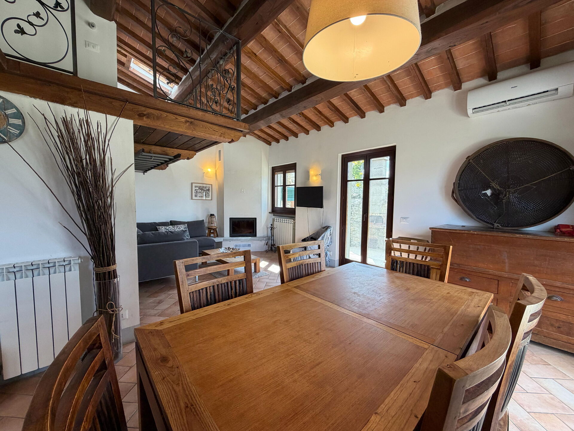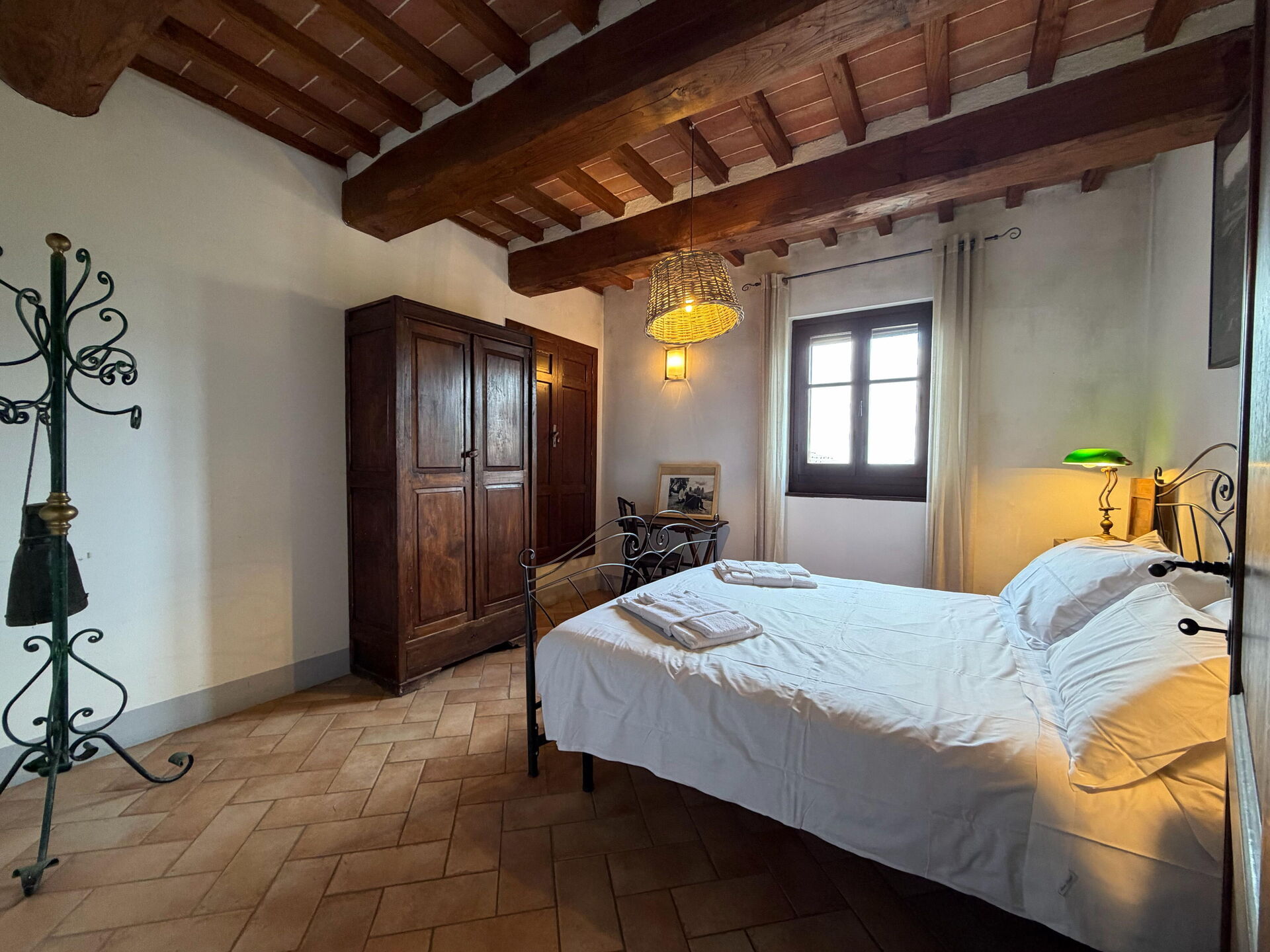 When you arrive you’ll find a beautiful clean well-maintained property with views of the mountains and the hills ideal for a peaceful vacation in Tuscany. For your enjoyment you will find a private pool where you can unwind while enjoying a nice cold beverage after a hectic day of sightseeing. For your pleasure, on the grounds there is a patio and barbecue grill. Sharing a meal with friends and family is a huge part of the Tuscan culture. Take advantage of the well-equipped kitchen to prepare meals using local produce while on your holiday. The kitchen includes coffee machine, toaster, stove and refrigerator, as well as, plenty of tableware and cutlery for up to eight people. Dine 'al fresco' like a real Tuscan, the fully furnished veranda is the ideal setting to enjoy food, family and the beautiful Tuscan weather.