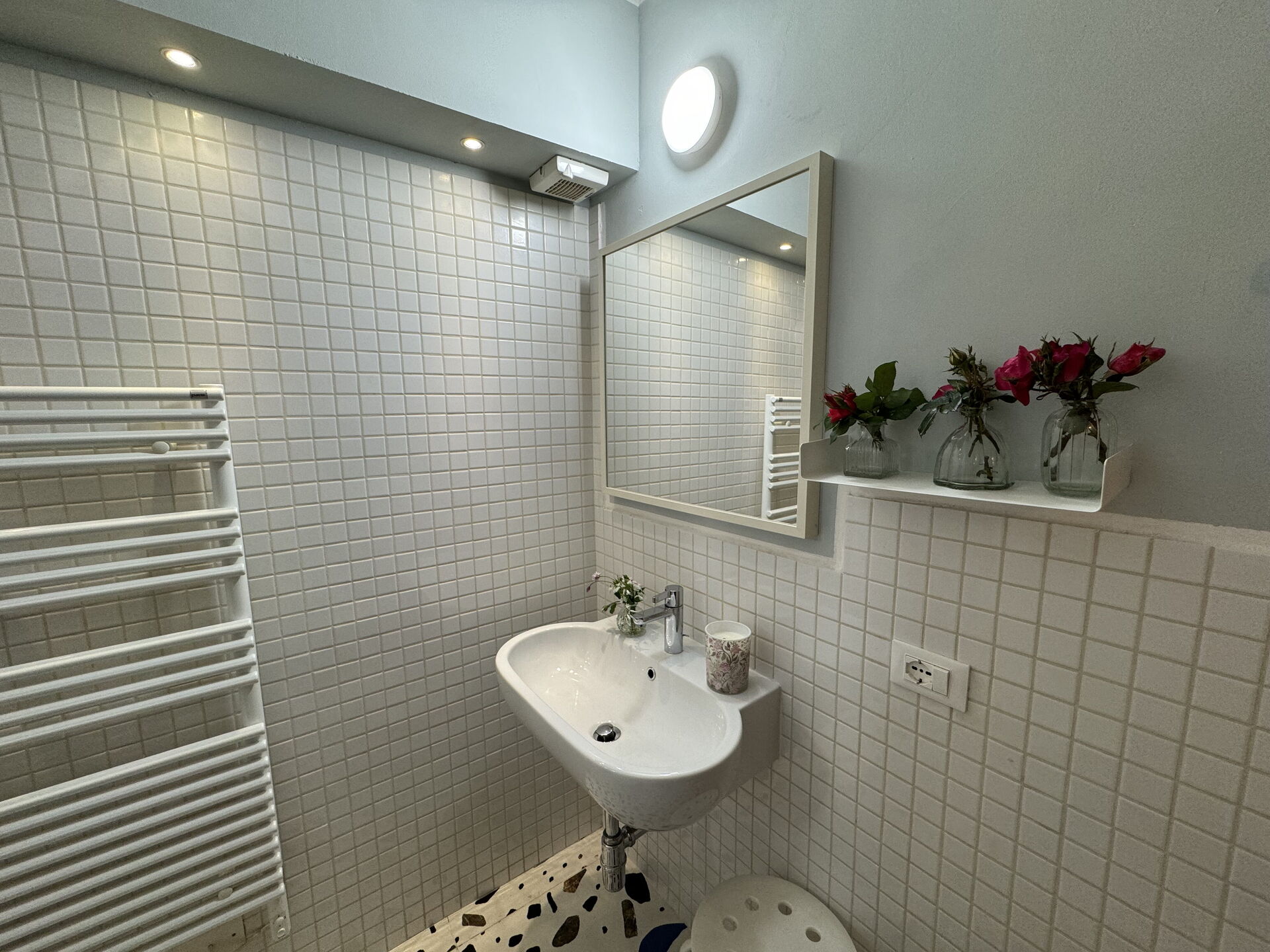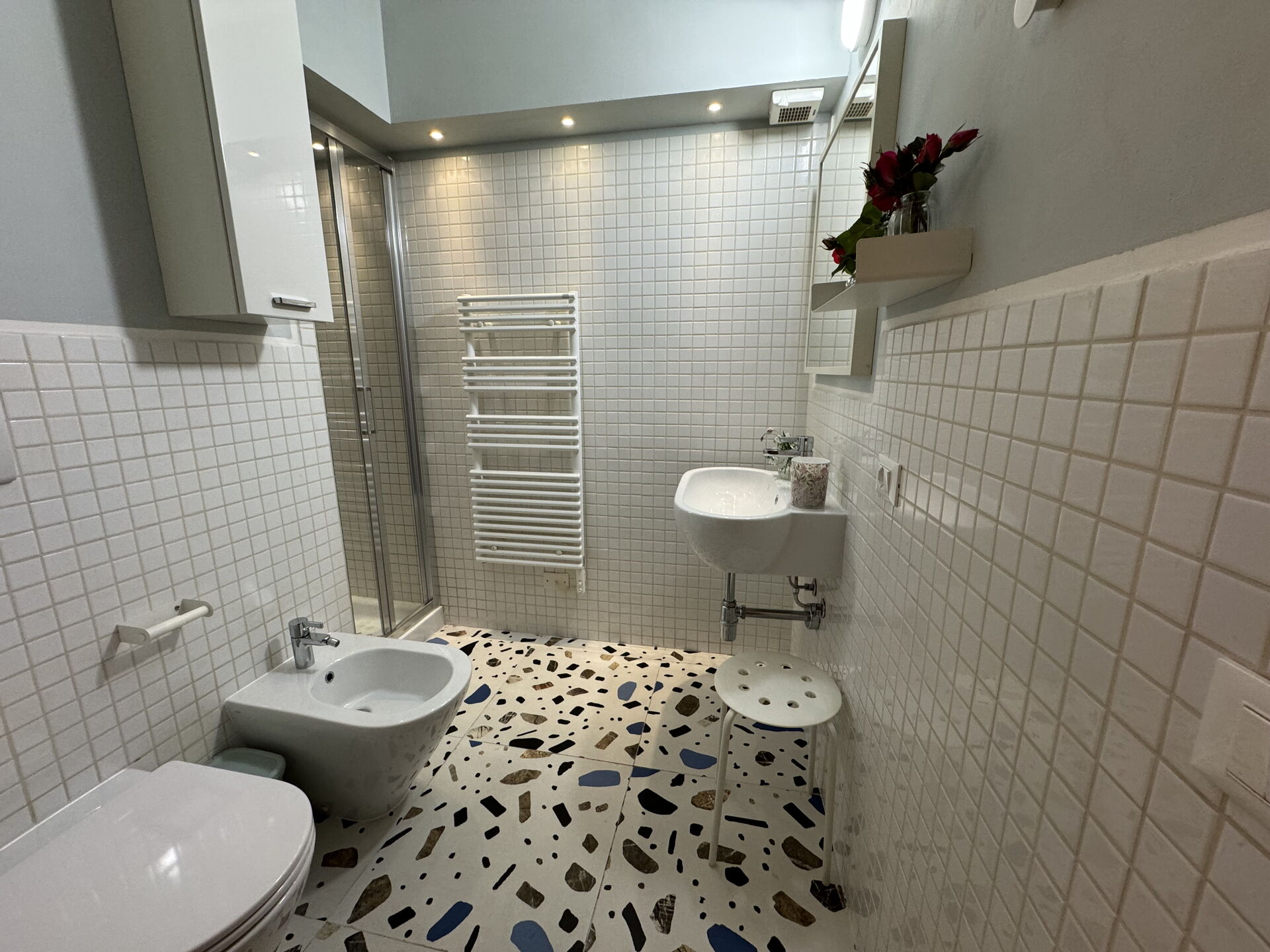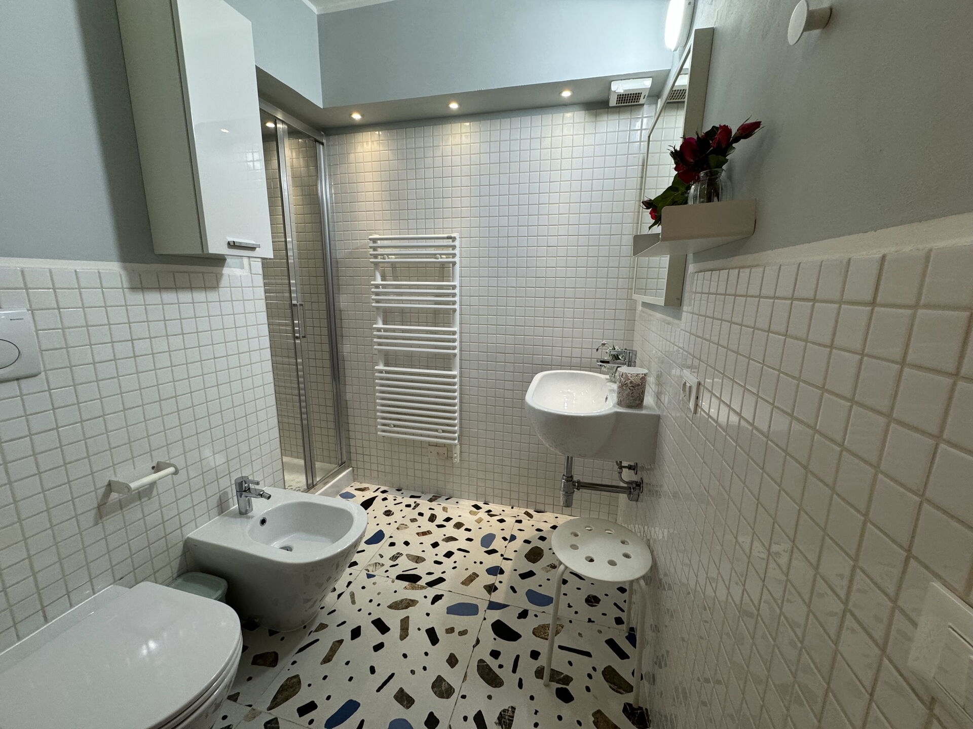 Bathroom 2: basin, toilet, bidet, shower.