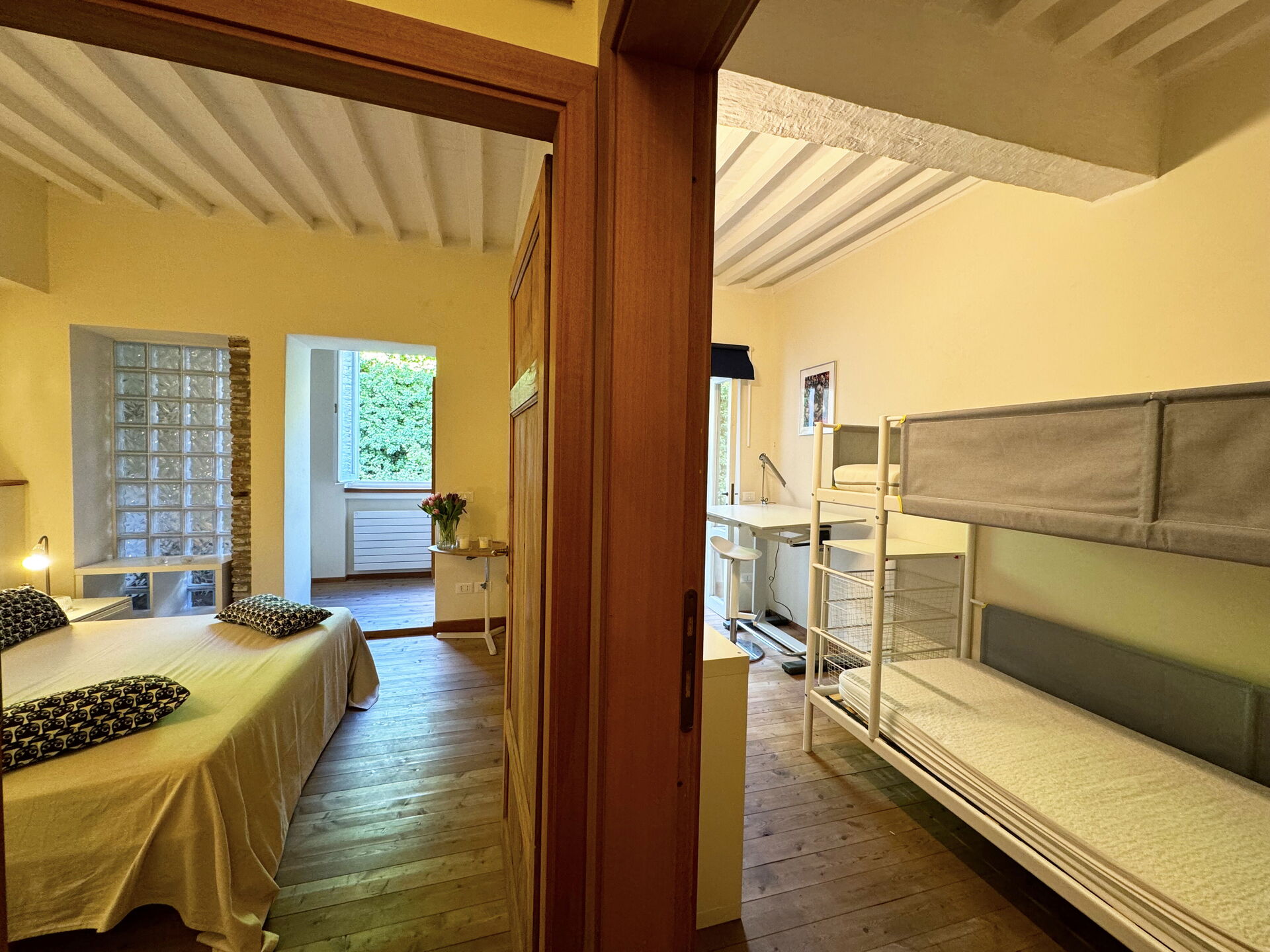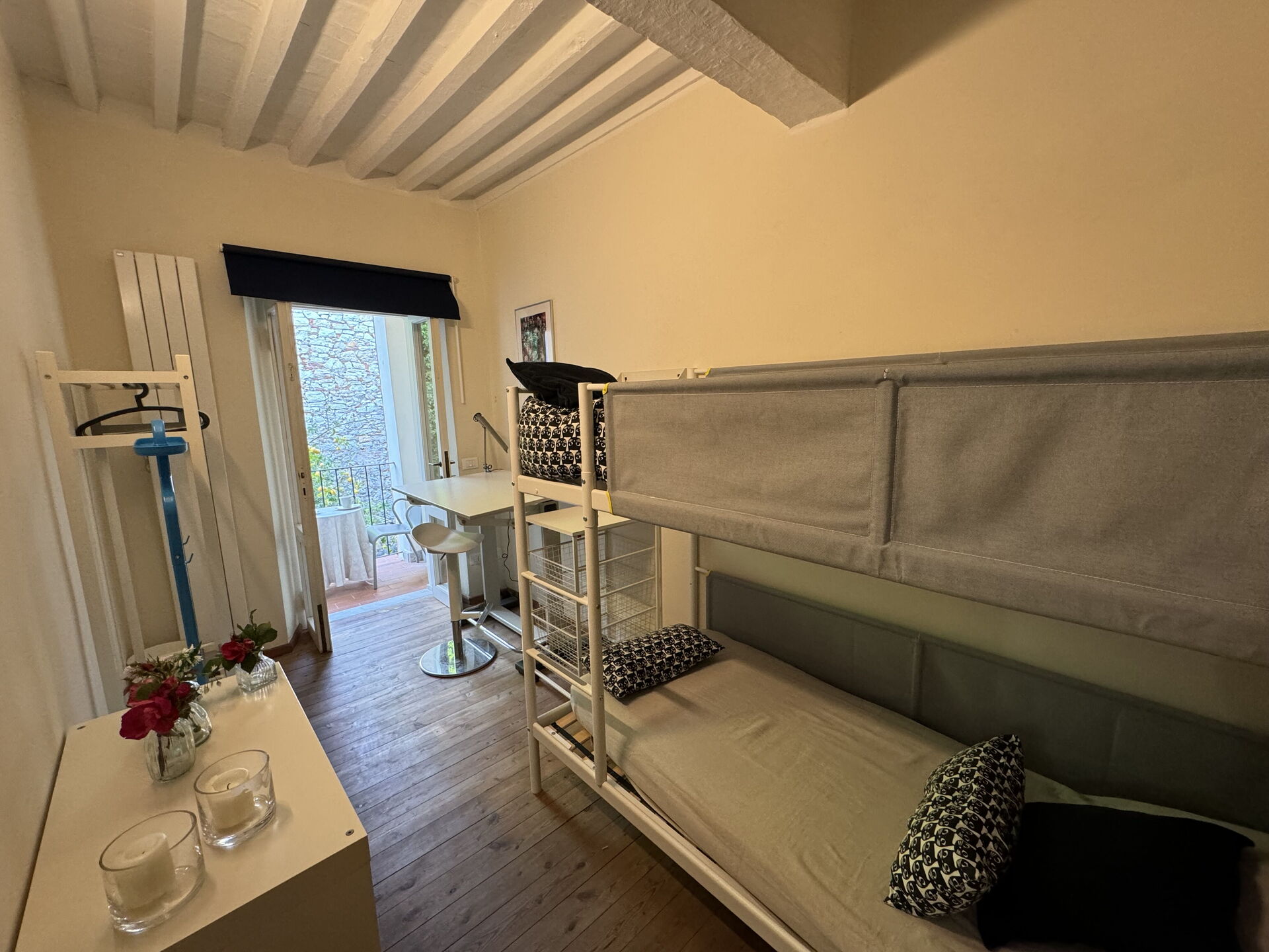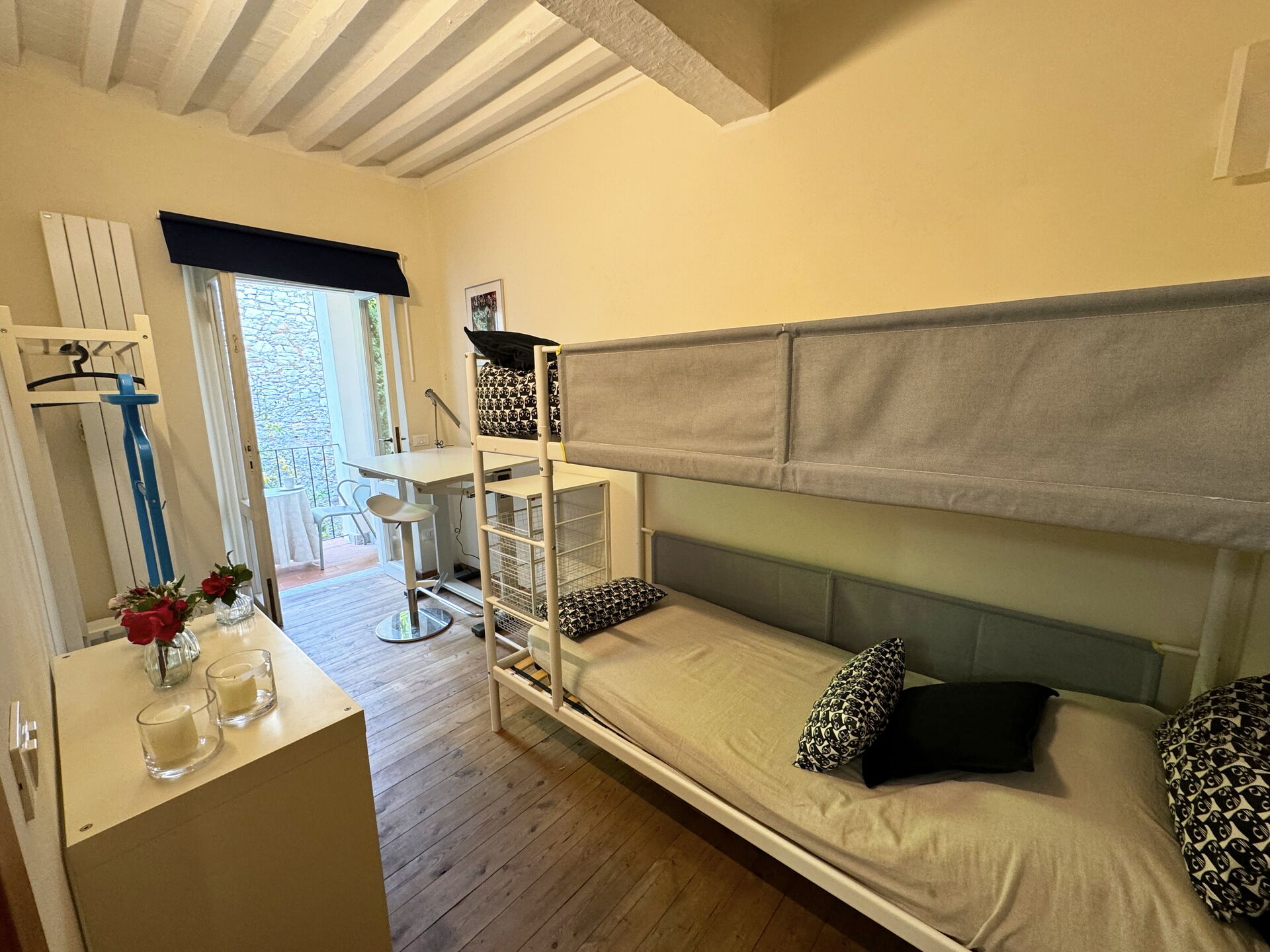 Bedroom 2: bunk bed, exit to the terrace.