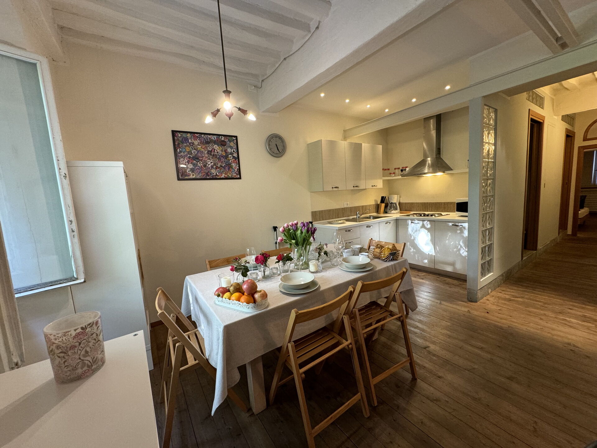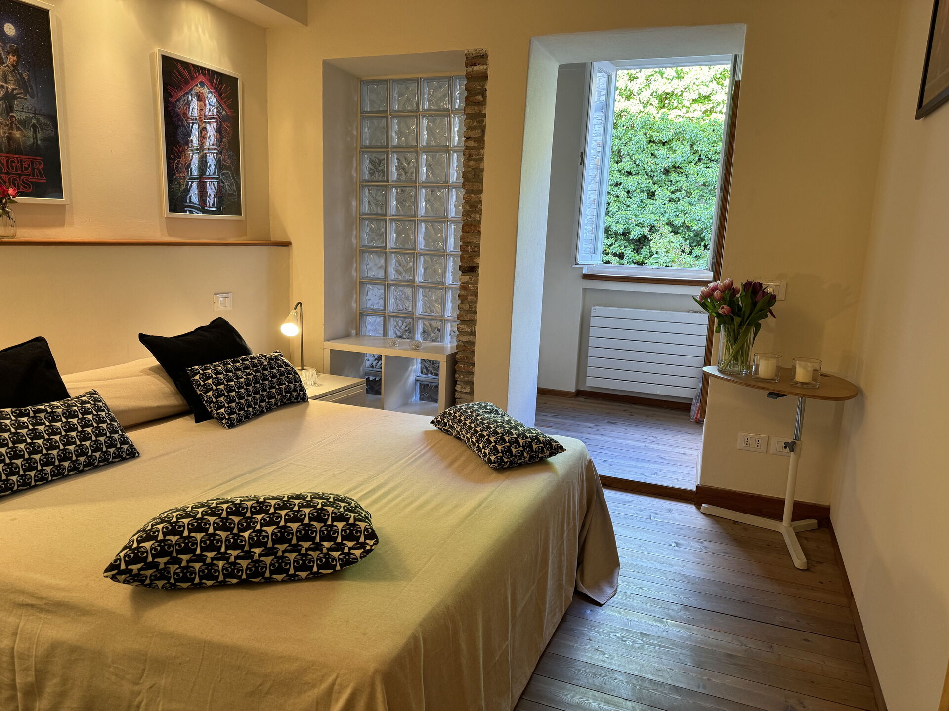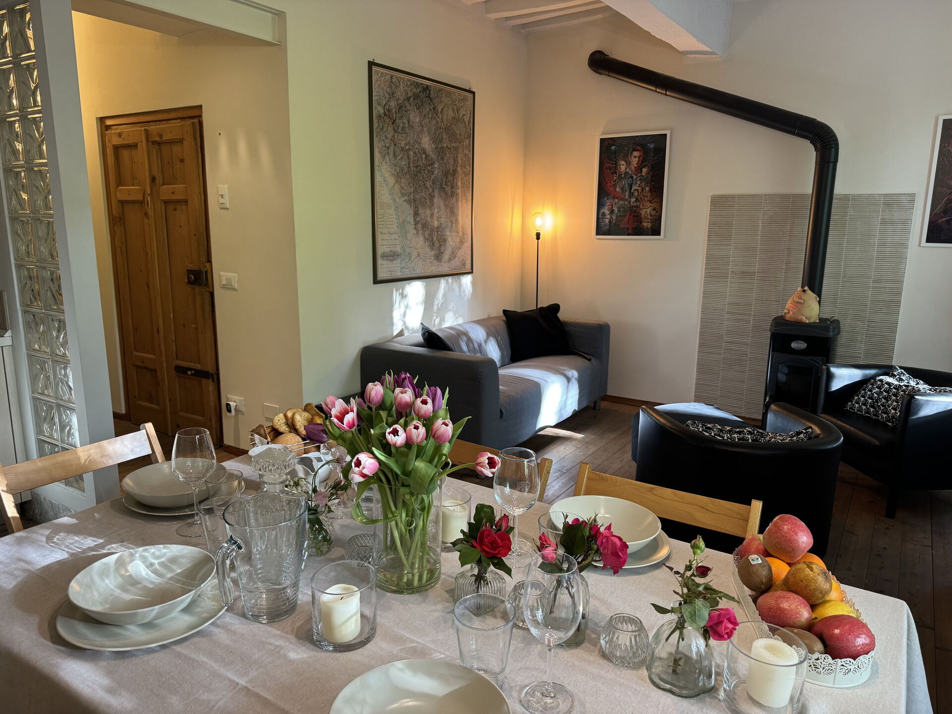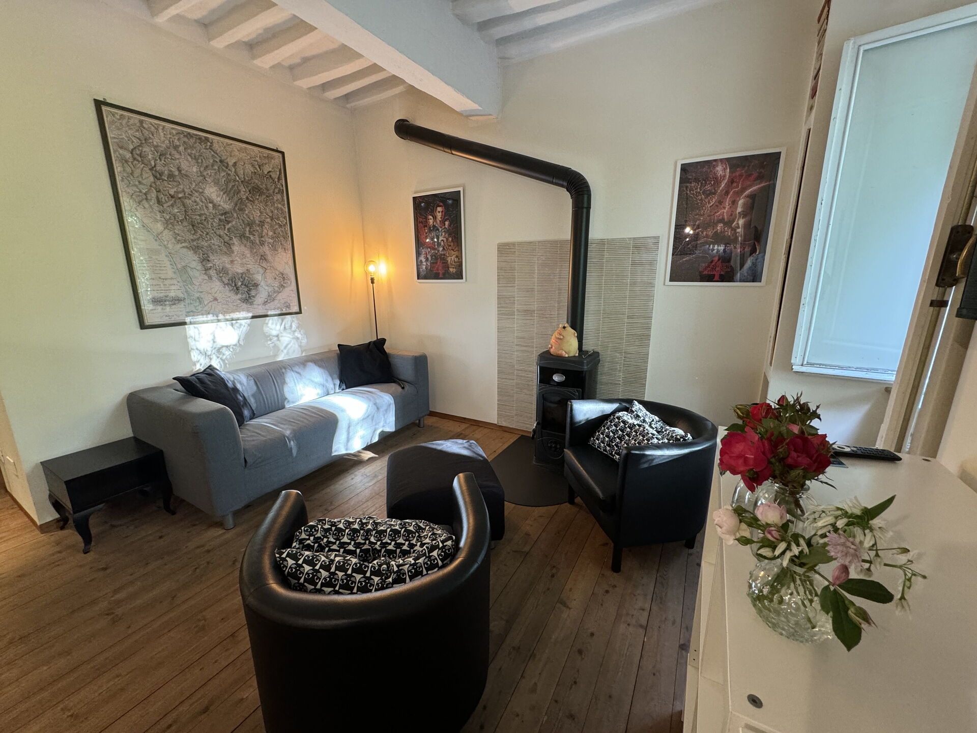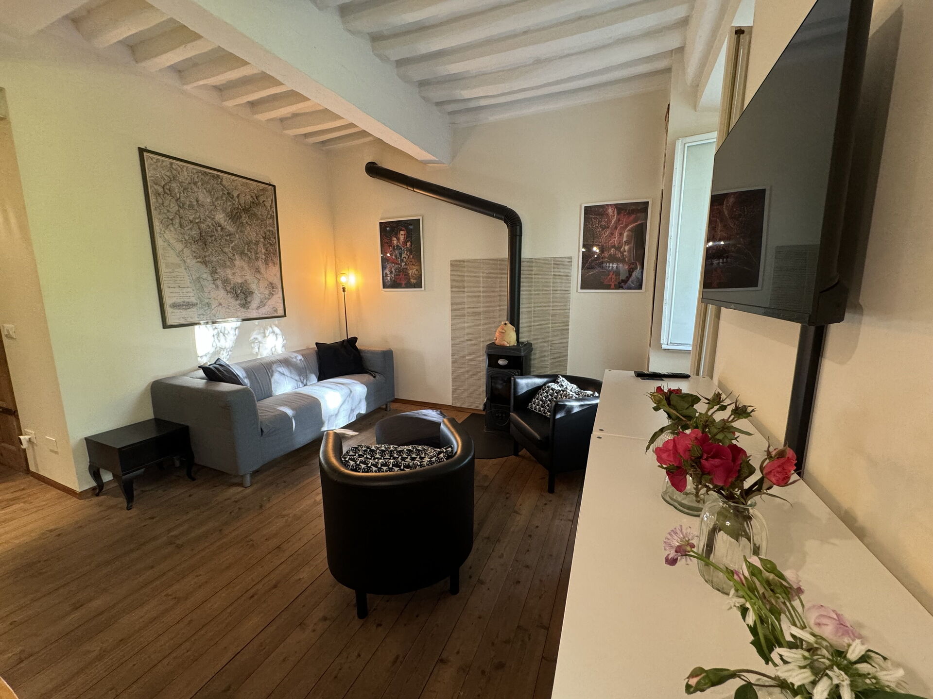 When you arrive you’ll find a nice clean well-maintained property with views of the city ideal for a relaxing vacation in Tuscany. A real benefit of renting a home, instead of multiple hotel rooms, is the ability to relax after a busy day of sightseeing with family and friends. Enjoy a meal together along with some local wine to finish the day. There is a kitchen including coffee machine, stove and refrigerator, as well as, plenty of tableware and cutlery for up to four people.