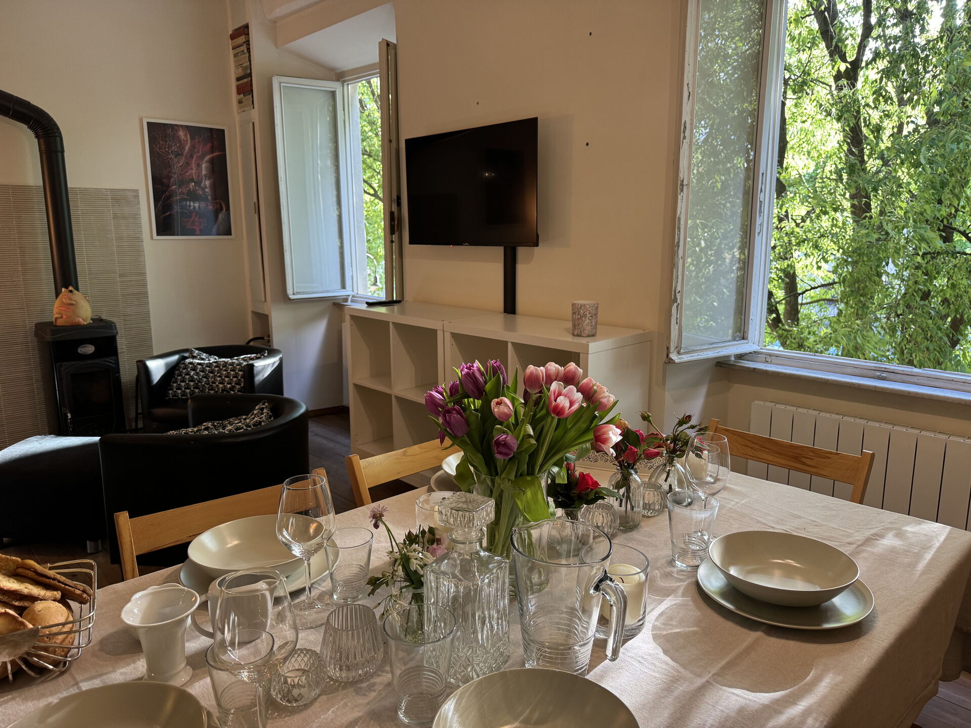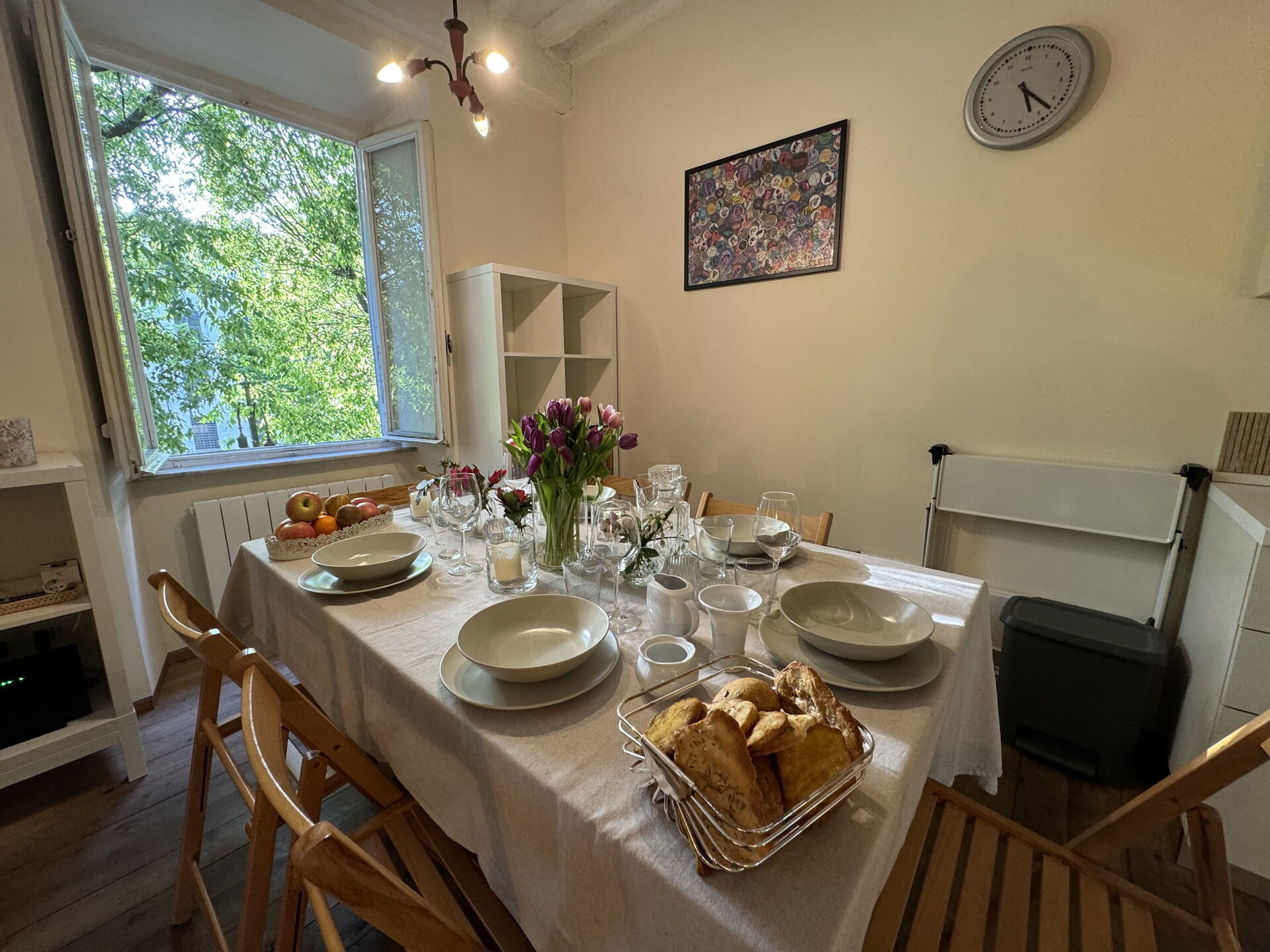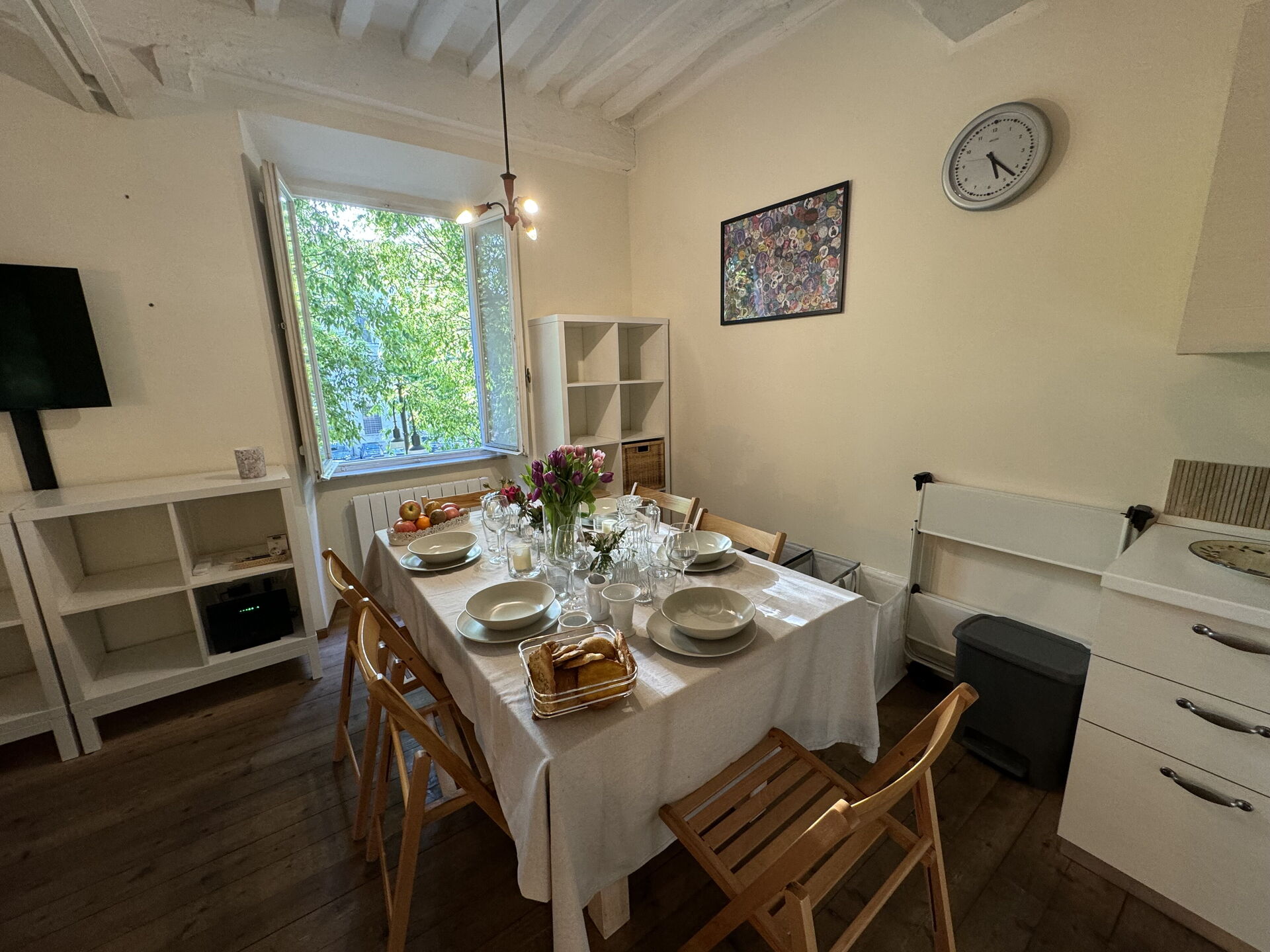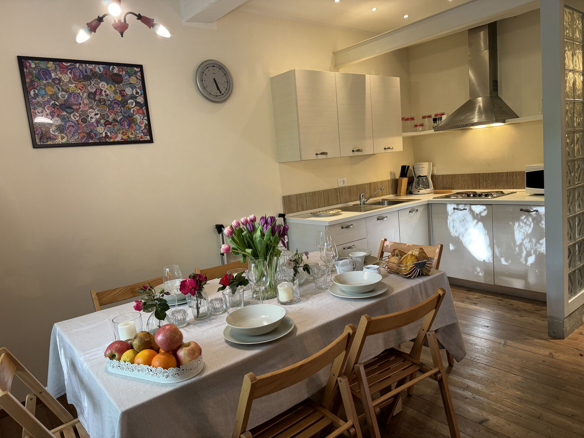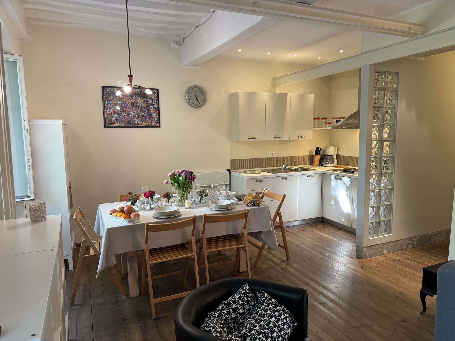 When you arrive you’ll find a nice clean well-maintained property with views of the city ideal for a relaxing vacation in Tuscany. A real benefit of renting a home, instead of multiple hotel rooms, is the ability to relax after a busy day of sightseeing with family and friends. Enjoy a meal together along with some local wine to finish the day. There is a kitchen including coffee machine, stove and refrigerator, as well as, plenty of tableware and cutlery for up to four people.