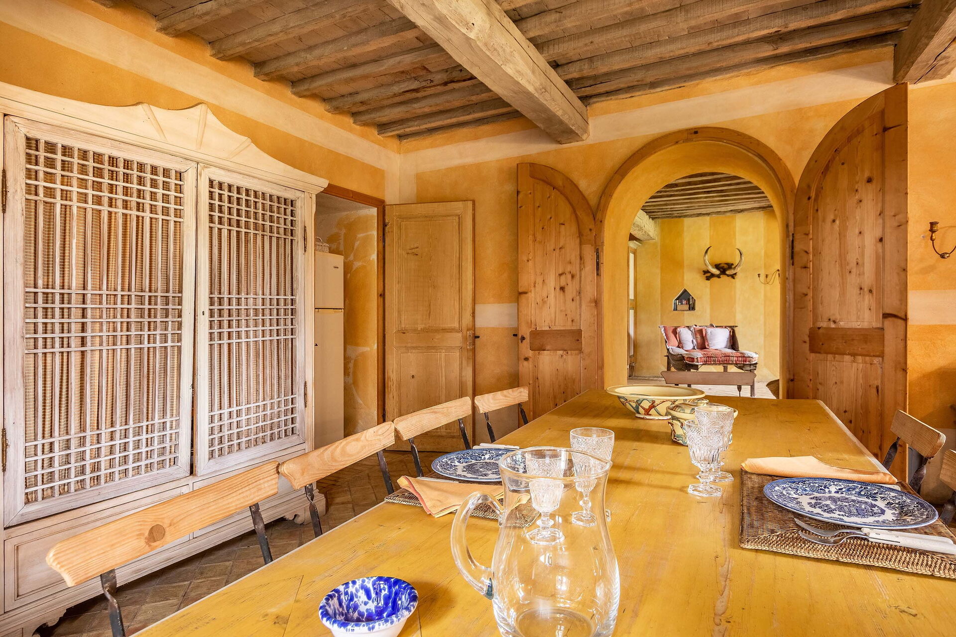 Dining room: dining table (people: 16), WIFI internet, fireplace, exit to the garden, exit to the patio.