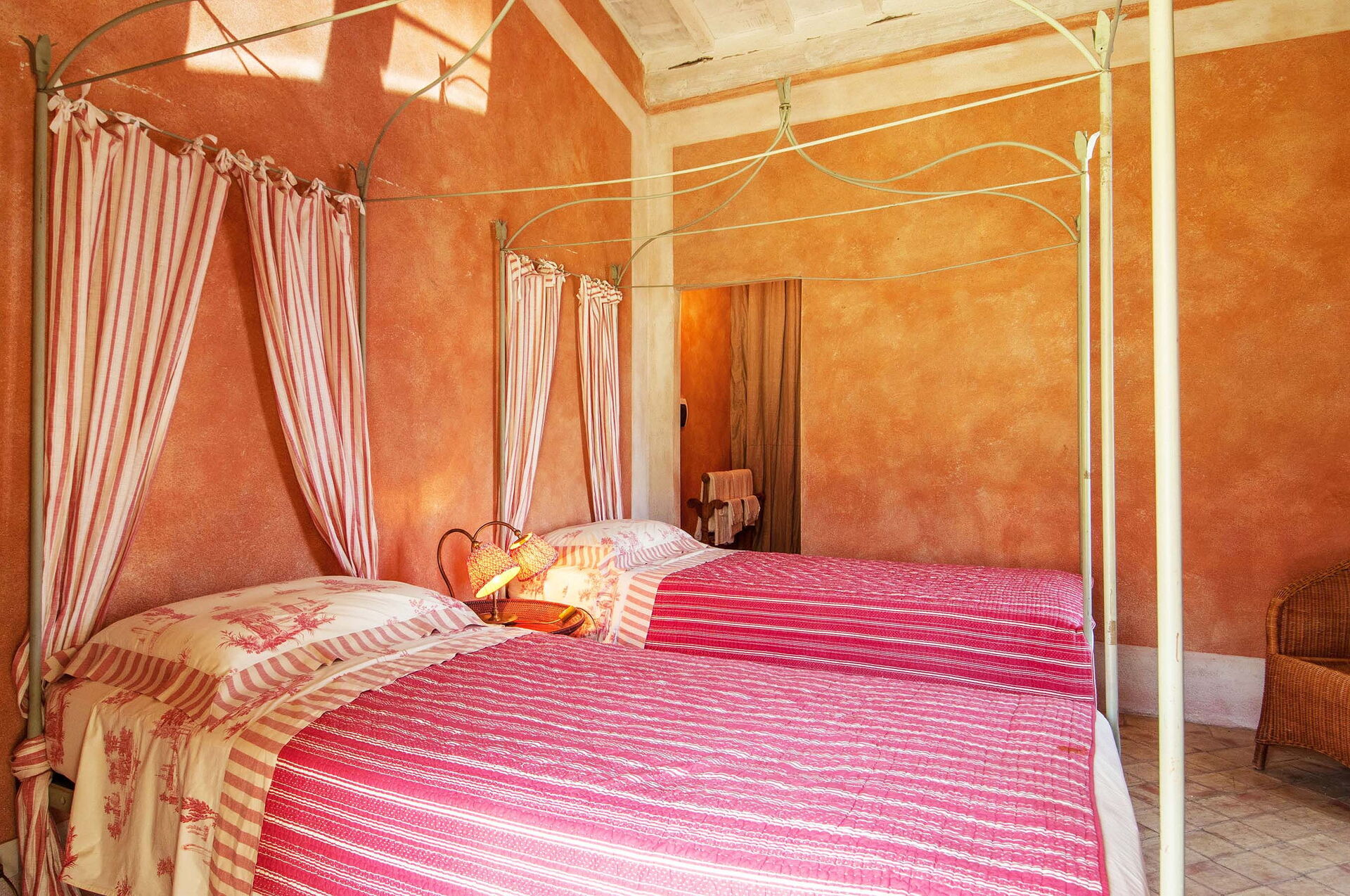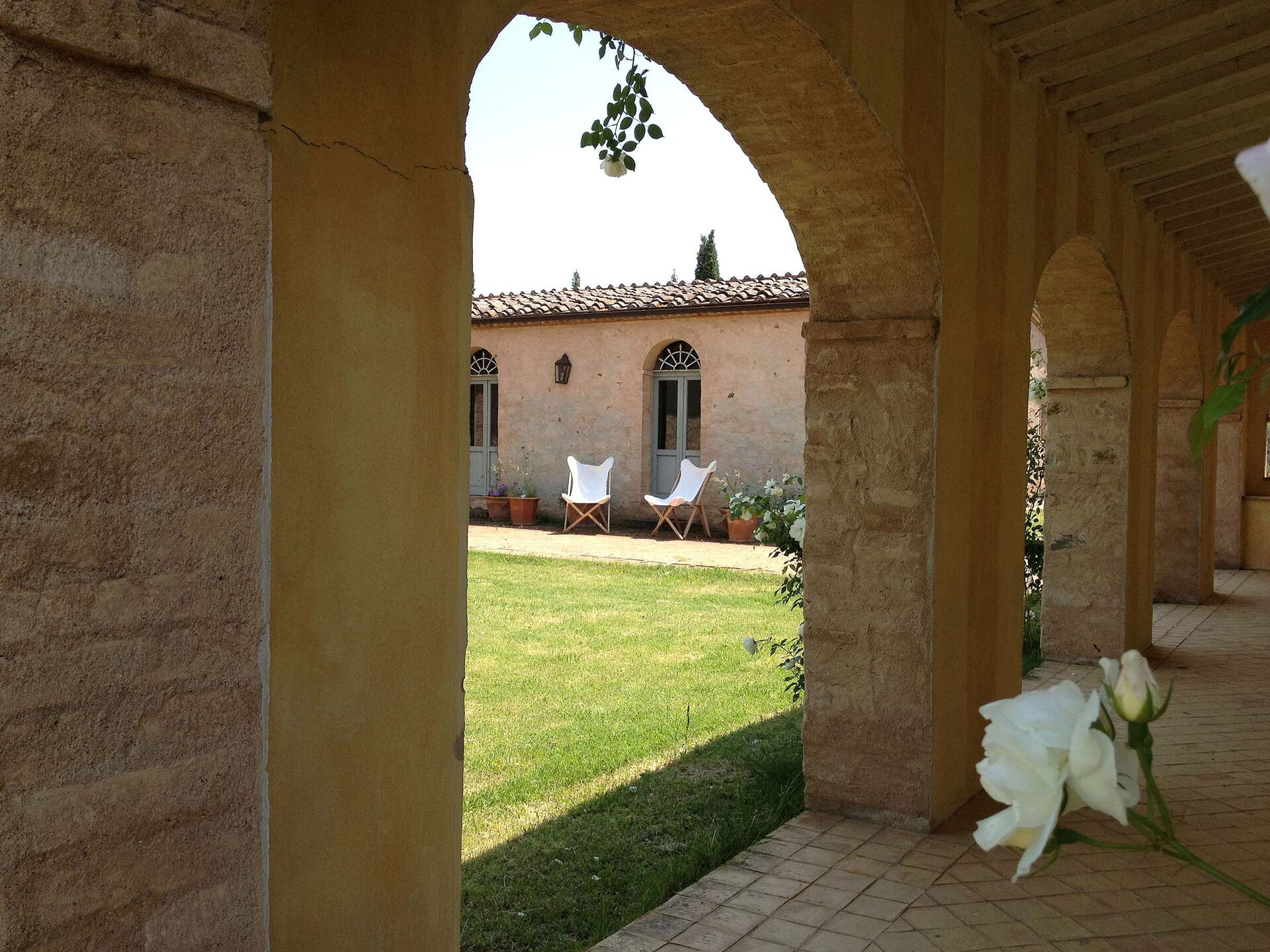 The views from the house are outstanding taking in the Val d’Orcia and Crete Senesi, considered by many as the most beautiful areas of Tuscany. The owner a renowned Italian Architect and Interior Designer restored the villa in total respect to the Tuscan tradition and furnished it with an impressive combination of furniture personally designed and some antiques ones. The property comprises the main Tuscan stone-built farmhouse and a bedroom with en-suite bathroom in the guesthouse. Other bedrooms with en-suite bathroom can be rented at extra cost sleeping up to 18 people. Lavacchio has been restored and furnished to high standard all the first floor bedrooms have air-conditioning and two other portable units are available on request.