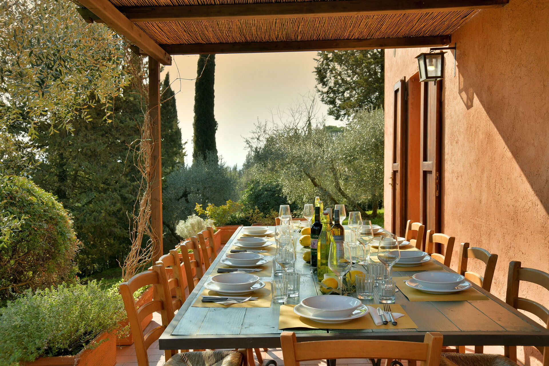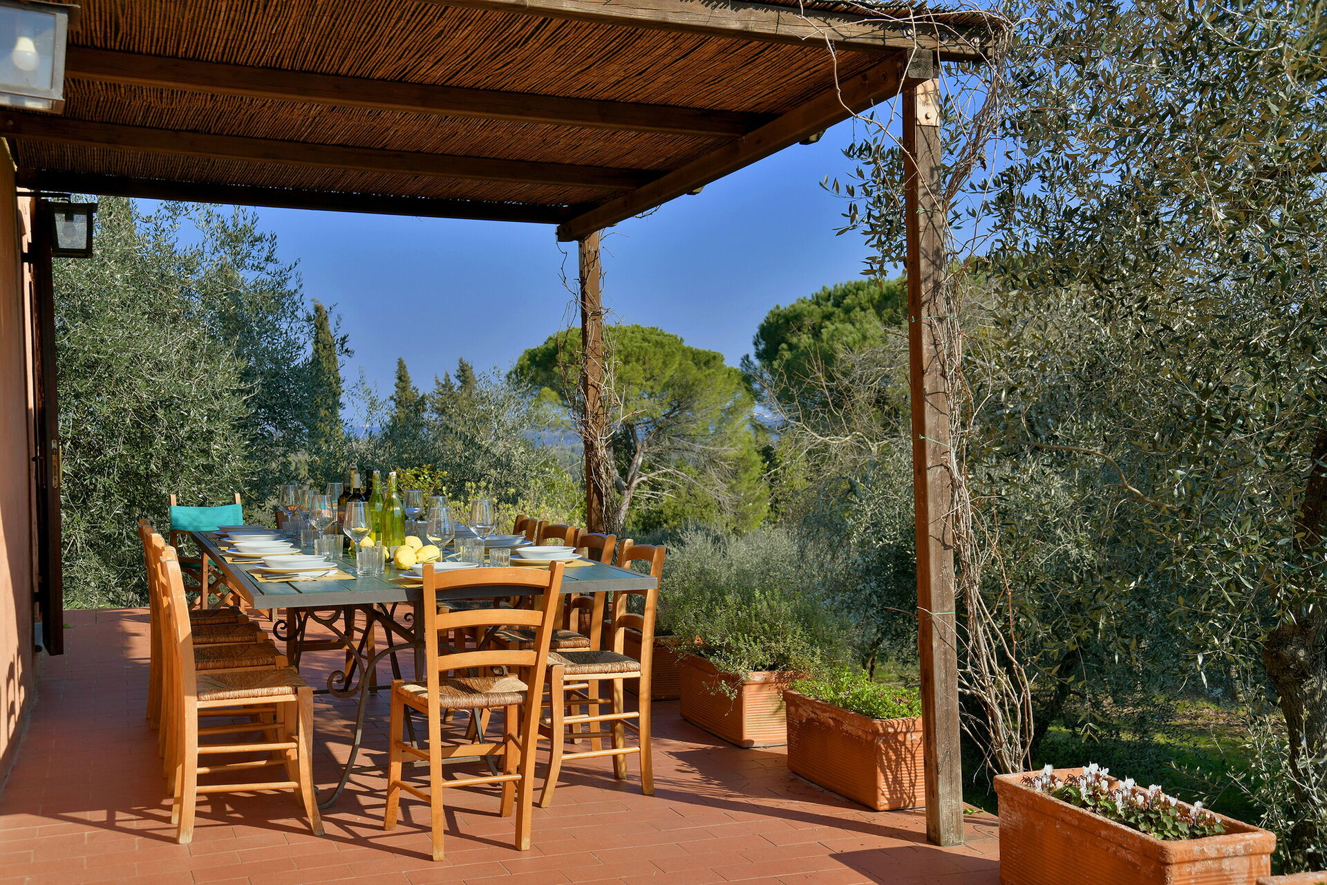 When you arrive at La Capanna you’ll find a beautiful clean well-maintained property with views of the hills ideal for a relaxing holiday in Tuscany. Regardless of how you spend your days - visiting museums, sightseeing, shopping or just driving in the countryside, when you arrive home you can relax with your family and friends at the pool for a perfect ending to another day in Tuscany. Dining with friends and family is a big part of the Tuscan culture. Take advantage of the well-equipped kitchen to prepare meals using local produce while on your vacation. The kitchen includes coffee machine, toaster, stove and refrigerator, as well as, plenty of tableware and cutlery for up to 12 people. Dine 'al fresco' like a real Tuscan, the fully furnished veranda is the perfect setting to enjoy food, family and the beautiful Tuscan weather.