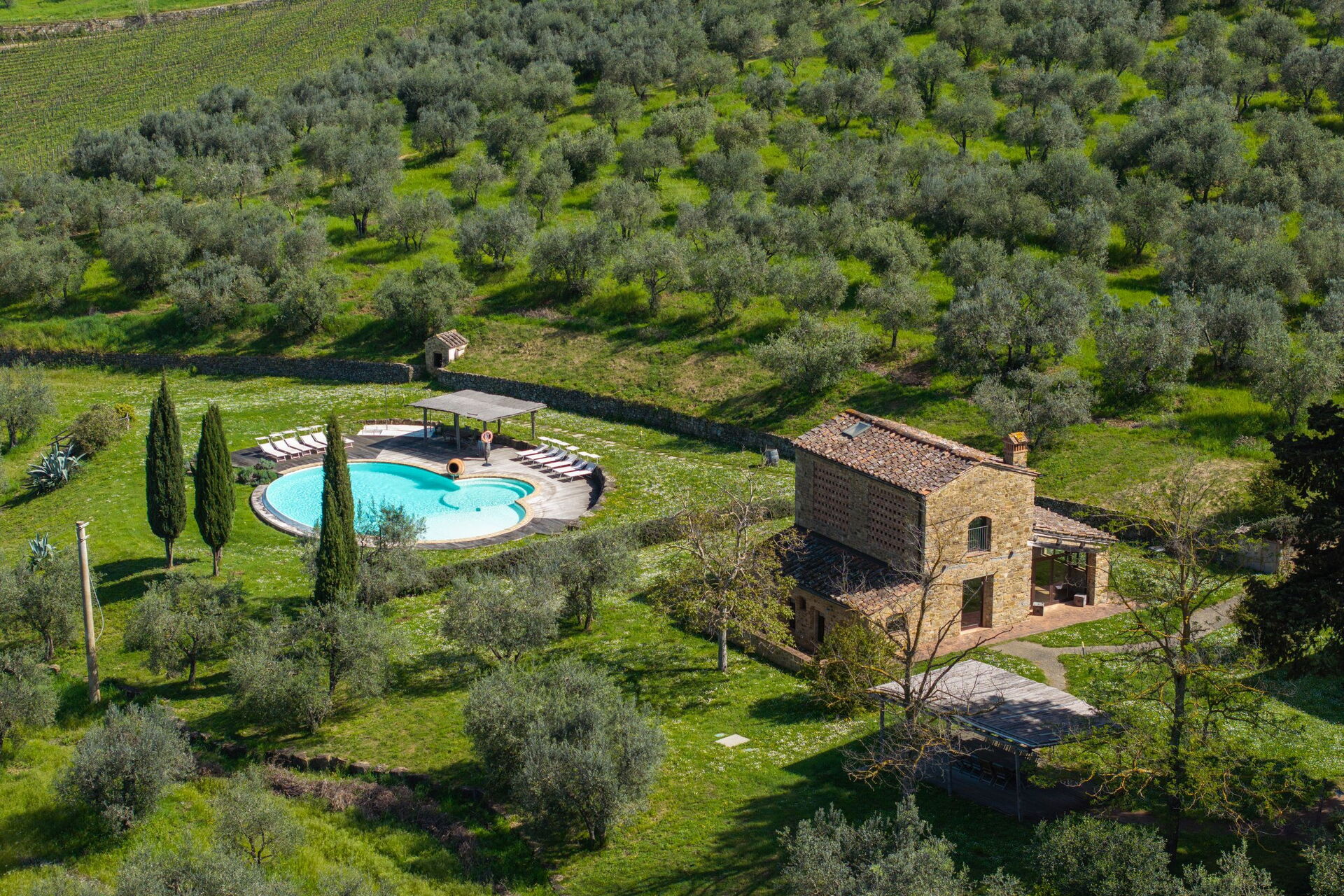 The house's central location is convenient for visiting Tuscany's most important places of interest such as Siena, Florence, San Gimignano and the entire Chianti area with its characteristic villages (Castellina, Greve, Radda, Gaiole, etc.).