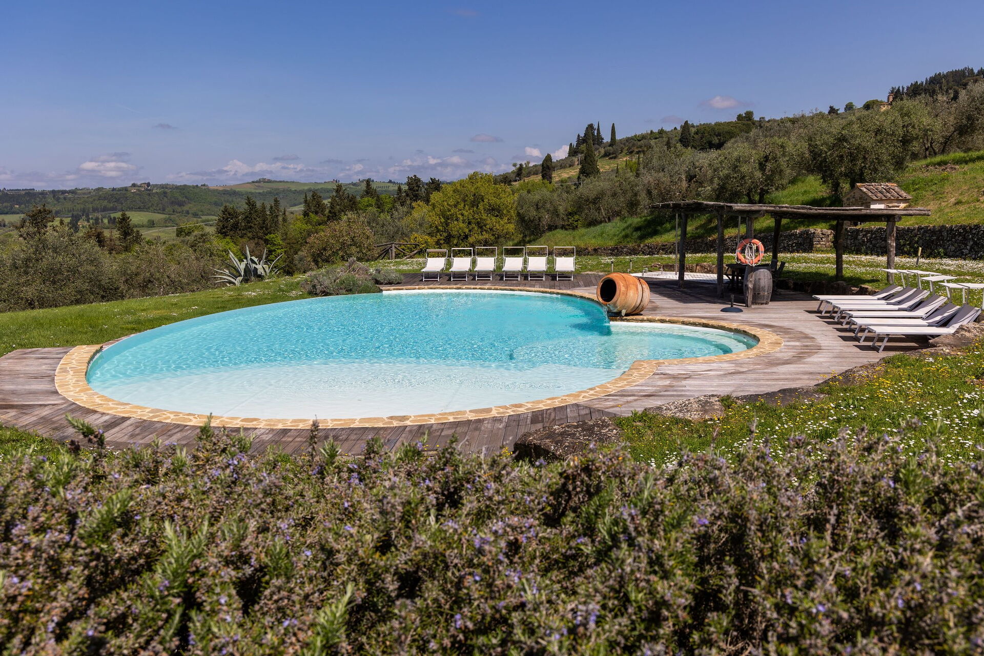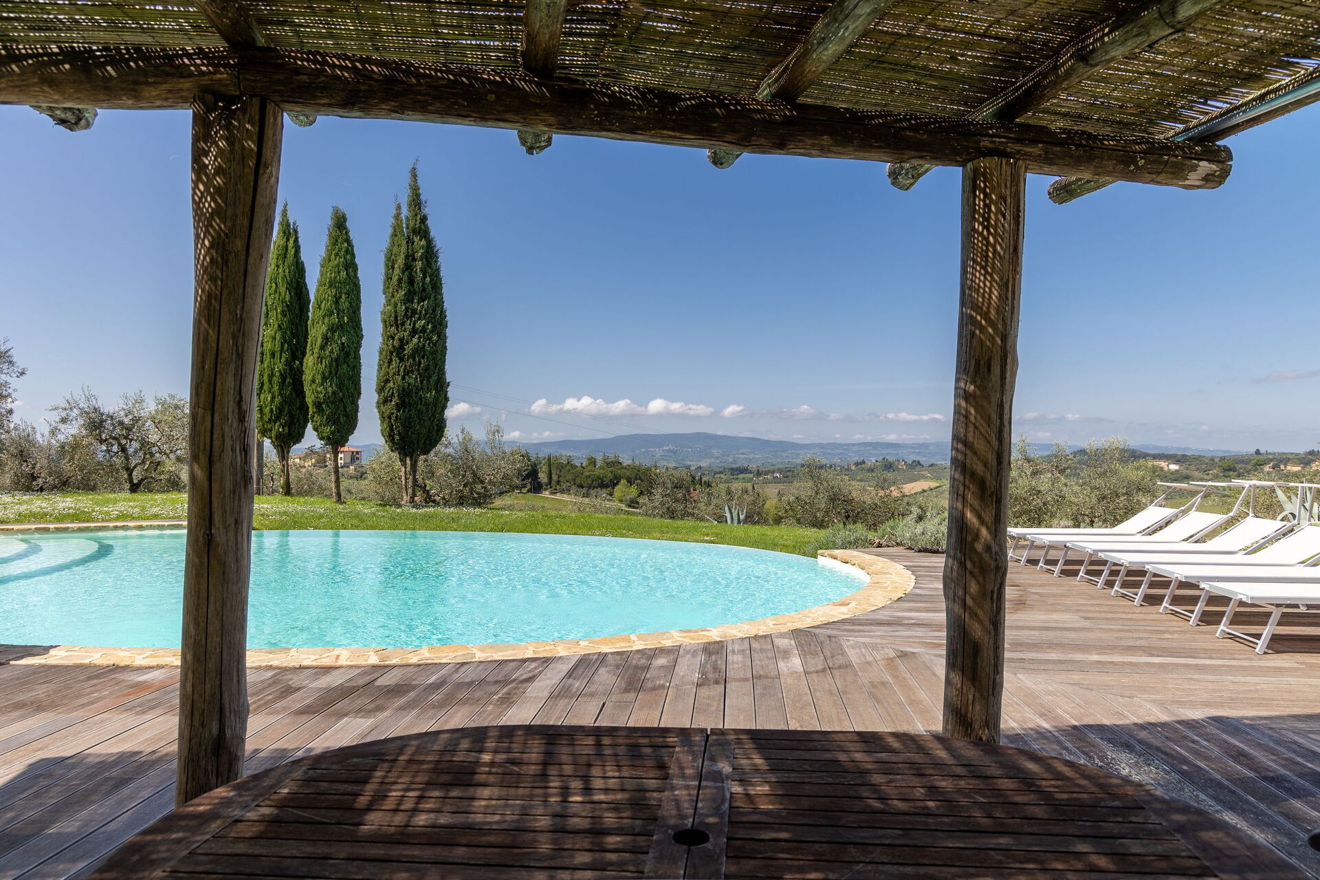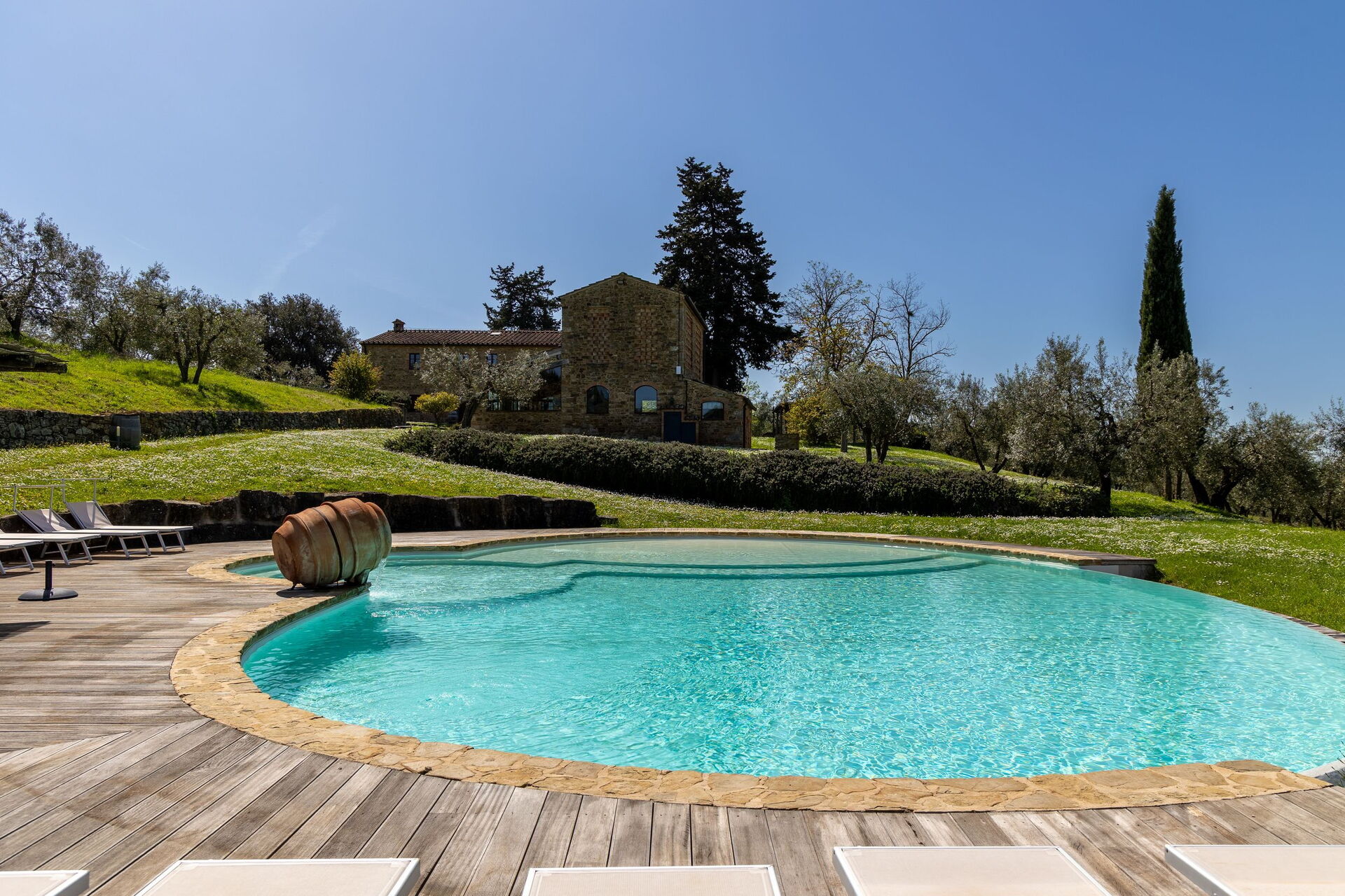 Beautiful independent villa with pool, strategically located halfway between Florence and Siena. The property has been furnished with exceptional taste and attention to detail. Outside there is a large, well-tended garden with a beautiful pool with panoramic views.