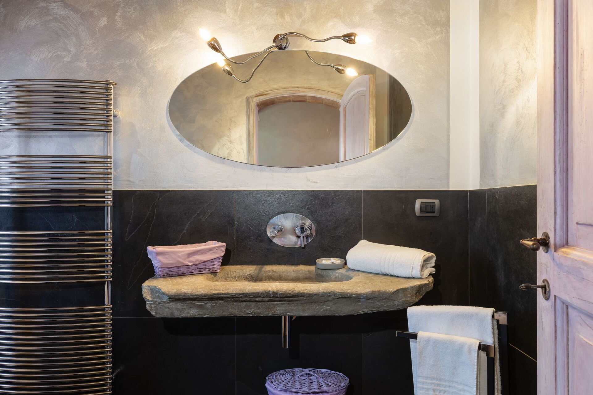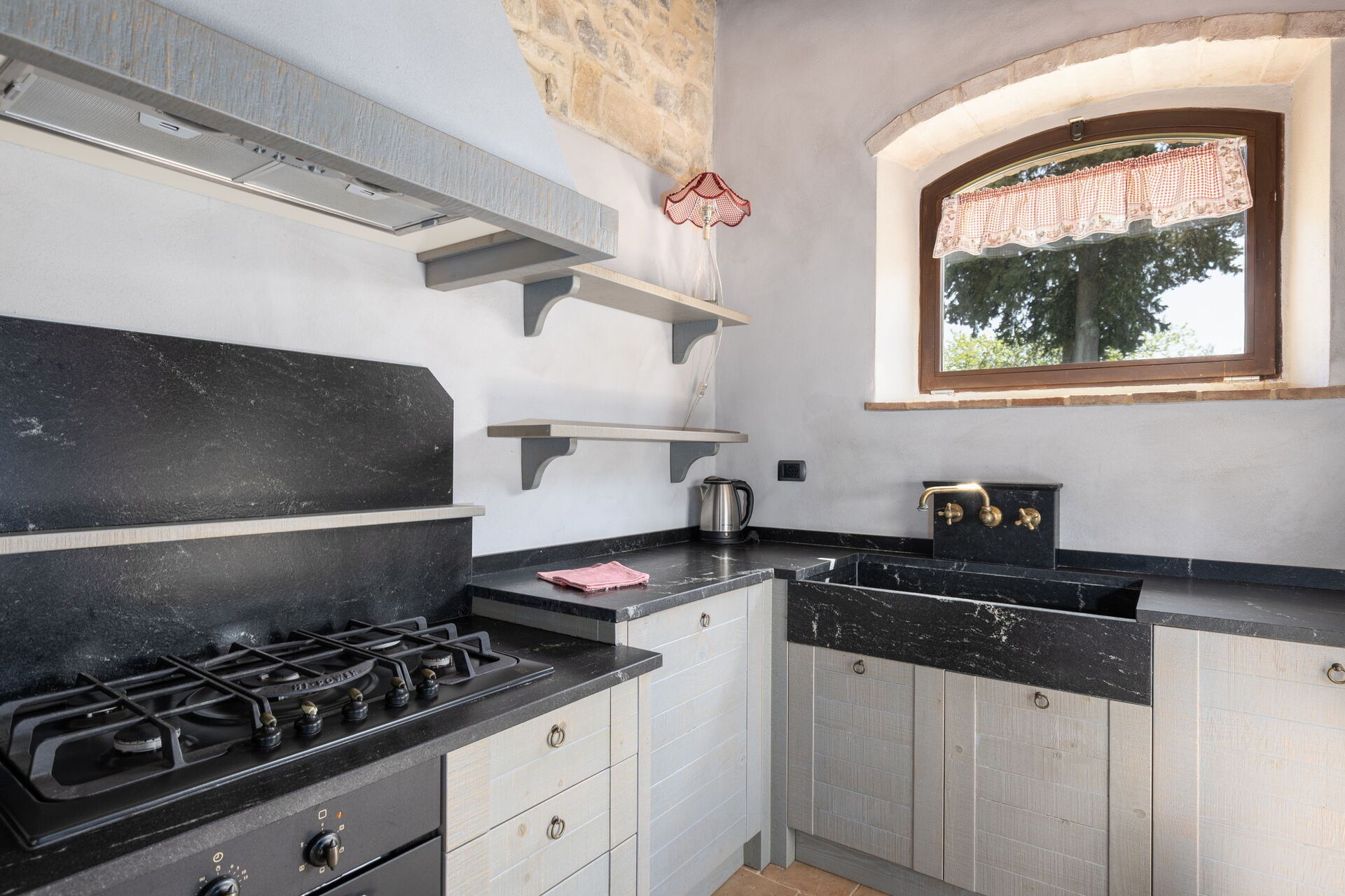 The villa, equipped with all comforts, is composed of a main house and guest house, sleeping a total of up to 12 people. The property is surrounded by vineyards and olive groves, from which the owners produce wine and olive oil (guests will be offered a tasting in the estate's cellars).
