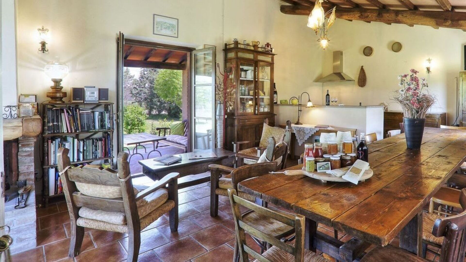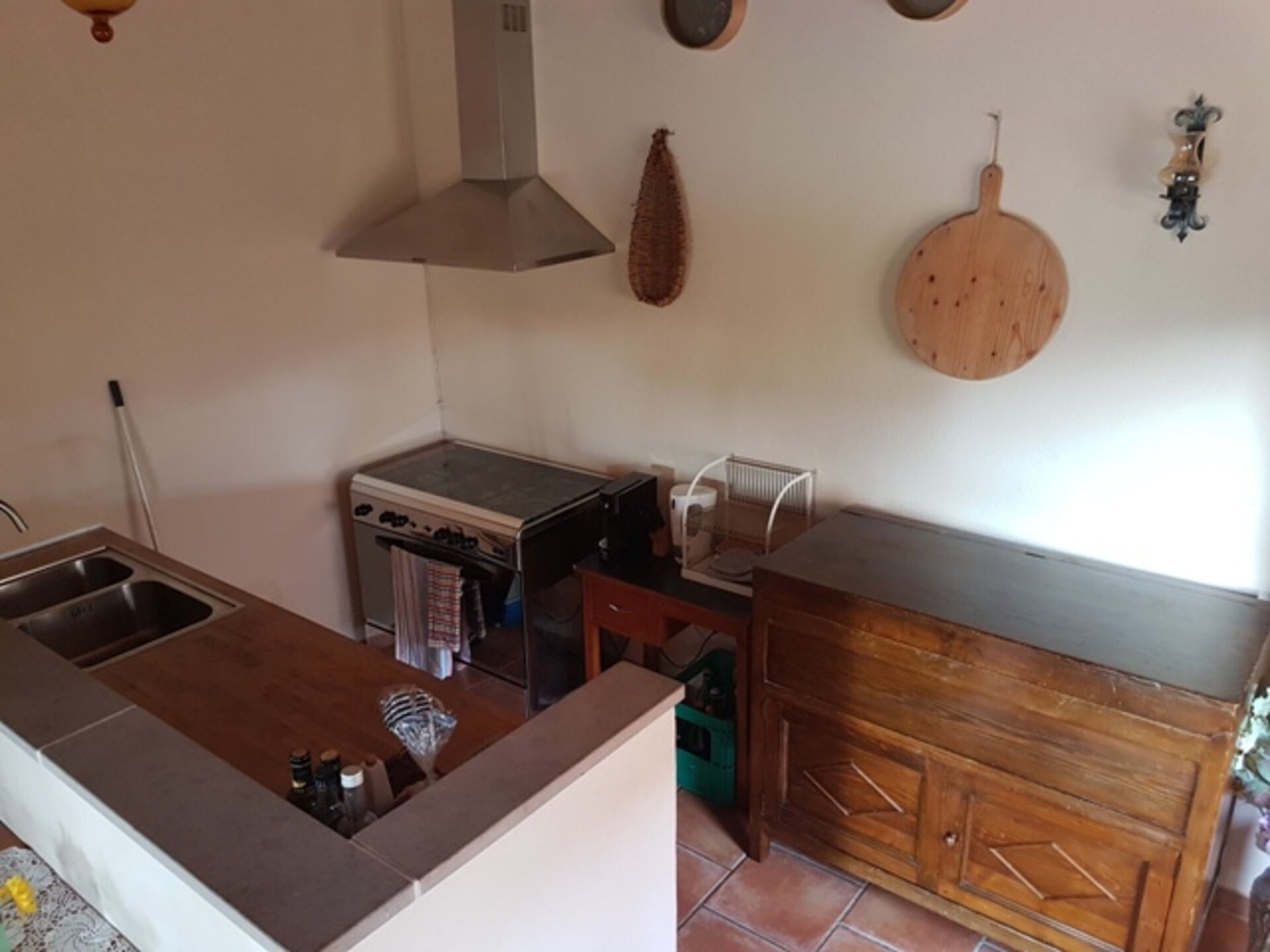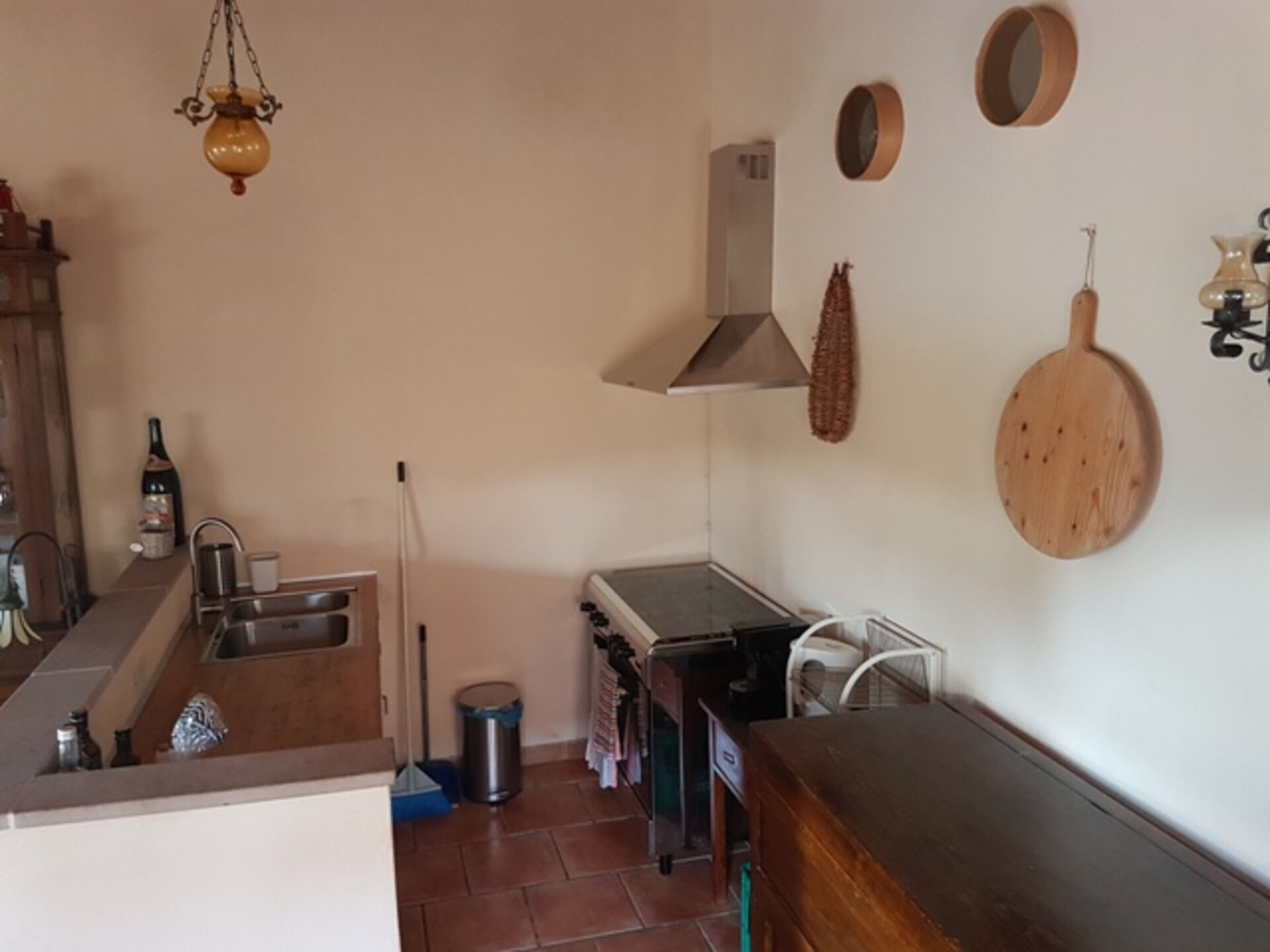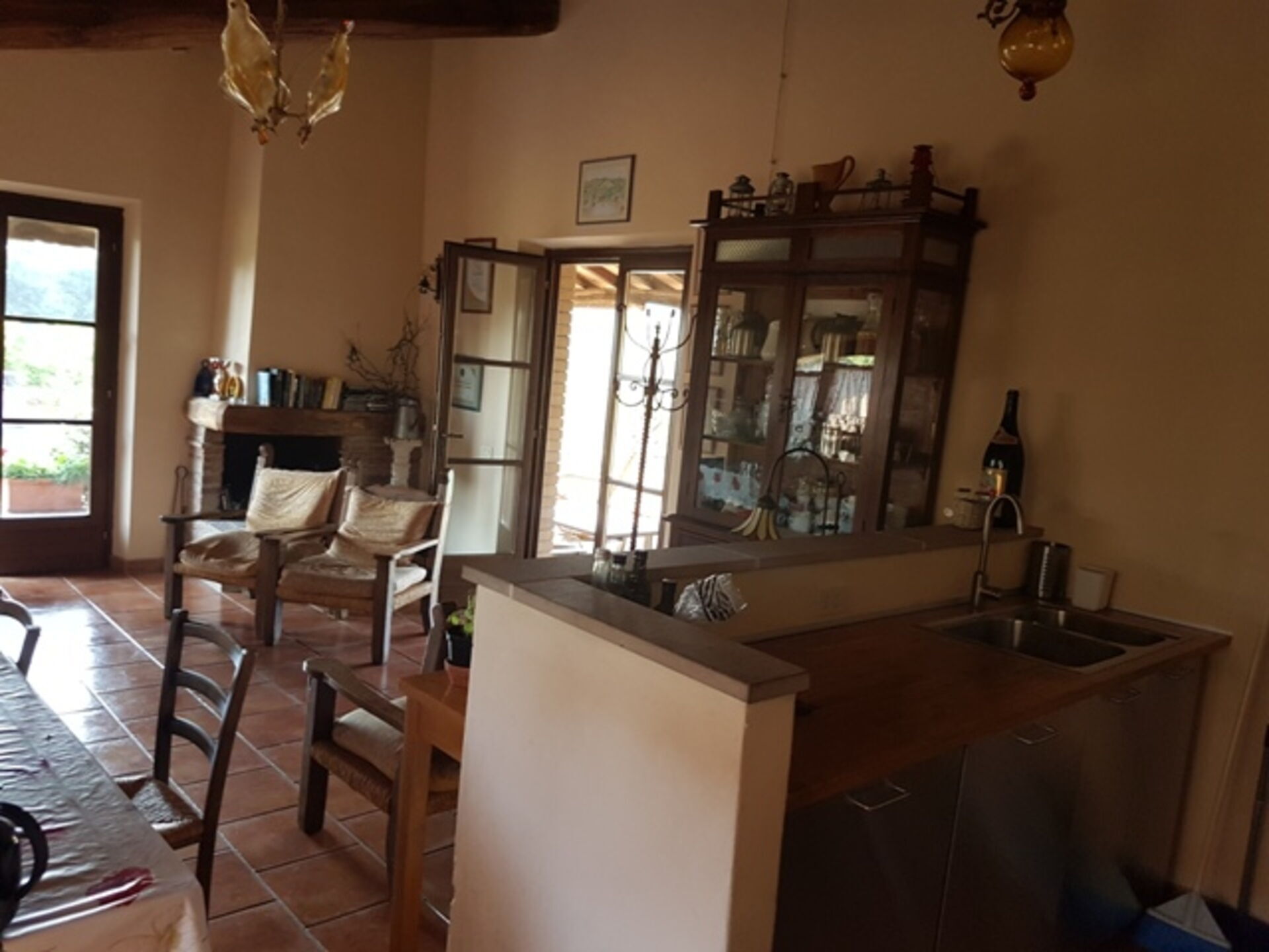 Kitchen + living room (30 m2): well equipped kitchen, dining table, dishwasher, two fridges, stove top, oven, three armchairs, fireplace, satellite tv, exit to the garden, exit to the veranda.