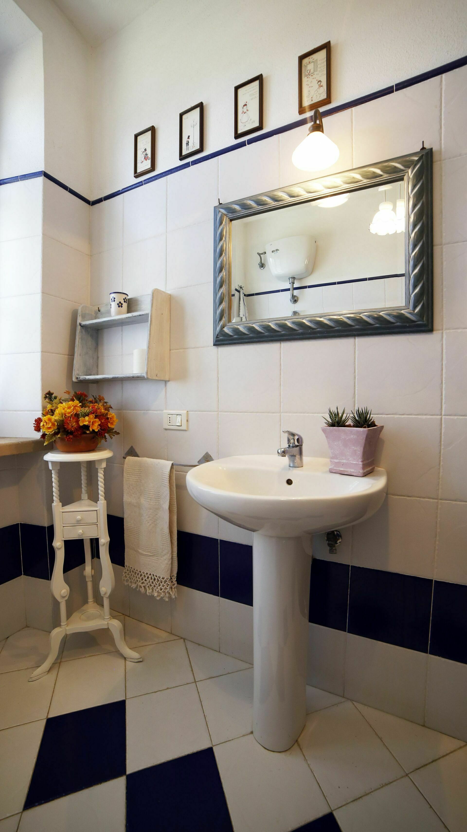 Bathroom: basin, toilet, shower.