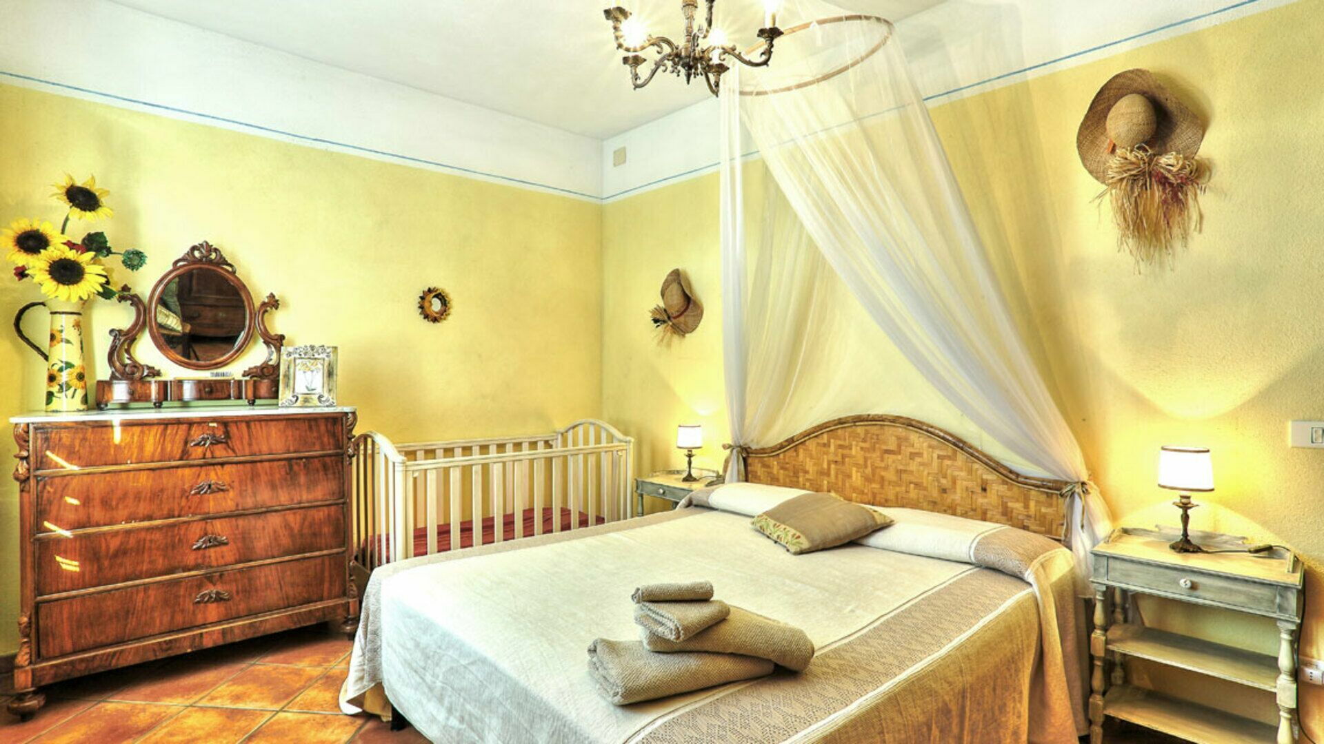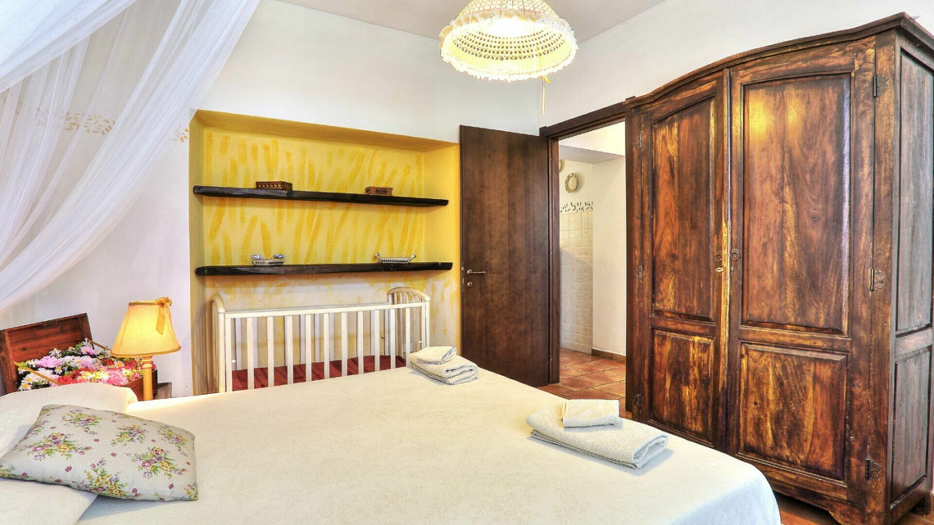 Bedroom 4: double bed, baby crib.
