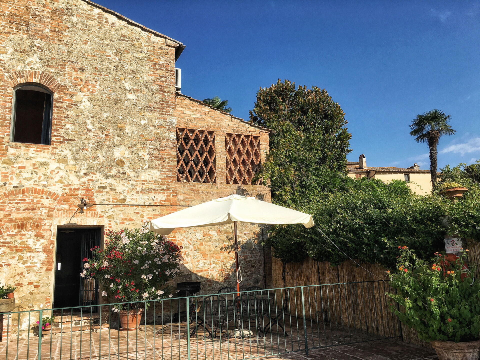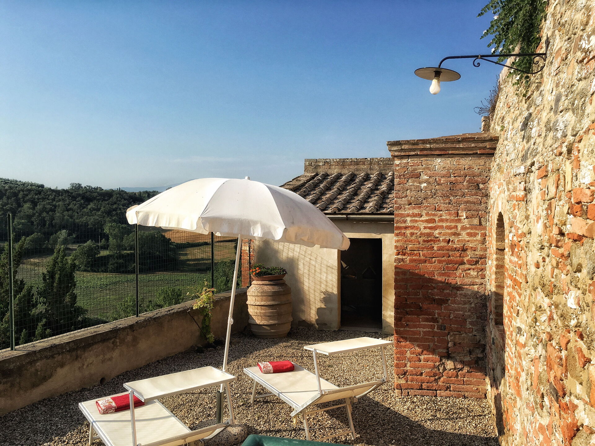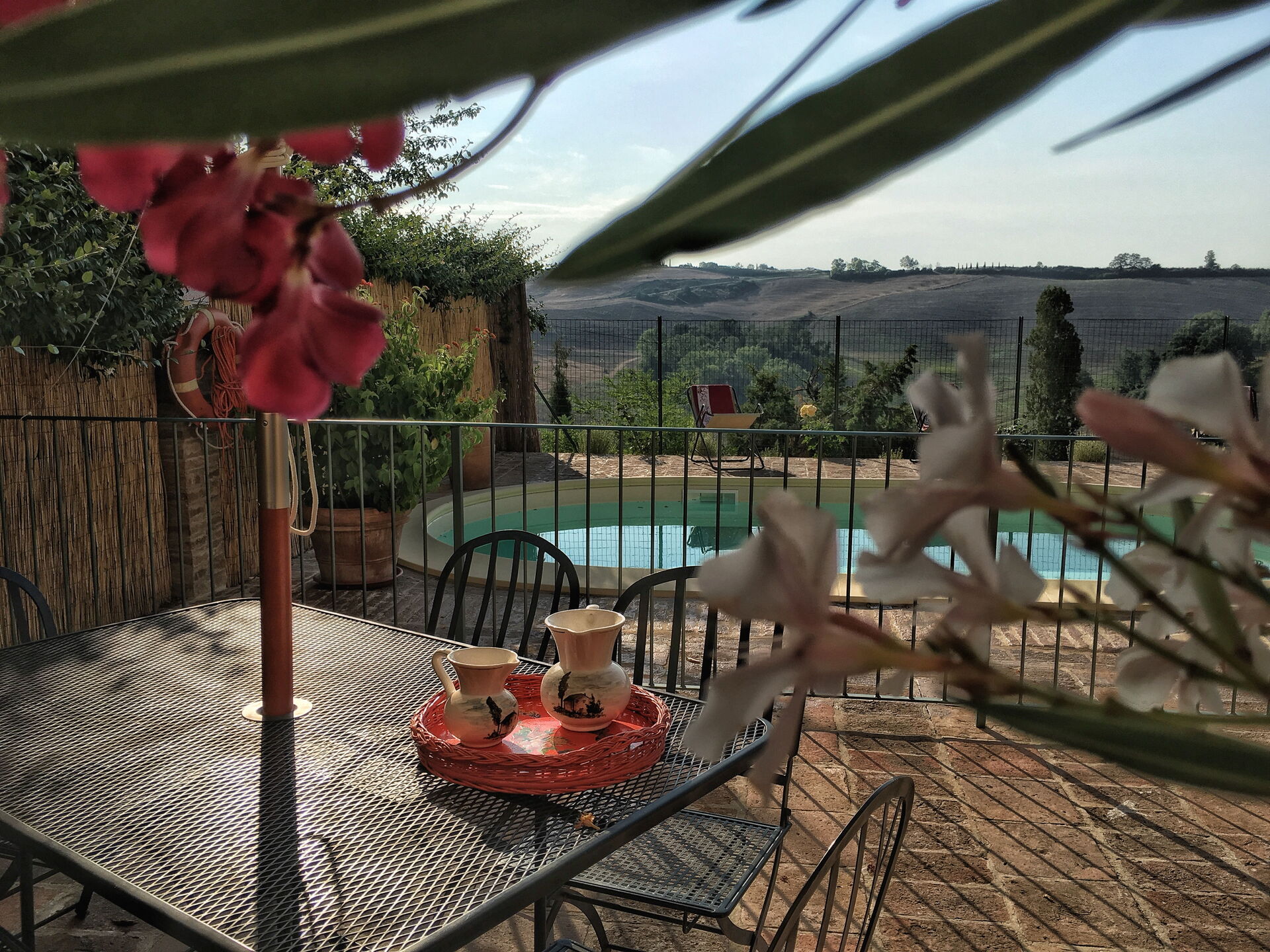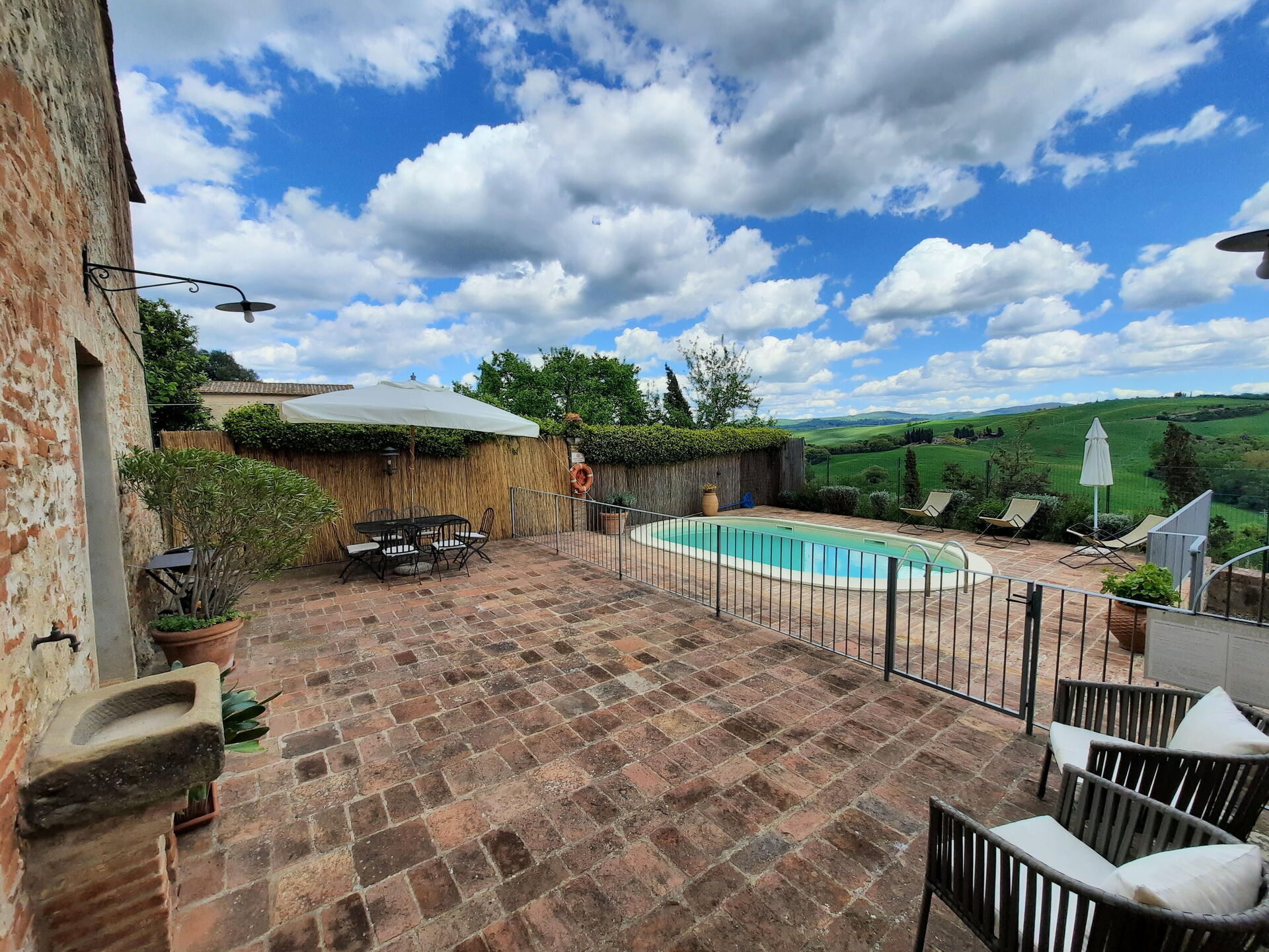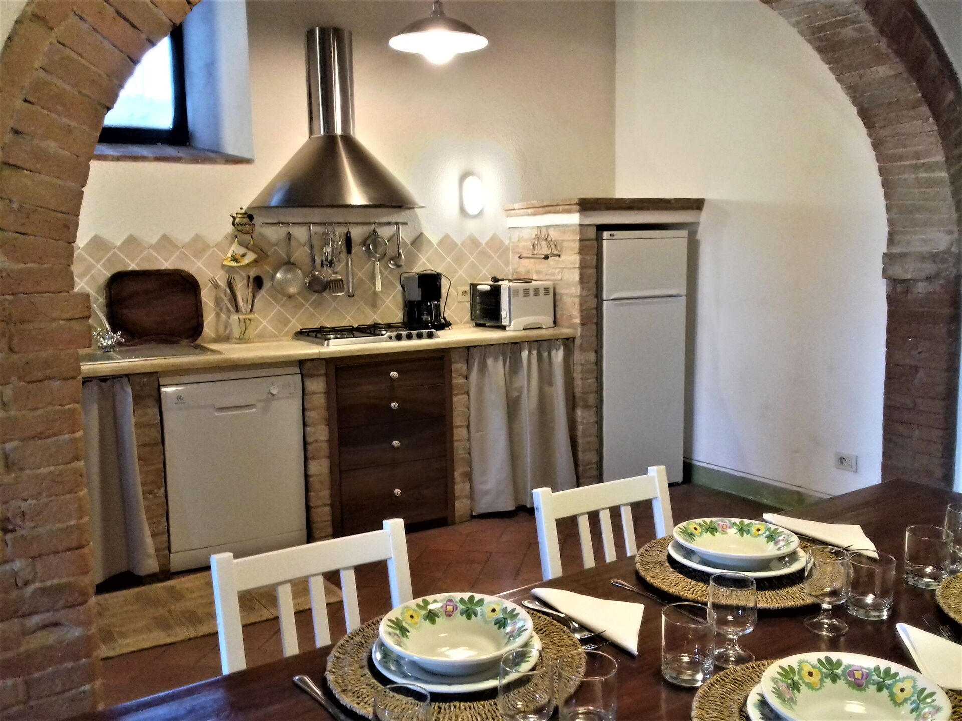After arriving at Casa Le Crete you’ll find a nice clean well-maintained property with views of the hills perfect for a splendid vacation in Tuscany. After a hectic day of visiting museums, spend some time with friends and family poolside enjoying a glass of wine - a perfect way to unwind at the end the day. For your pleasure, on the grounds there is a patio and barbecue grill. If you enjoy cooking for family and friends there is a well-equipped kitchen including coffee machine, toaster, stove and refrigerator, as well as, plenty of tableware and cutlery for up to five people. If you prefer to dine 'al fresco', there is a fully furnished patio where you can enjoy the weather while dining outdoors.