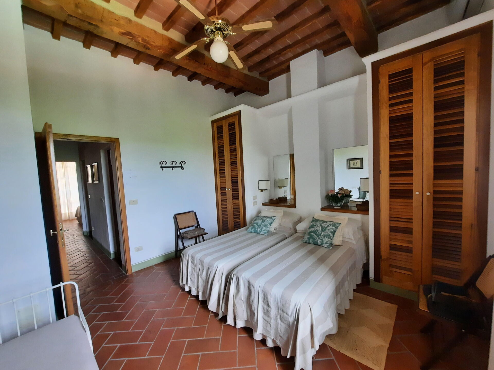 Bedroom 1: double bed (length: 2.1m, width: 1.8m), internet, air conditioning, ceiling fan, armchair.
