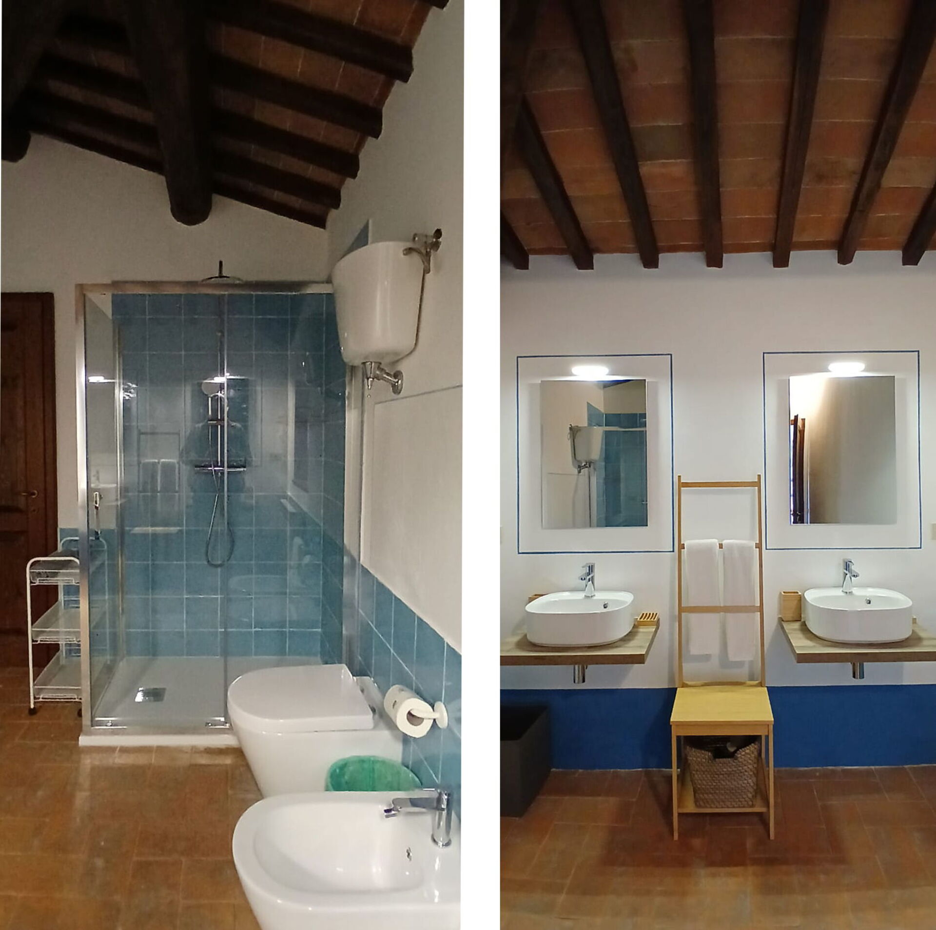 Bedroom + Ensuite Bathroom: double bed, WIFI internet, portable fan, three armchairs, double basin, toilet, bidet, shower, hairdryer.