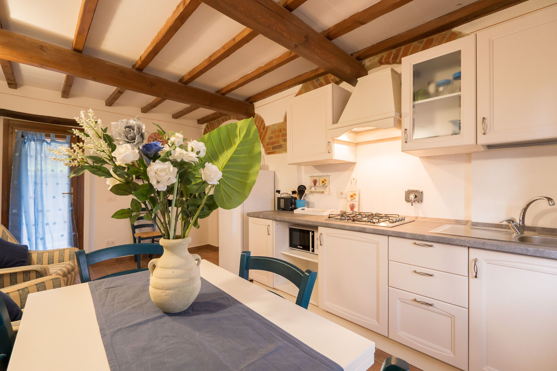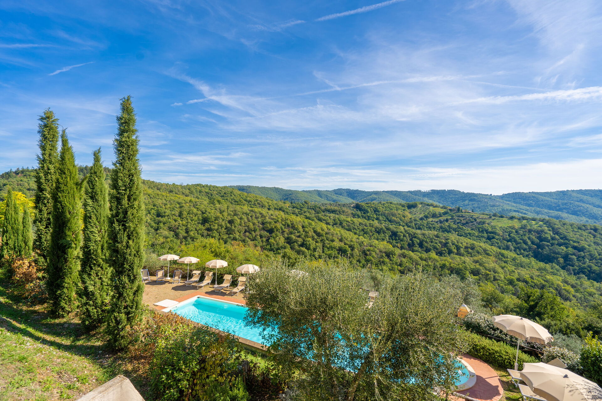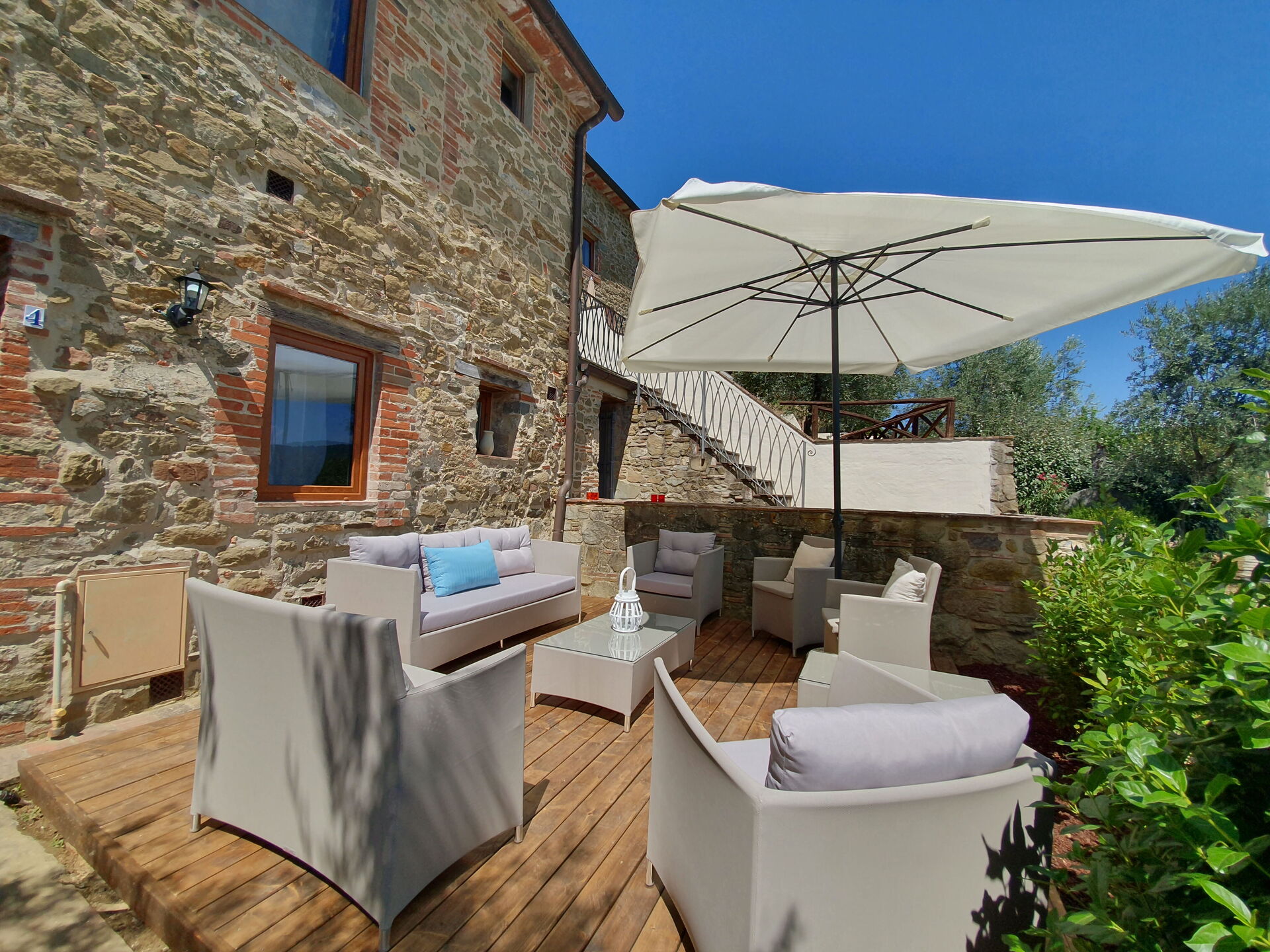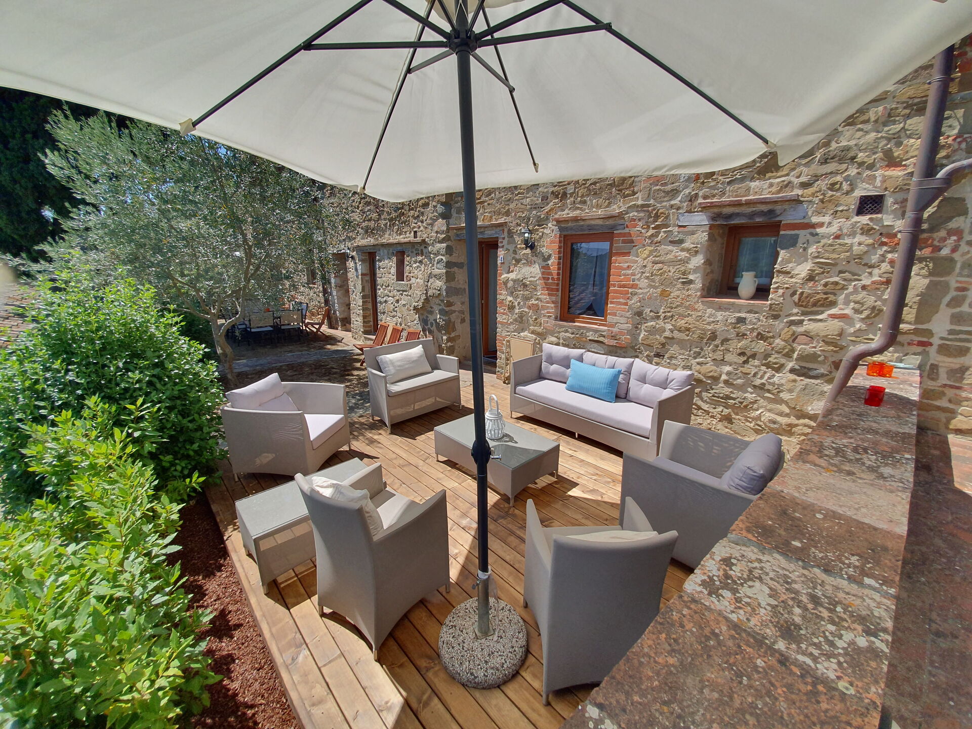 When you arrive you will be greeted by the owner or manager where you’ll find a lovely clean well-maintained property with views of the hills perfect for a peaceful holiday in Tuscany. Regardless of how you spend your days - visiting museums, sightseeing, shopping or just driving in the countryside, when you arrive home you can relax with your family and friends at the pool for a perfect ending to another day in Tuscany. Dining with friends and family is a huge part of the Tuscan culture. Take advantage of the well-equipped kitchen to prepare meals using local produce while on your holiday. The kitchen includes coffee machine, microwave, toaster and refrigerator, as well as, plenty of tableware and cutlery for up to 22 people. Dine 'al fresco' like a real Tuscan, the fully furnished is the ideal setting to enjoy food, family and the beautiful Tuscan weather.