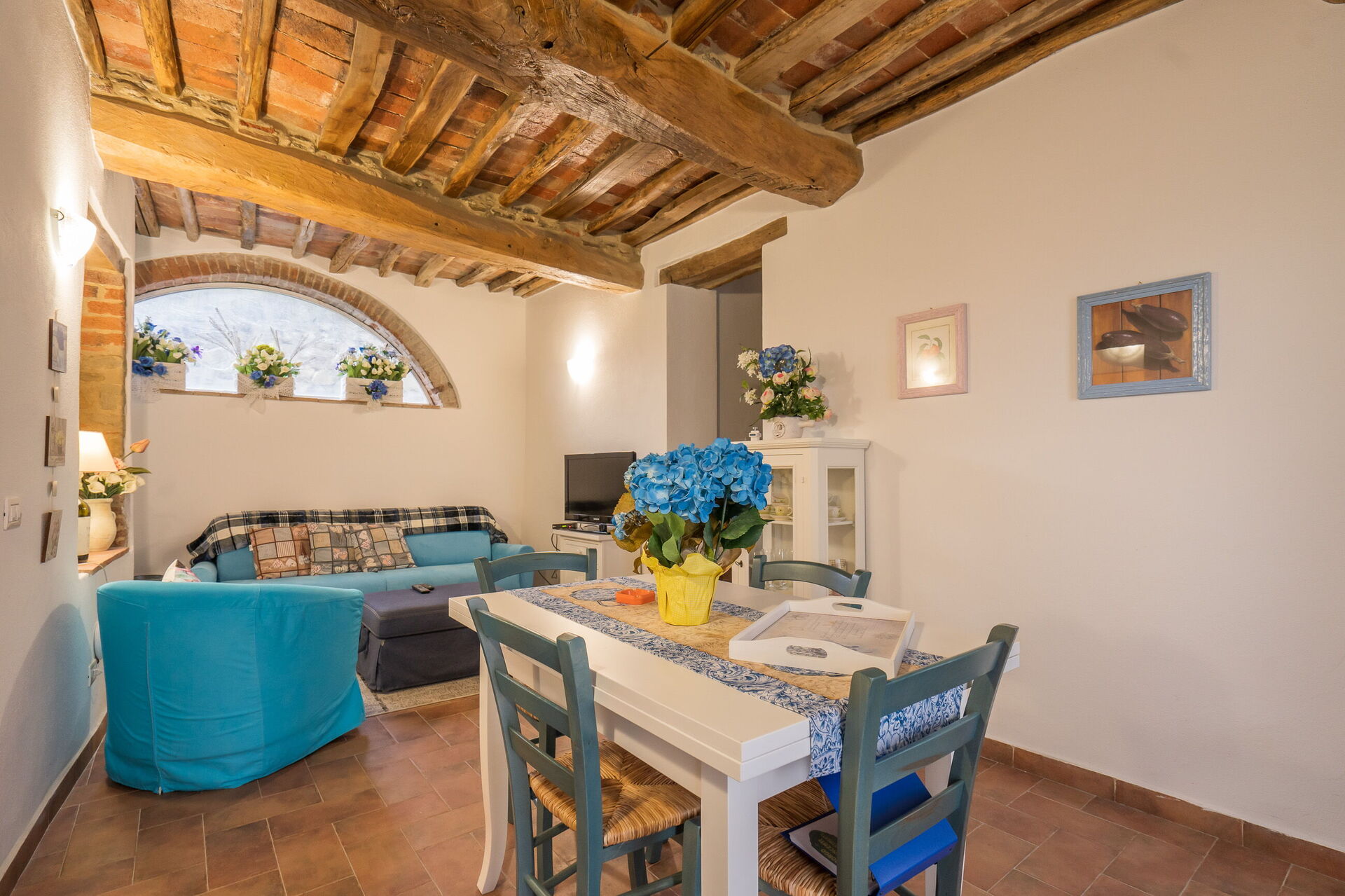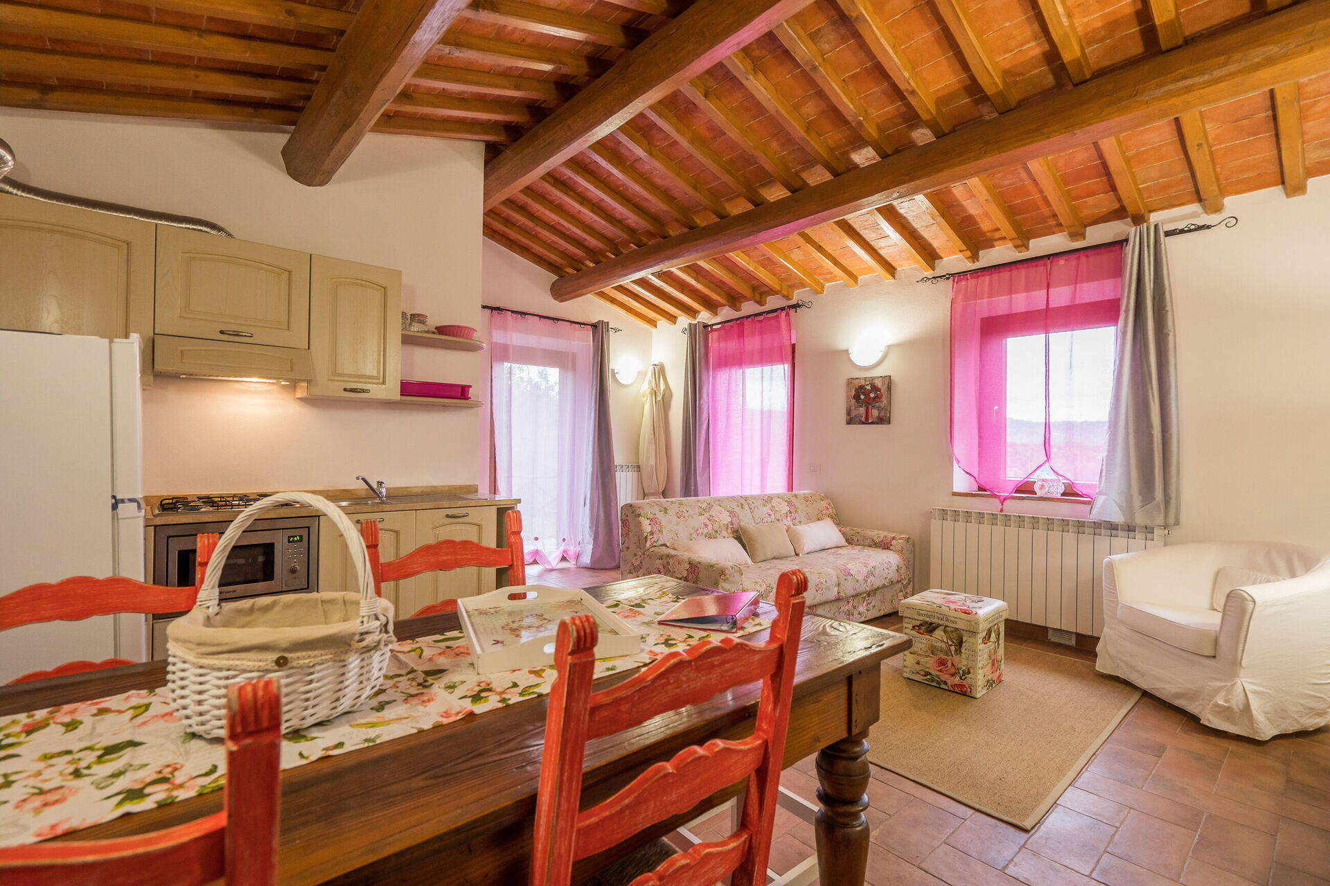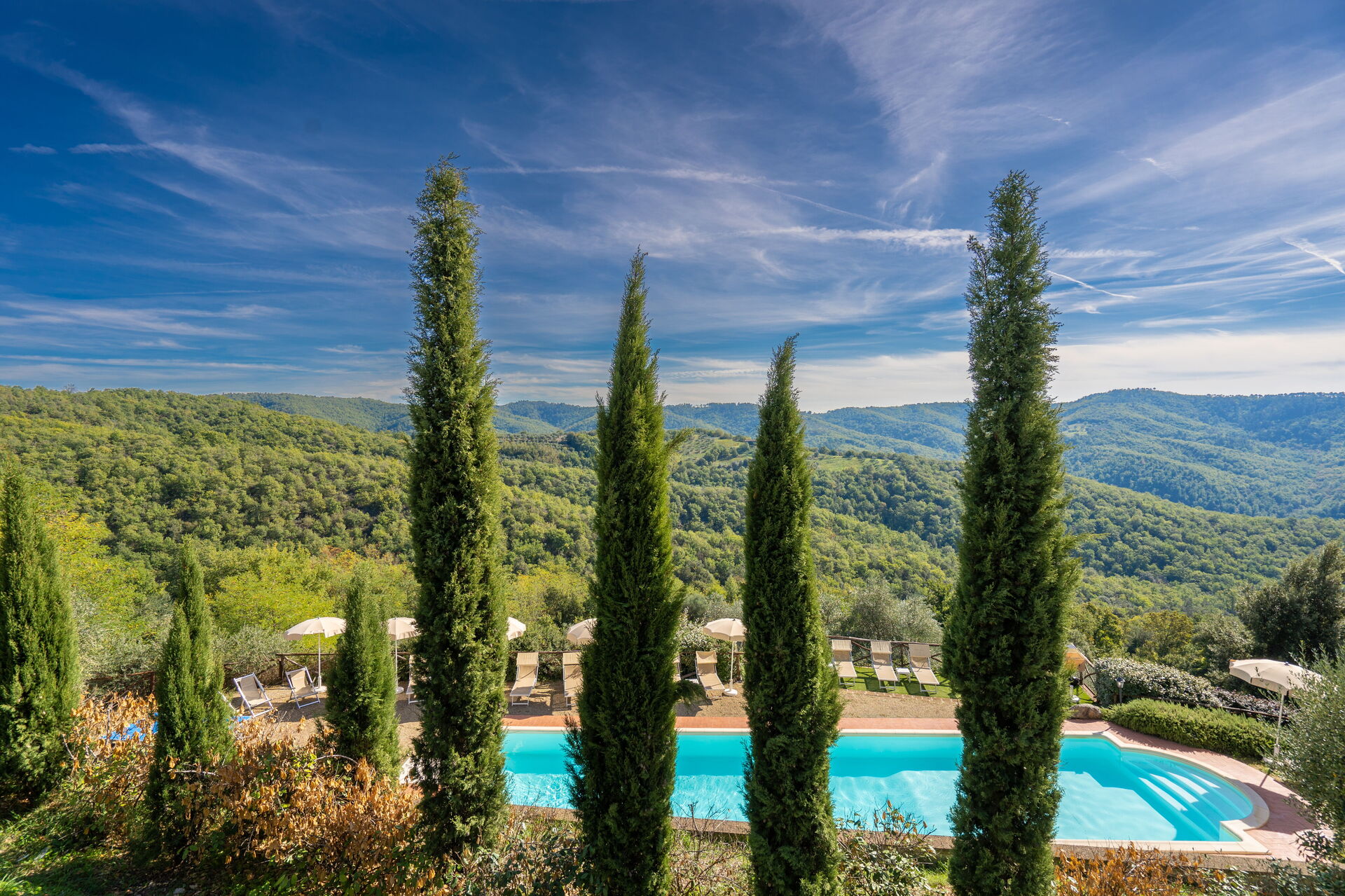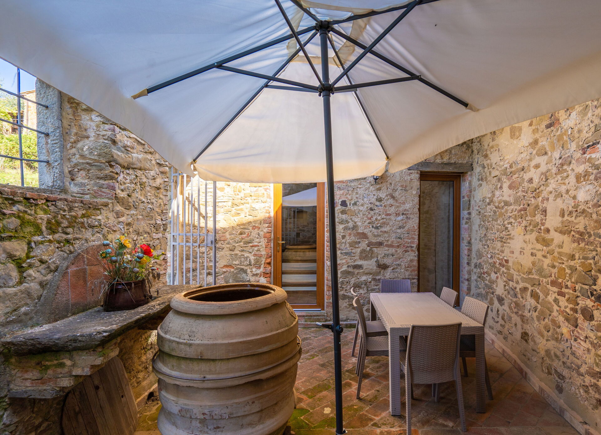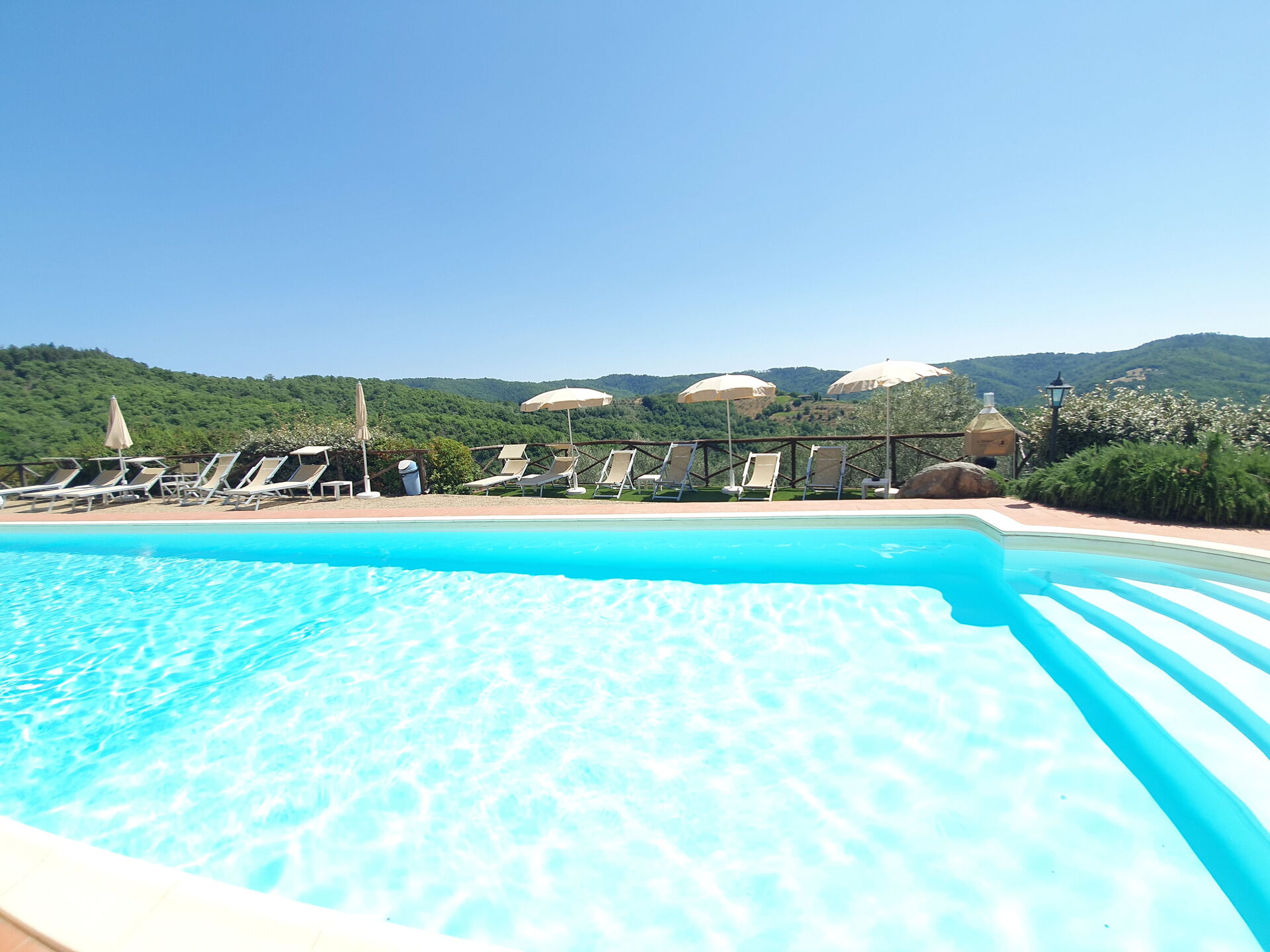 When you arrive you will be greeted by the owner or manager where you’ll find a lovely clean well-maintained property with views of the hills perfect for a peaceful holiday in Tuscany. Regardless of how you spend your days - visiting museums, sightseeing, shopping or just driving in the countryside, when you arrive home you can relax with your family and friends at the pool for a perfect ending to another day in Tuscany. Dining with friends and family is a huge part of the Tuscan culture. Take advantage of the well-equipped kitchen to prepare meals using local produce while on your holiday. The kitchen includes coffee machine, microwave, toaster and refrigerator, as well as, plenty of tableware and cutlery for up to 22 people. Dine 'al fresco' like a real Tuscan, the fully furnished is the ideal setting to enjoy food, family and the beautiful Tuscan weather.