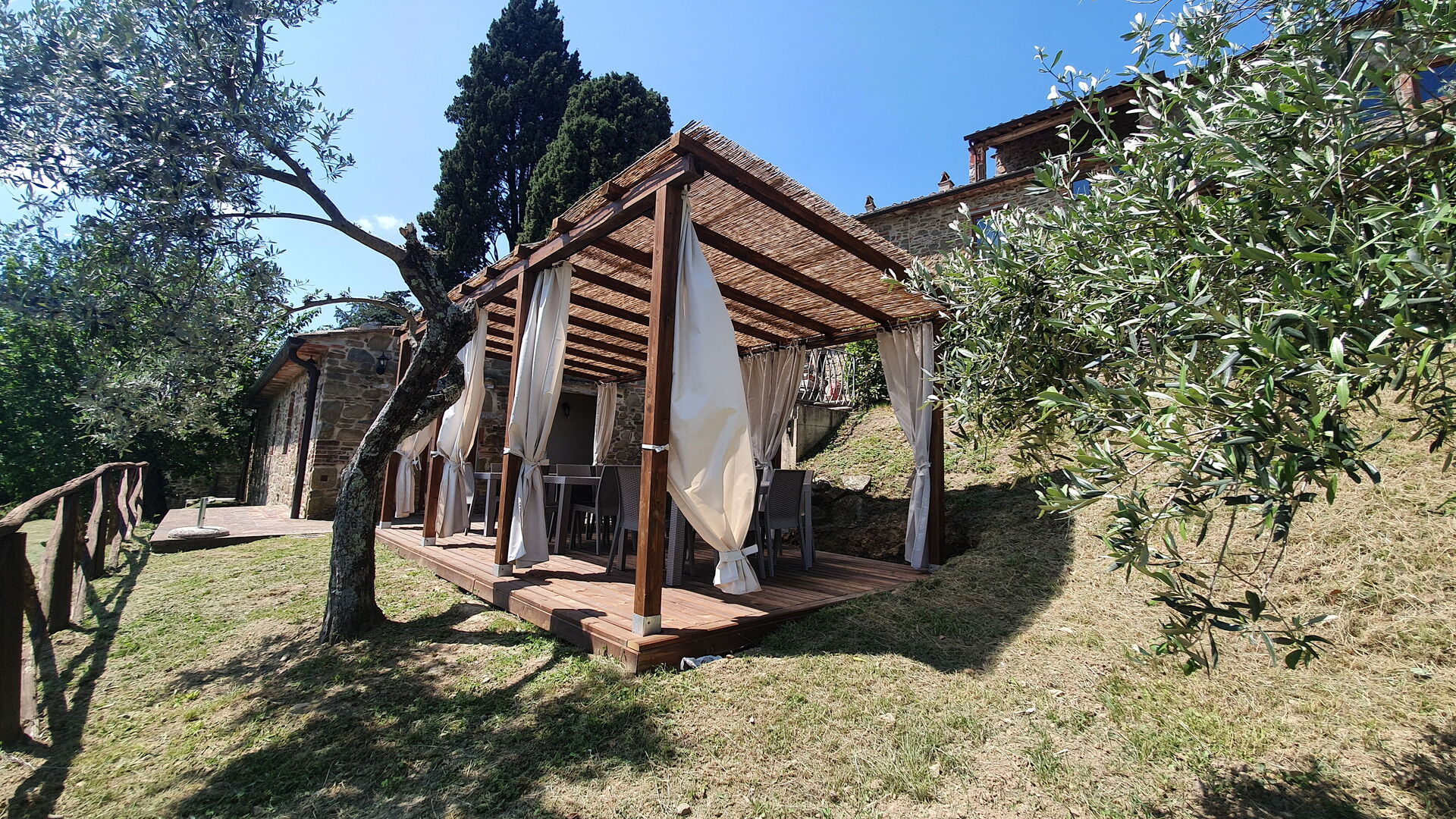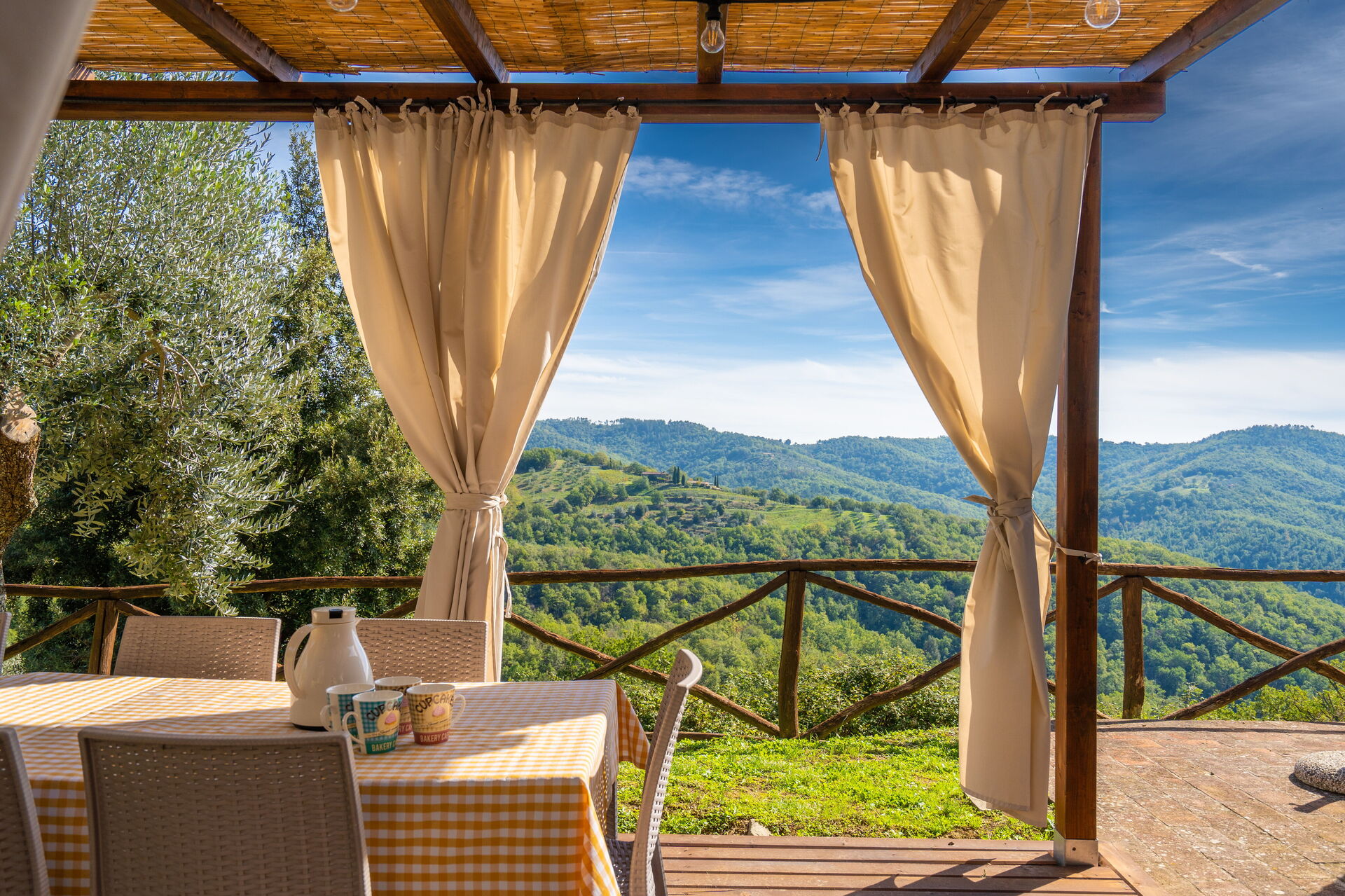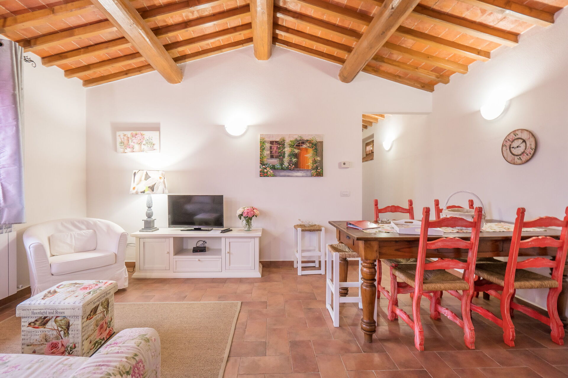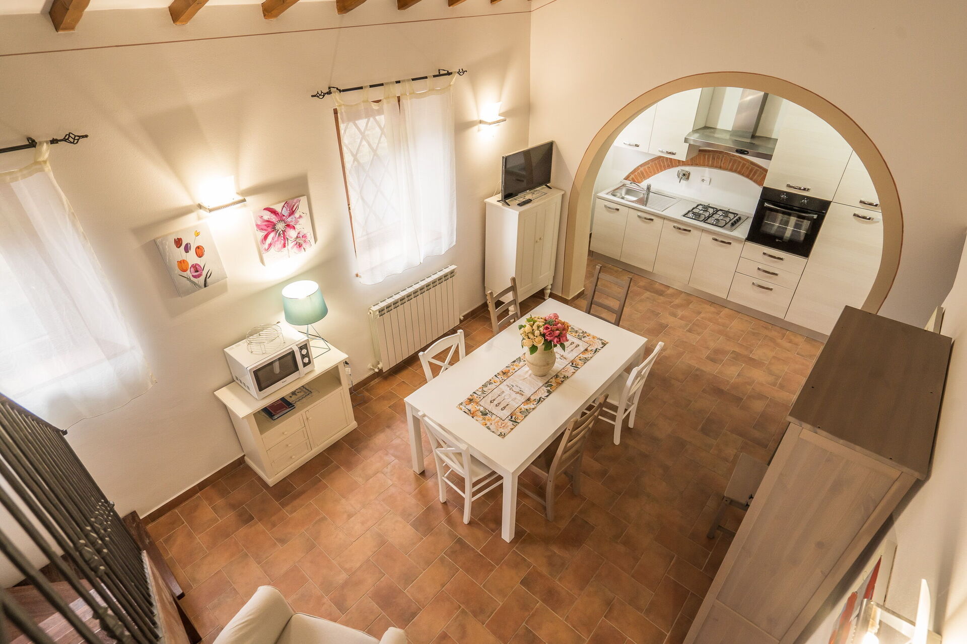 When you arrive you will be greeted by the owner or manager where you’ll find a lovely clean well-maintained property with views of the hills perfect for a peaceful holiday in Tuscany. Regardless of how you spend your days - visiting museums, sightseeing, shopping or just driving in the countryside, when you arrive home you can relax with your family and friends at the pool for a perfect ending to another day in Tuscany. Dining with friends and family is a huge part of the Tuscan culture. Take advantage of the well-equipped kitchen to prepare meals using local produce while on your holiday. The kitchen includes coffee machine, microwave, toaster and refrigerator, as well as, plenty of tableware and cutlery for up to 22 people. Dine 'al fresco' like a real Tuscan, the fully furnished is the ideal setting to enjoy food, family and the beautiful Tuscan weather.