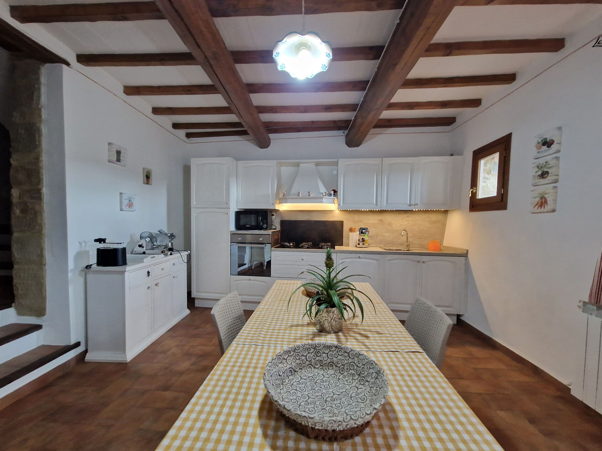 Kitchen 4: well equipped kitchen, dining table (people: 4), dishwasher, fridge, microwave, american coffee machine, WIFI internet, satellite tv, portable fan, exit to the patio.