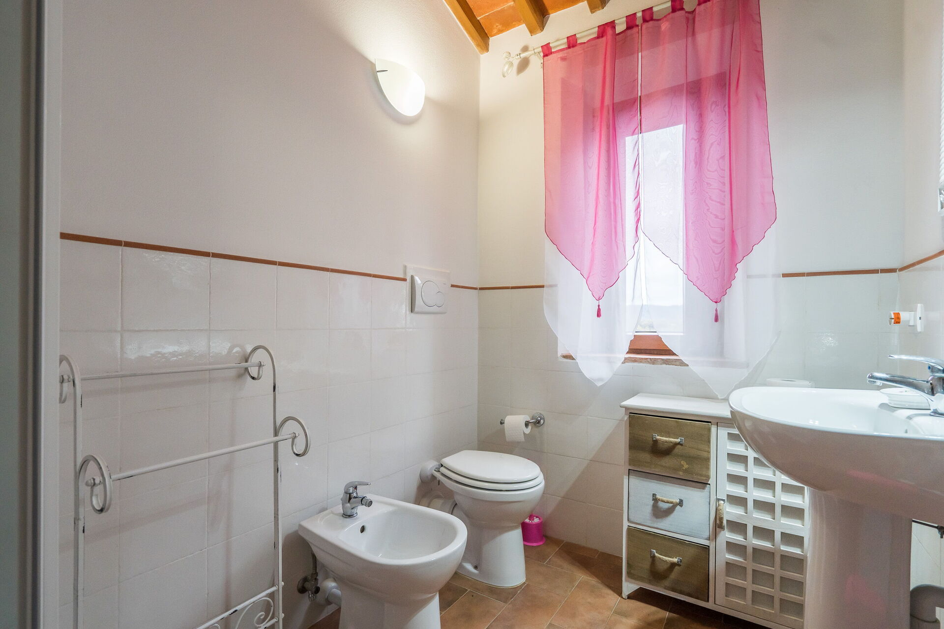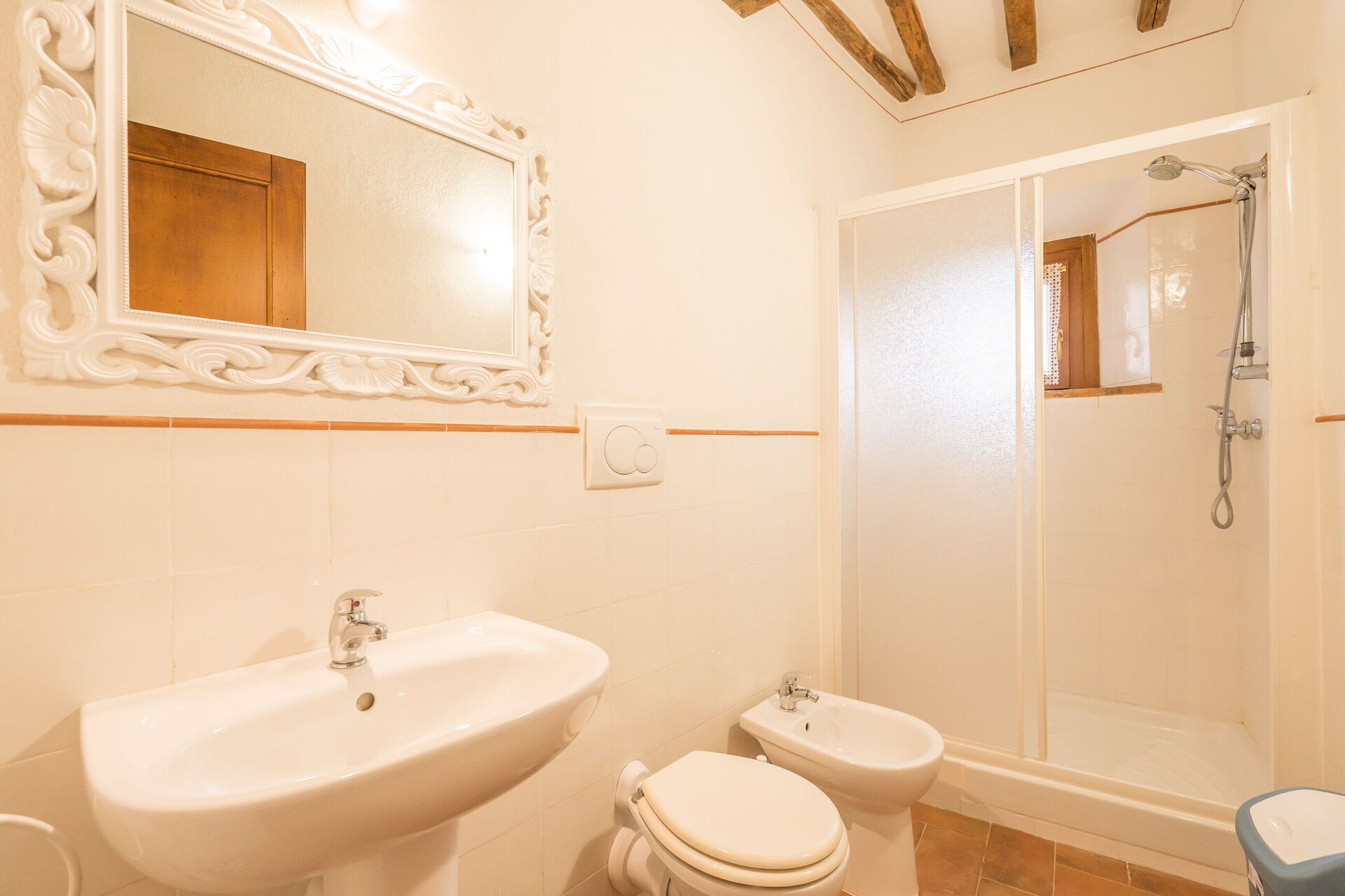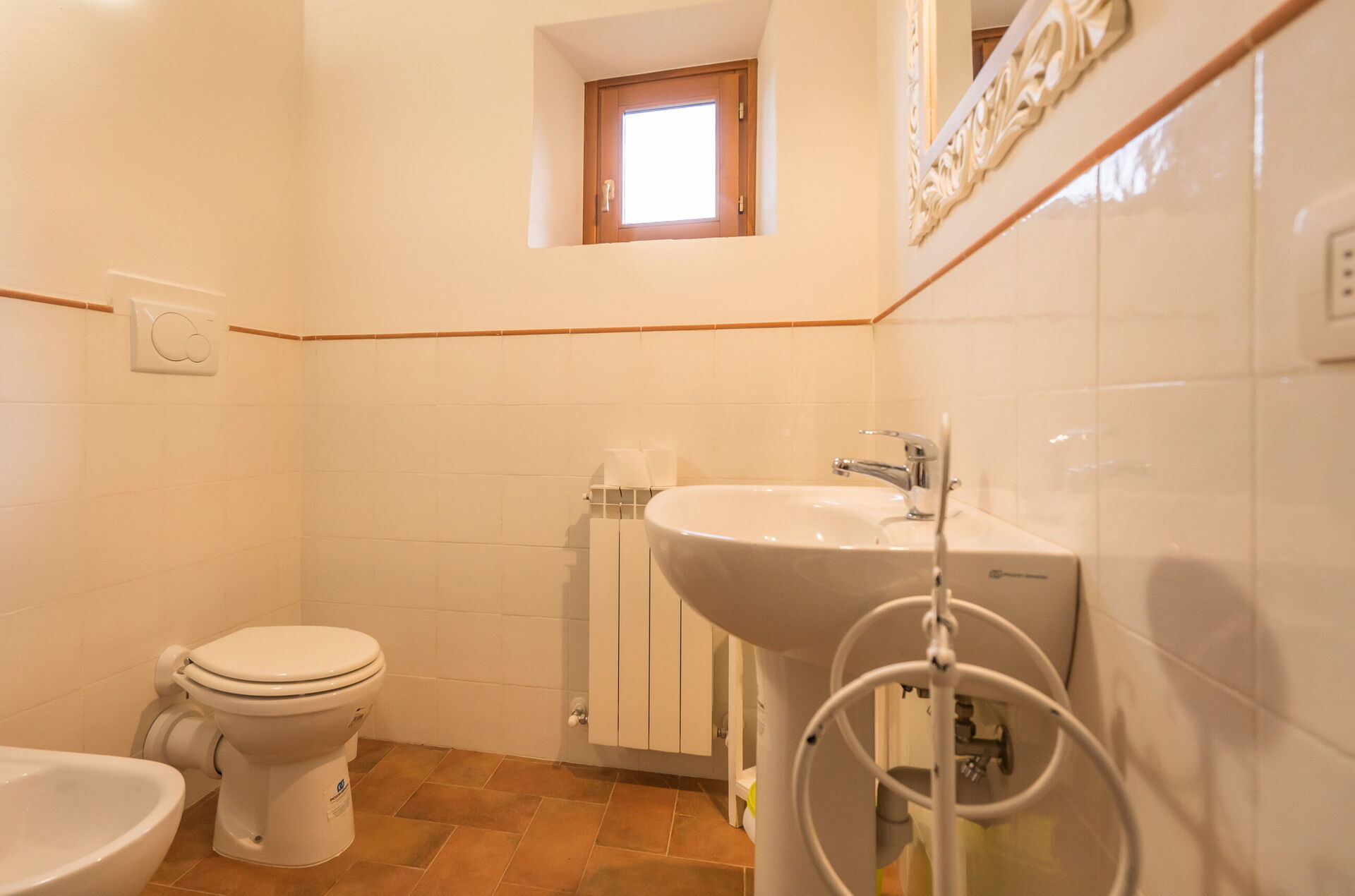 Bathroom 4: basin, toilet, bidet, shower, hairdryer.