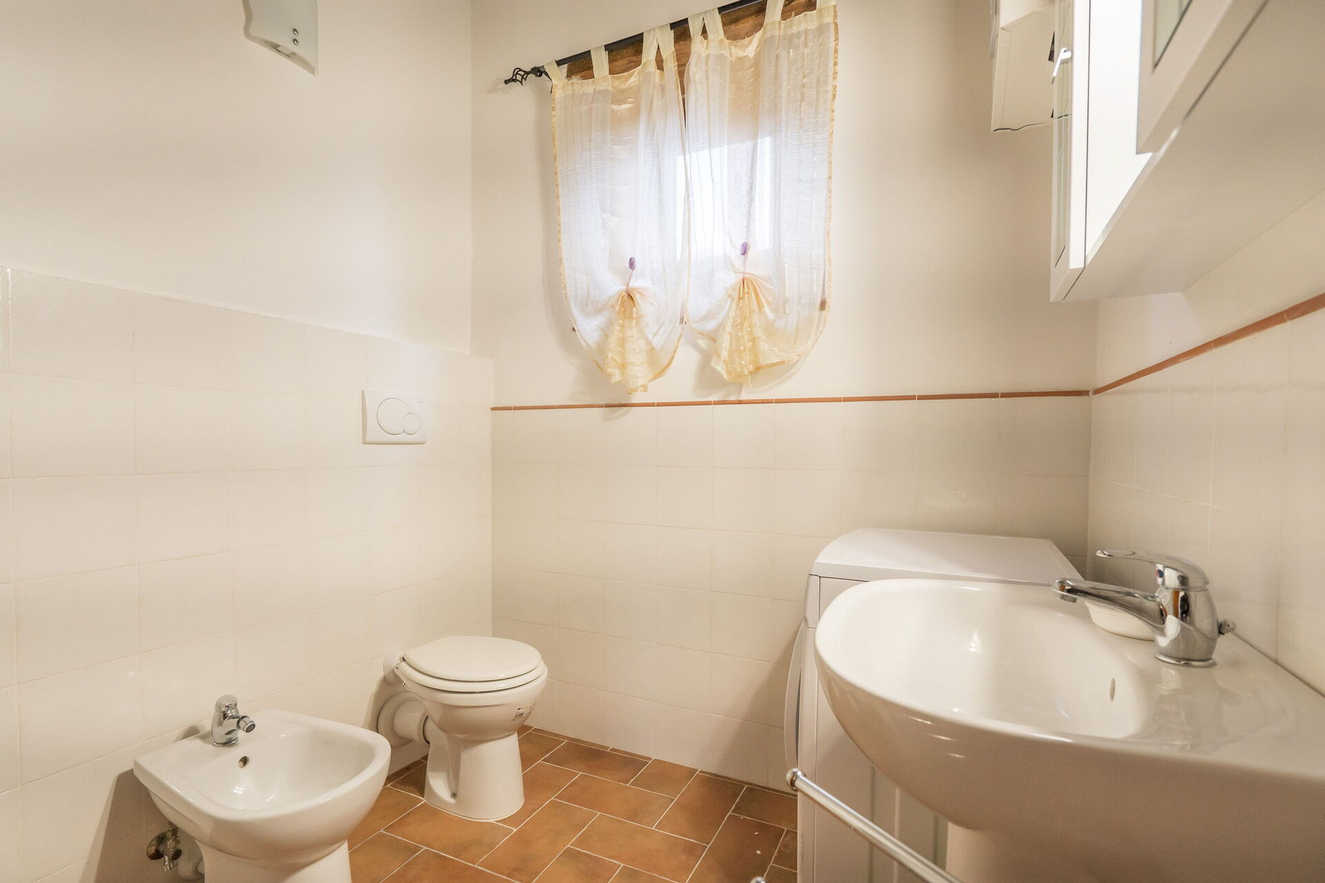 Bathroom: basin, toilet, bidet, shower, hairdryer, washing machine.