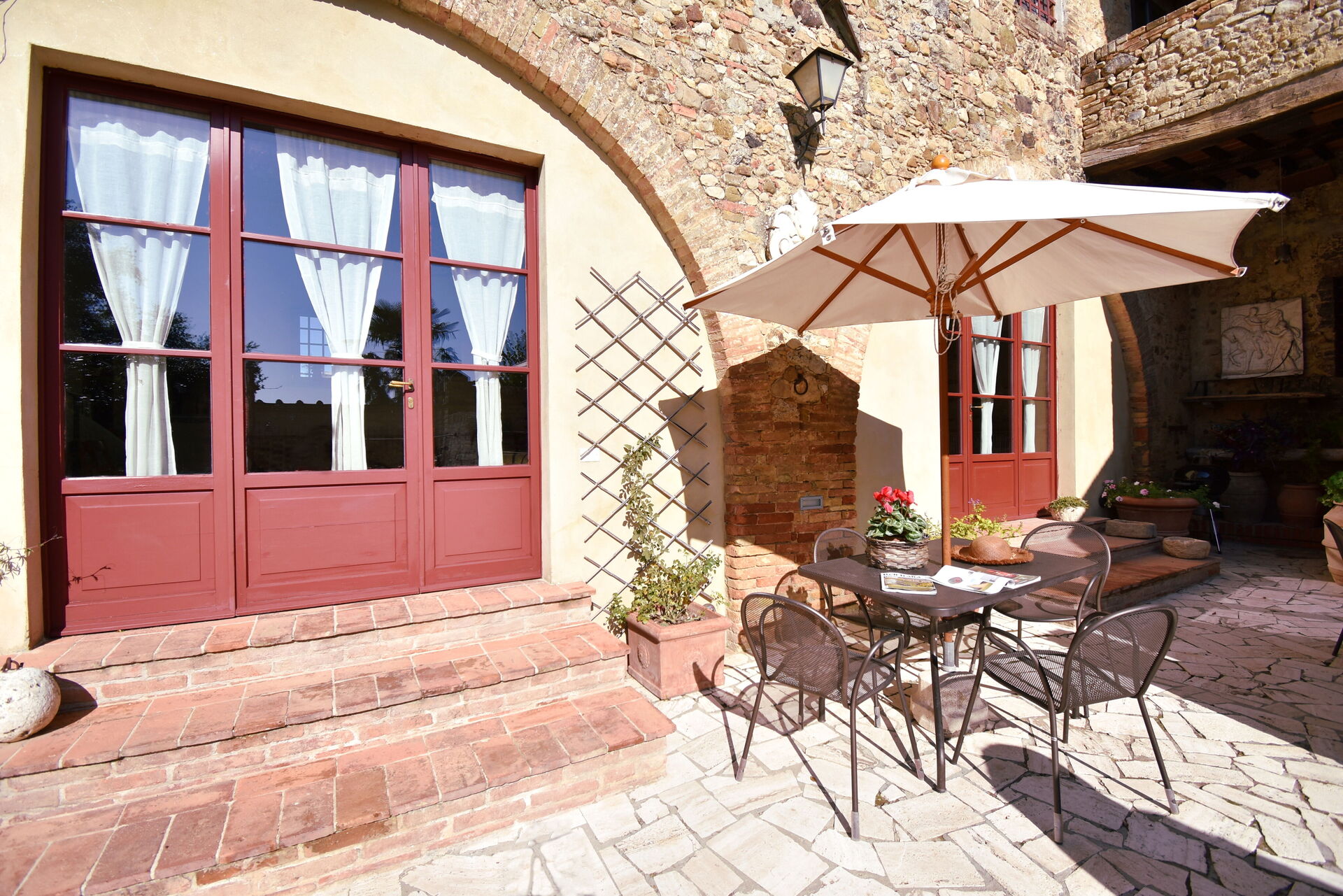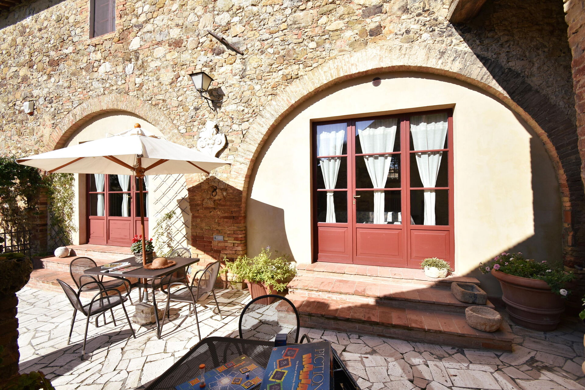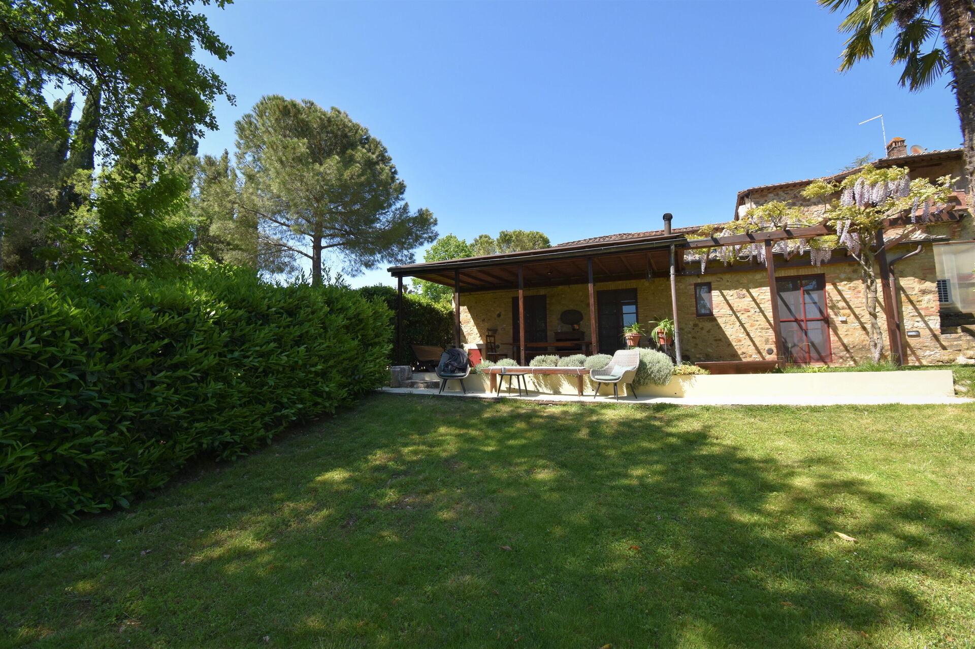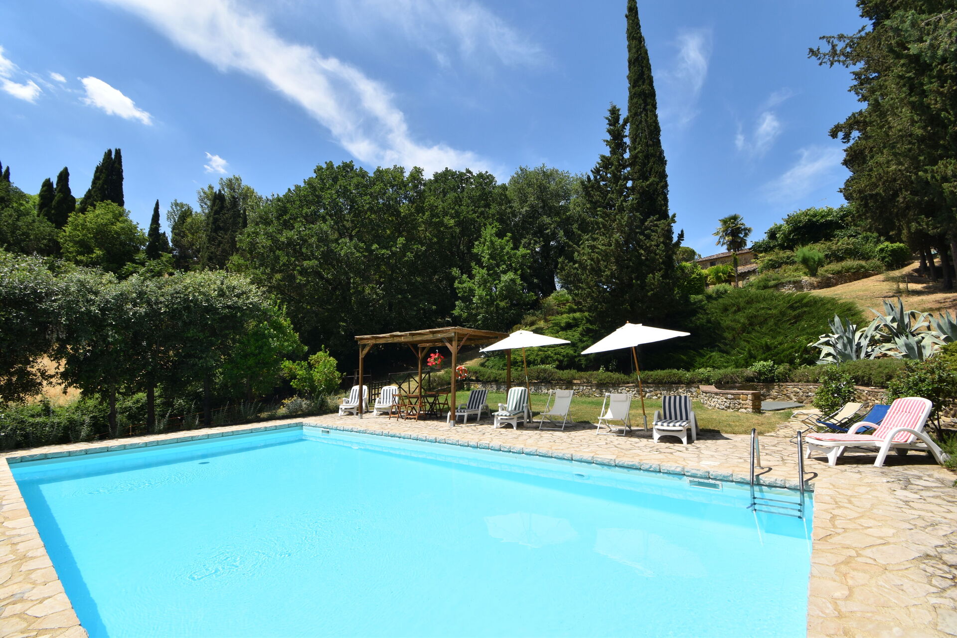 Conveniently located 8 km (5 mi) from Siena, Italy in the tourist area "Siena And Surroundings" and only 34 km (21 mi) from San Gimignano. Podere Le Muricce is a lovely stone building (300 sq m) with private pool, WiFi internet and air conditioning. The property can accommodate up to 12 guests comfortably in five bedrooms with four bathrooms.