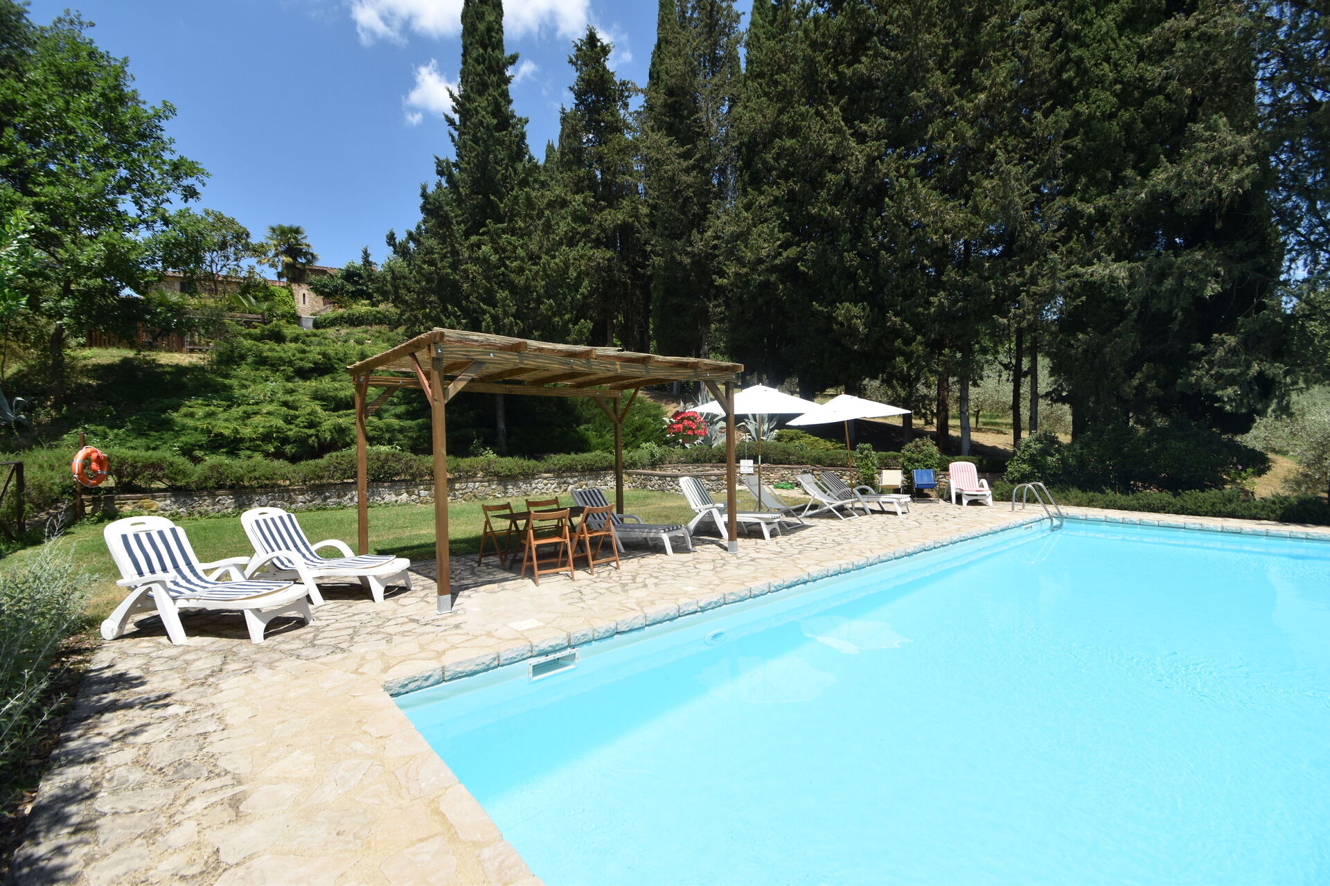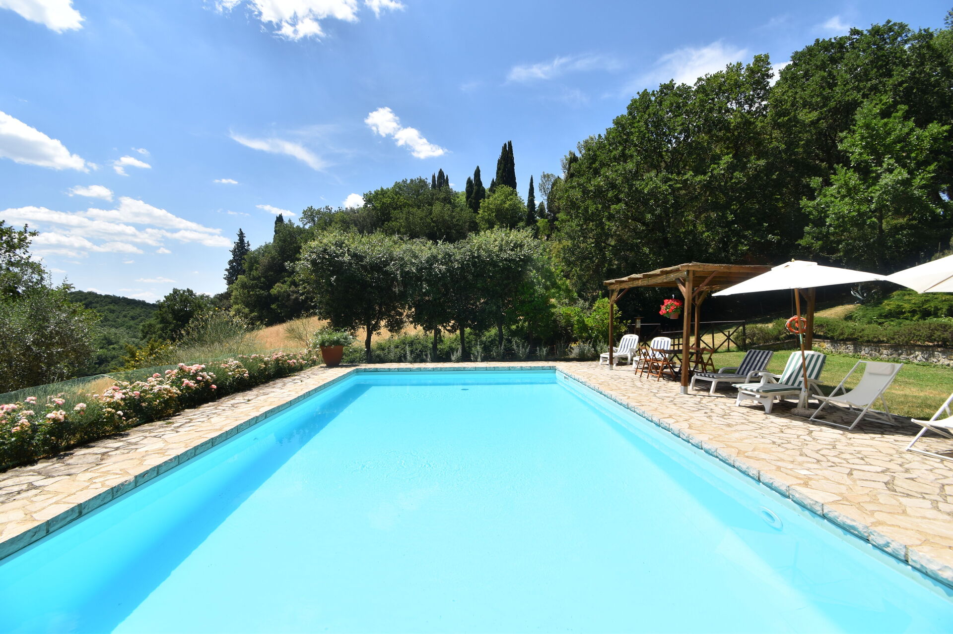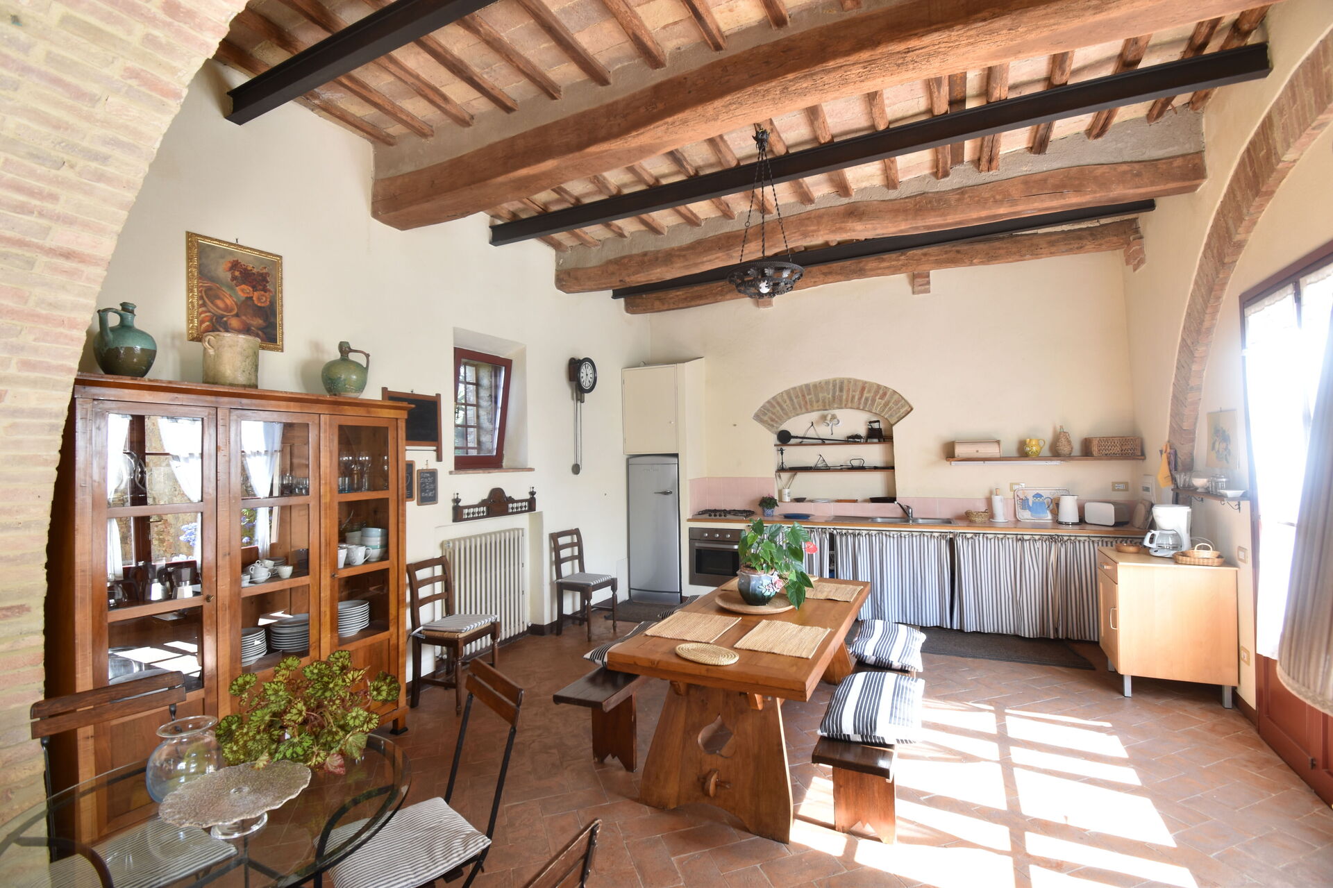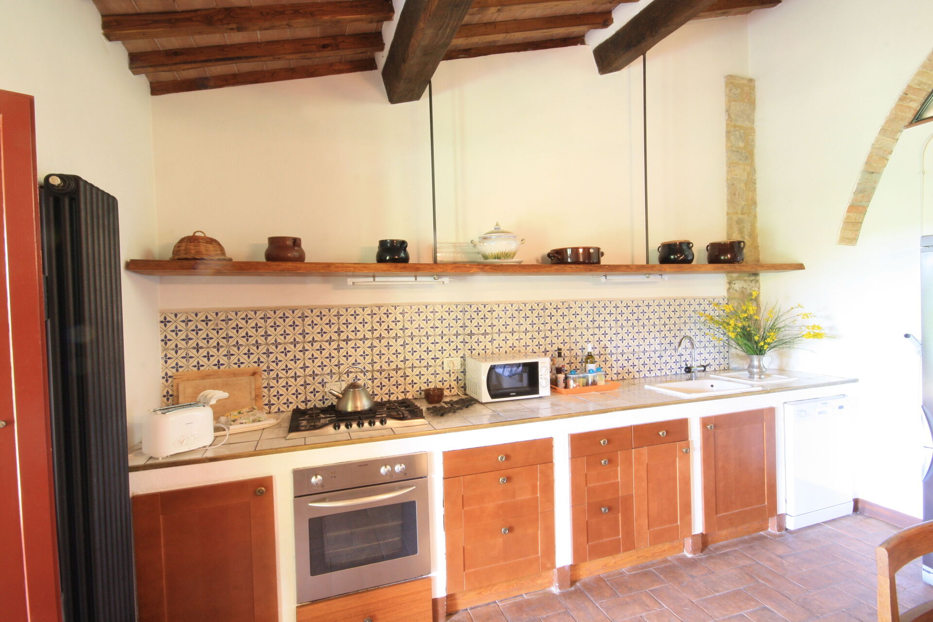 When you arrive you will be welcomed by the owner or manager where you’ll find a lovely clean well-maintained property ideal for a peaceful holiday in Tuscany. After a hectic day of sightseeing, spend some time with friends and family poolside enjoying a glass of wine - a perfect way to relax at the end the day. Outside you will also find a barbecue grill and patio. Sharing a meal with friends and family is a big part of the Tuscan culture. Take advantage of the kitchen to prepare meals using local produce while on your holiday. The kitchen includes coffee machine, toaster and refrigerator, as well as, plenty of tableware and cutlery for up to 12 people.
