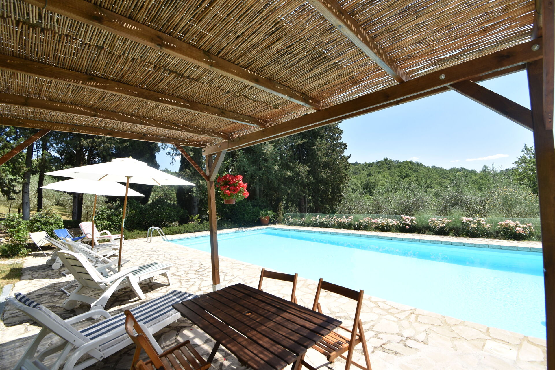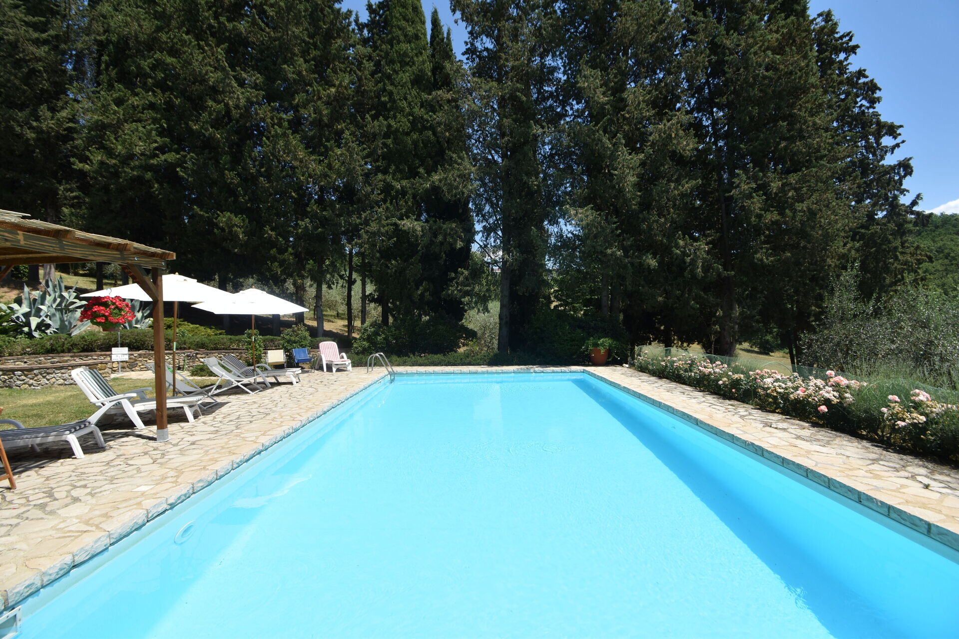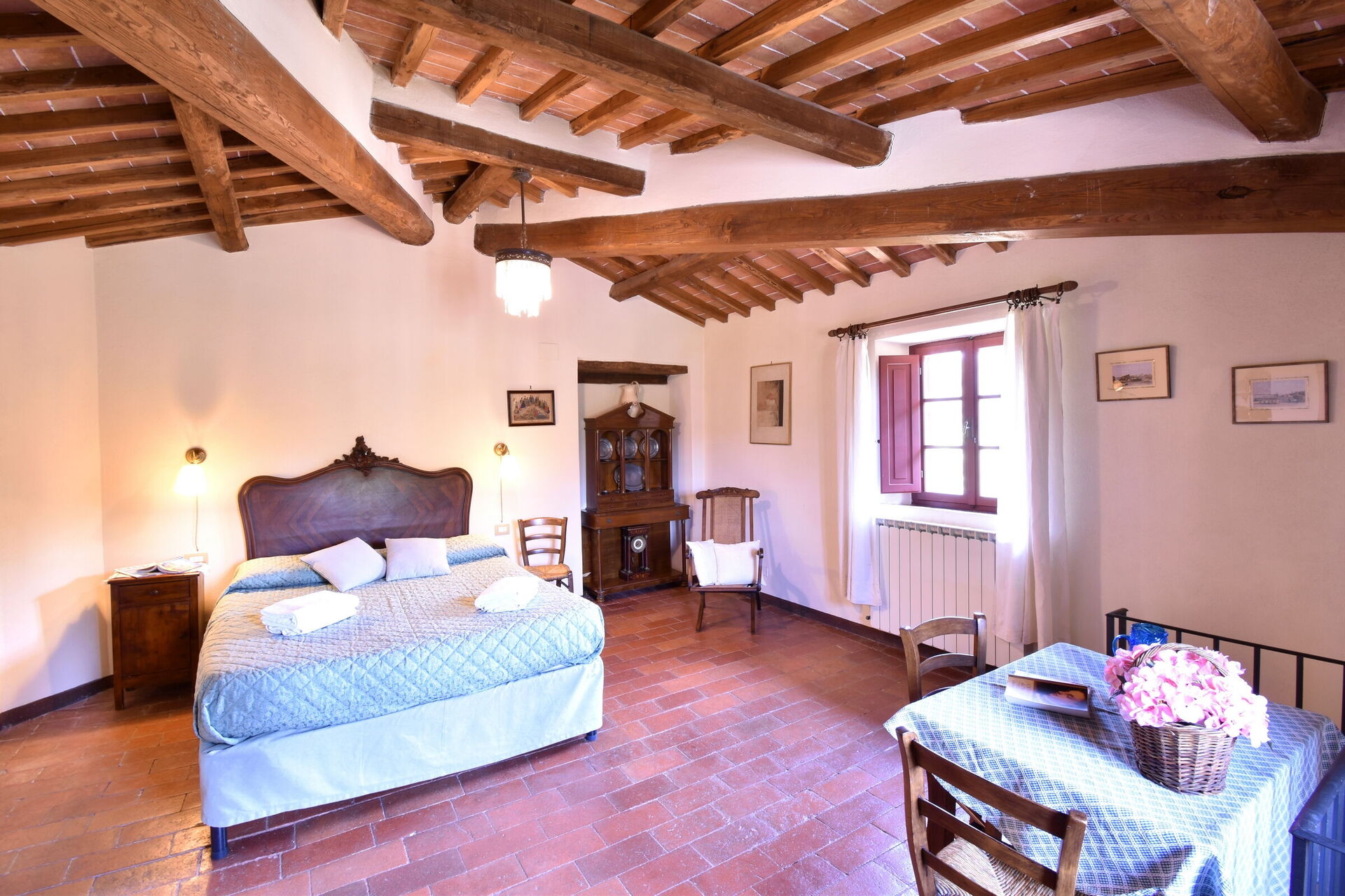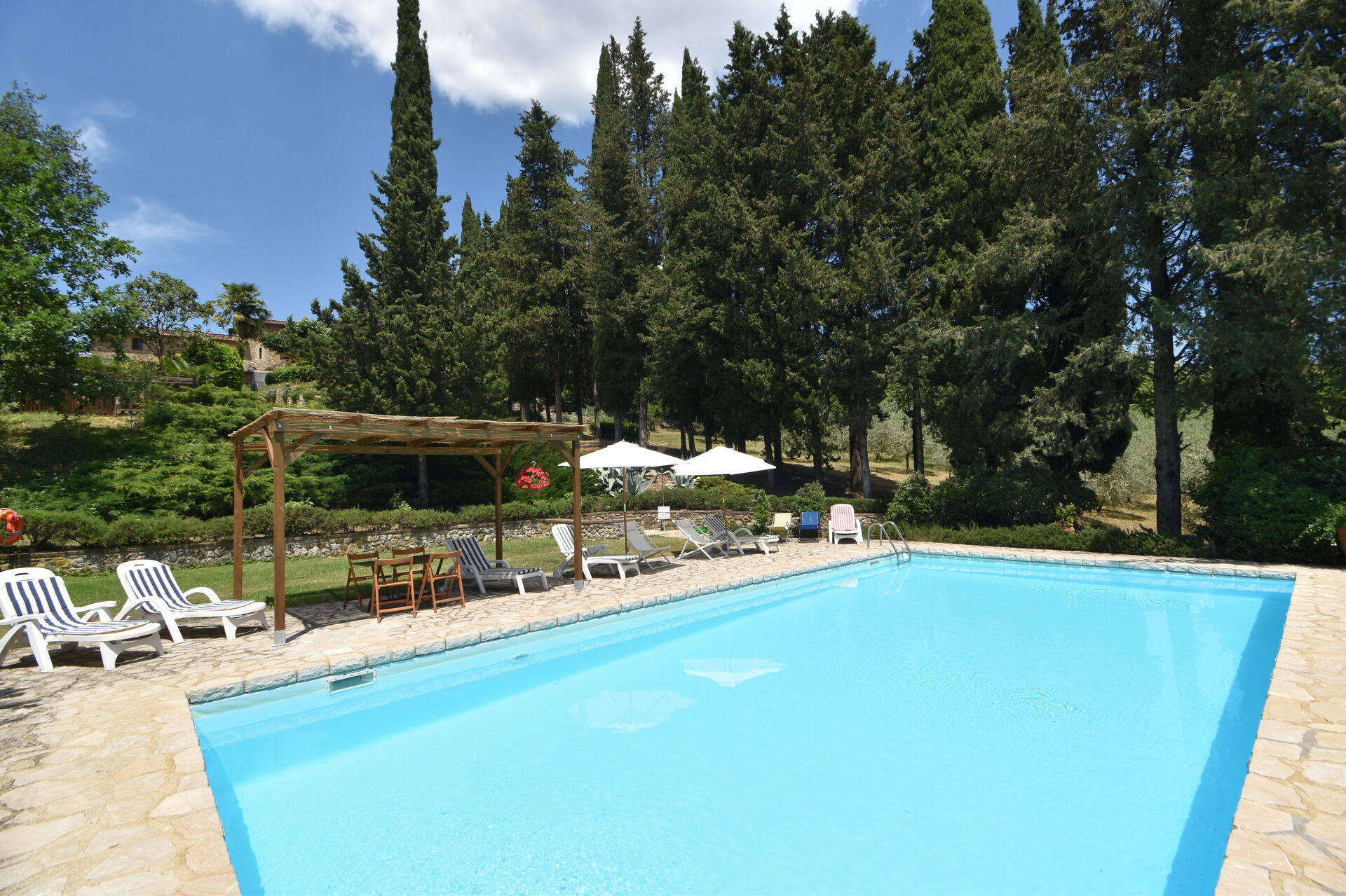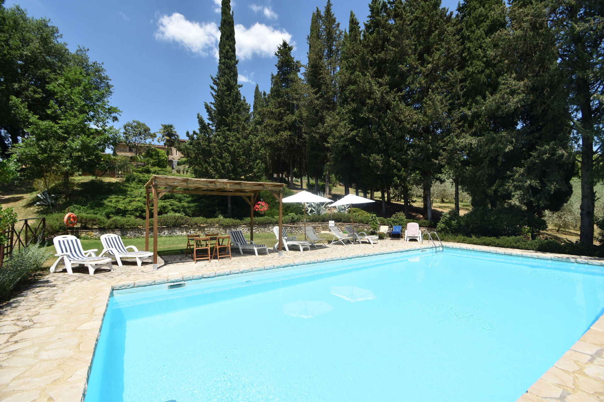 When you arrive you will be welcomed by the owner or manager where you’ll find a lovely clean well-maintained property ideal for a peaceful holiday in Tuscany. After a hectic day of sightseeing, spend some time with friends and family poolside enjoying a glass of wine - a perfect way to relax at the end the day. Outside you will also find a barbecue grill and patio. Sharing a meal with friends and family is a big part of the Tuscan culture. Take advantage of the kitchen to prepare meals using local produce while on your holiday. The kitchen includes coffee machine, toaster and refrigerator, as well as, plenty of tableware and cutlery for up to 12 people.