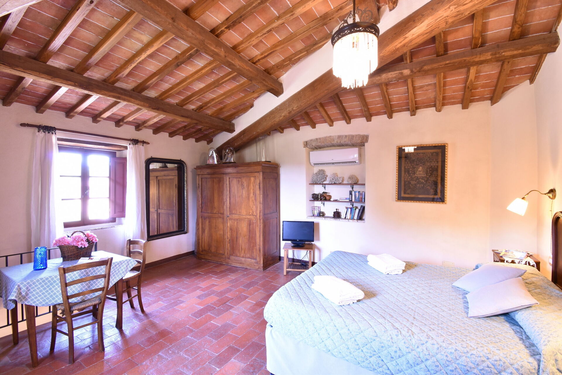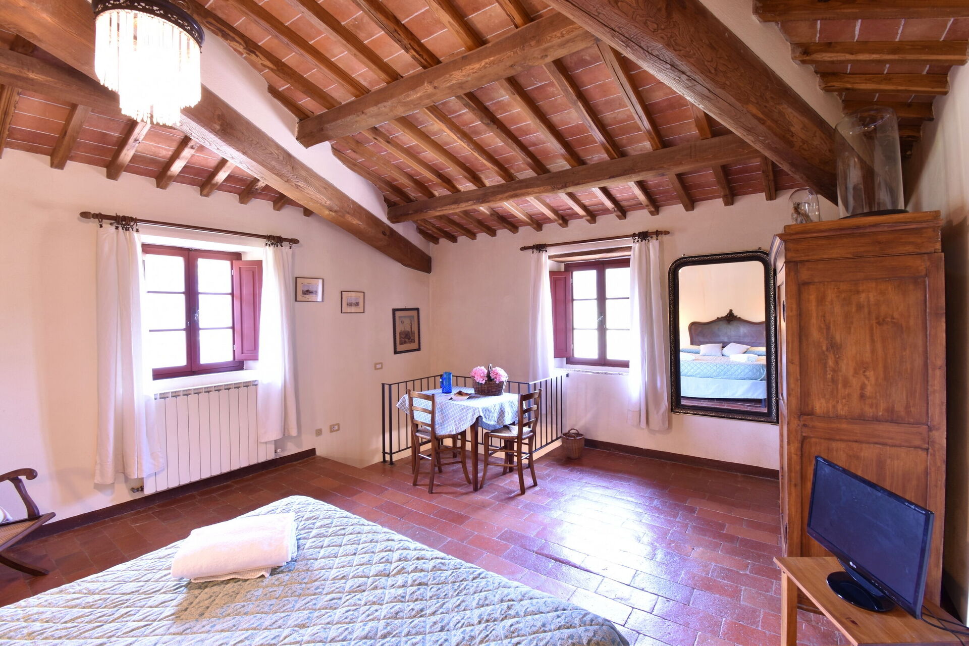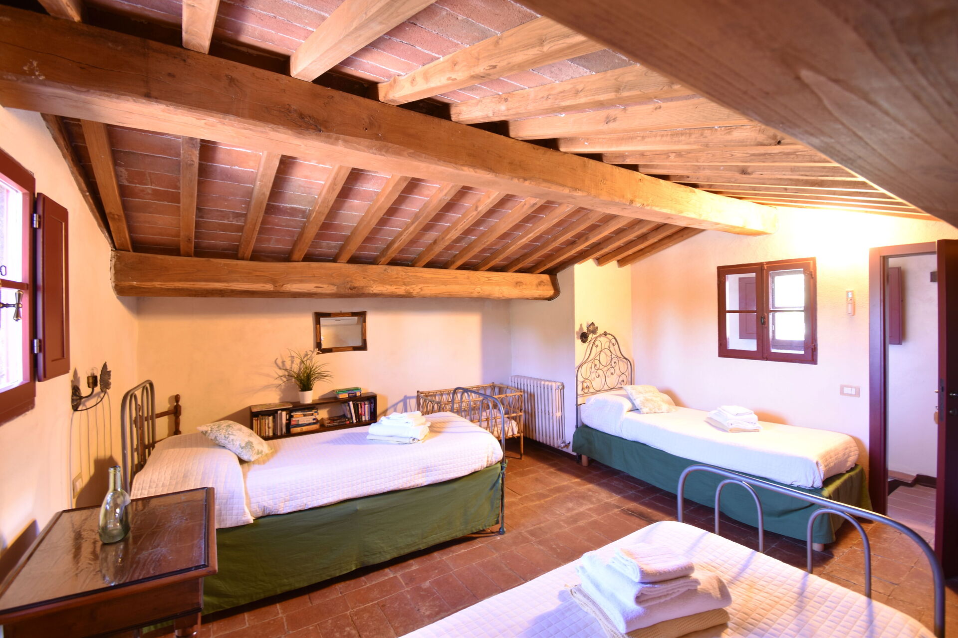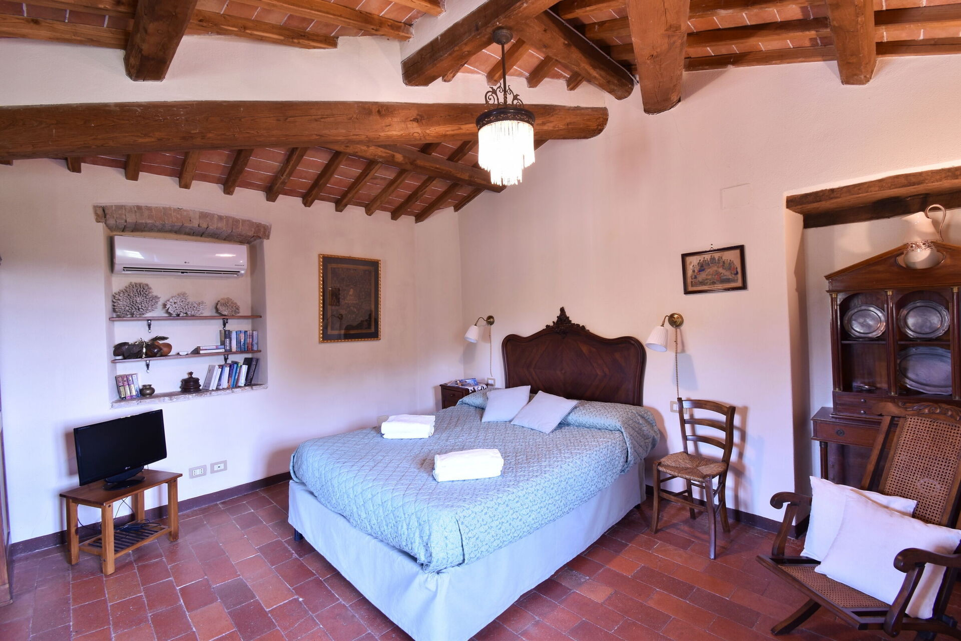 When you arrive you will be welcomed by the owner or manager where you’ll find a lovely clean well-maintained property ideal for a peaceful holiday in Tuscany. After a hectic day of sightseeing, spend some time with friends and family poolside enjoying a glass of wine - a perfect way to relax at the end the day. Outside you will also find a barbecue grill and patio. Sharing a meal with friends and family is a big part of the Tuscan culture. Take advantage of the kitchen to prepare meals using local produce while on your holiday. The kitchen includes coffee machine, toaster and refrigerator, as well as, plenty of tableware and cutlery for up to 12 people.