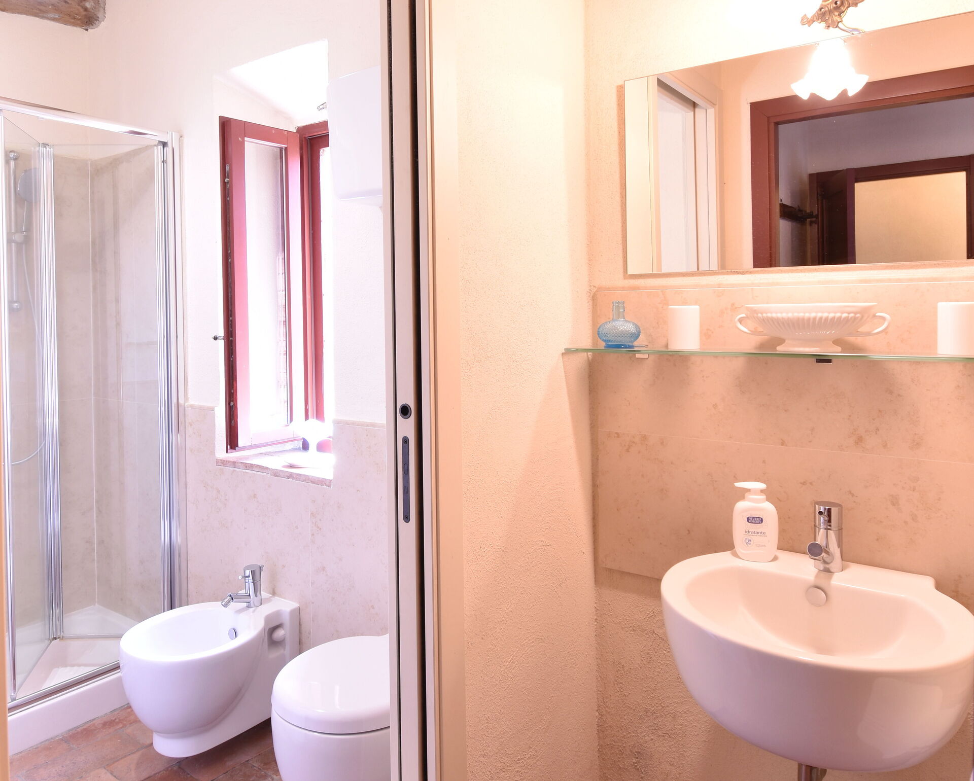 Bathroom 2: basin, toilet, bidet, shower, hairdryer, mosquito net.