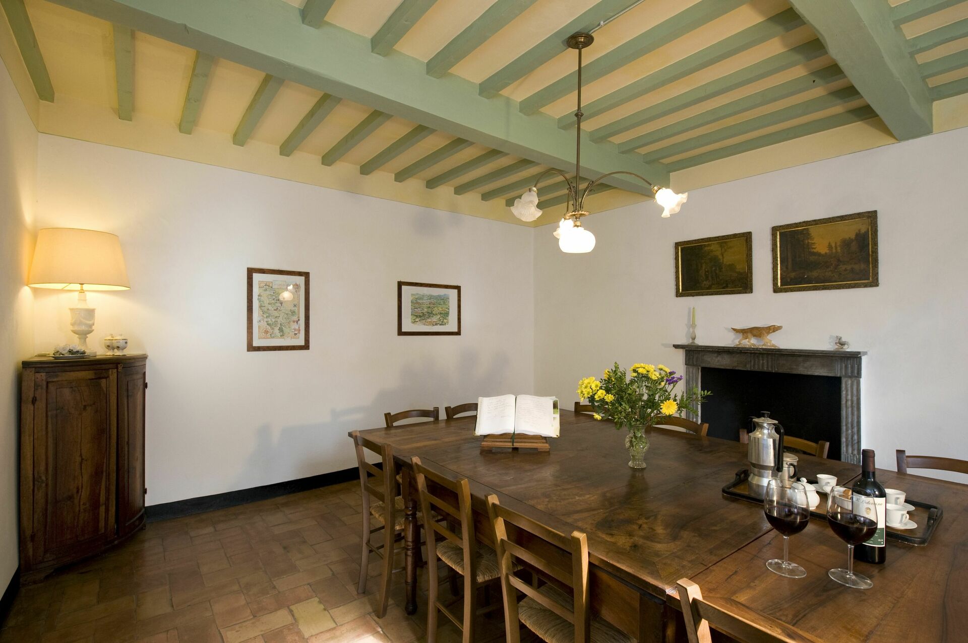 Dining room: dining table (people: 20), WIFI internet, fireplace.